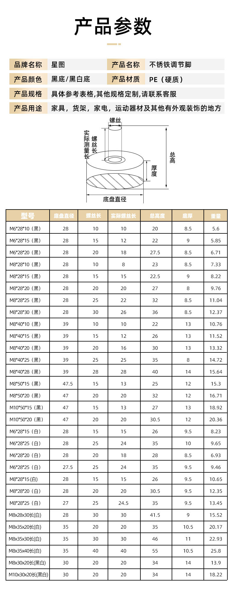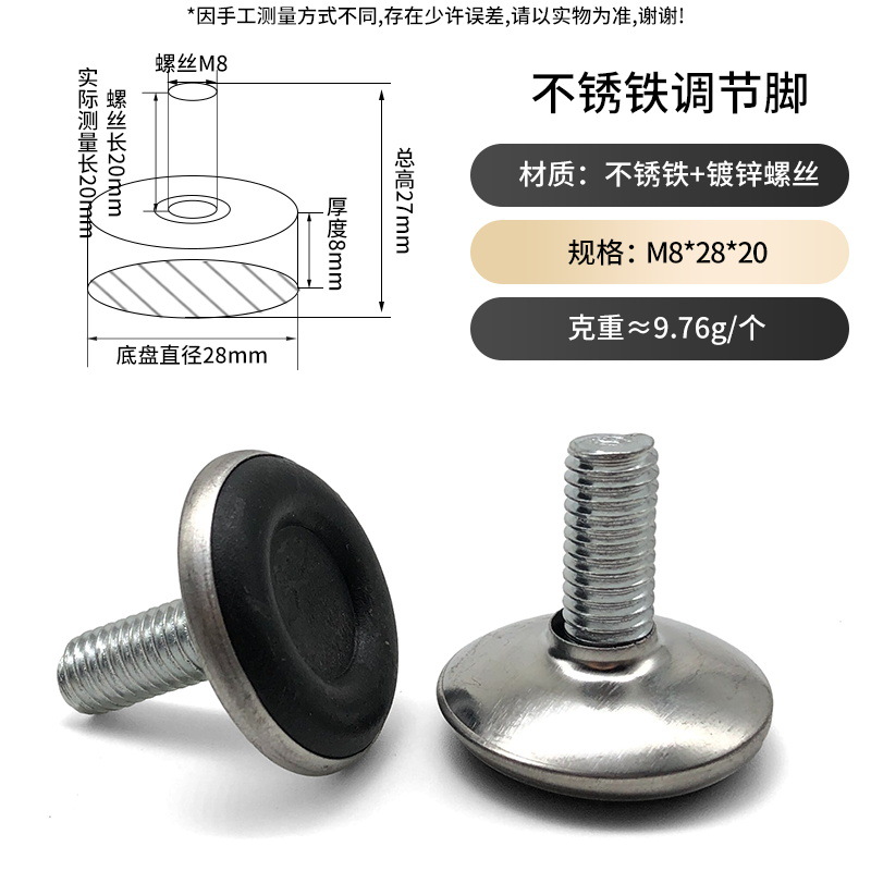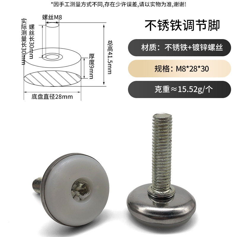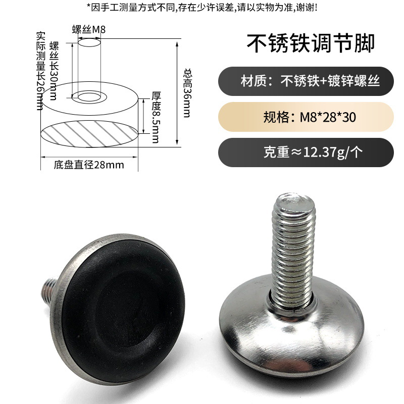 不锈铁螺丝调节家具桌椅垫高升降防滑增高固定地脚支撑柜脚不锈钢