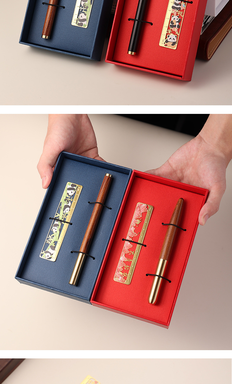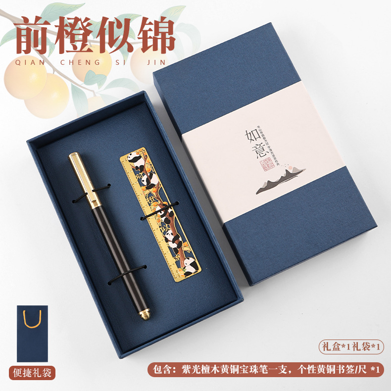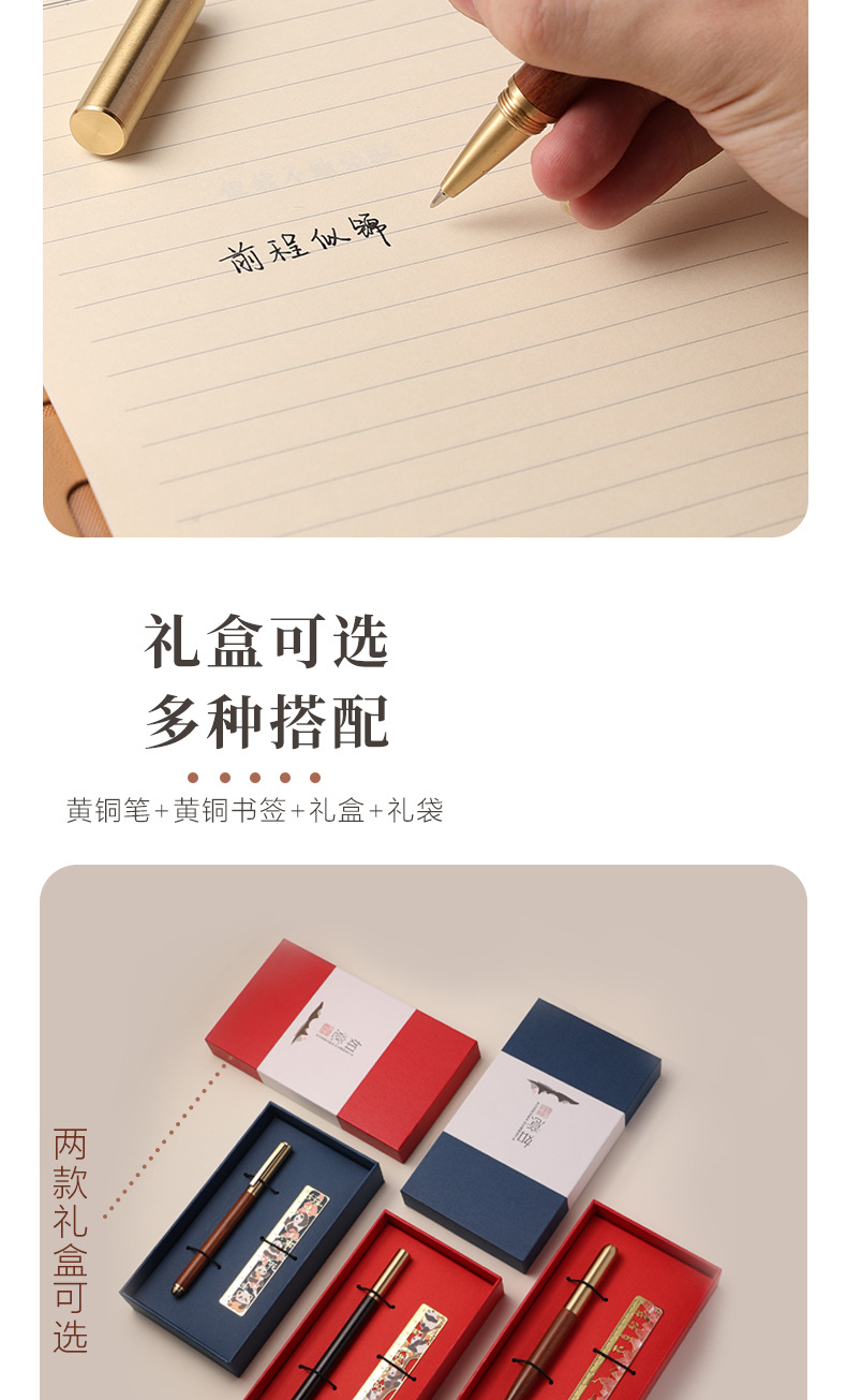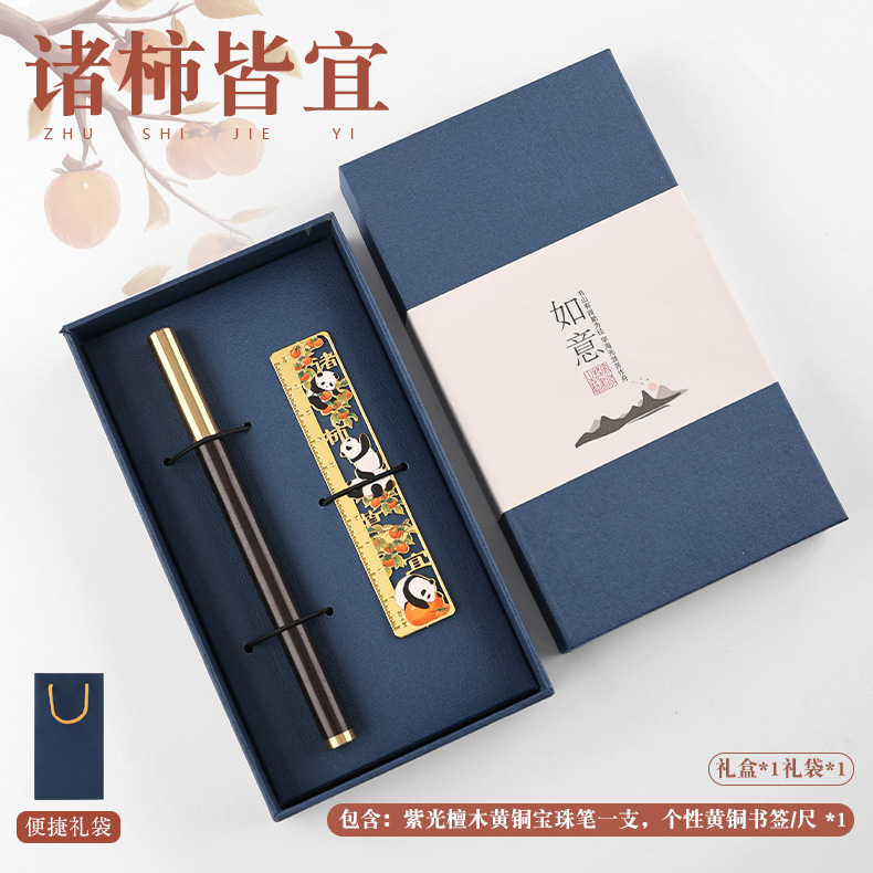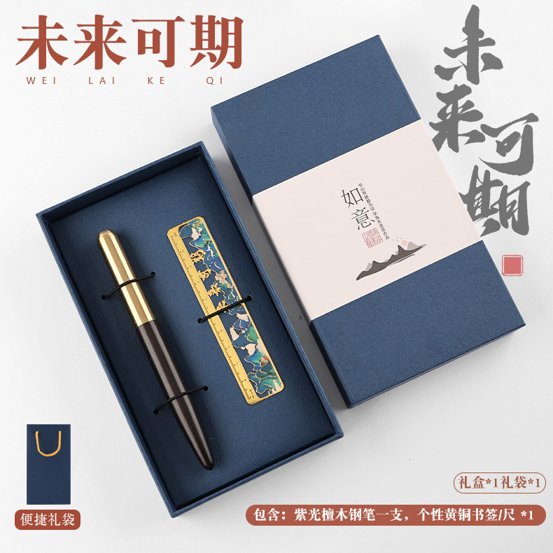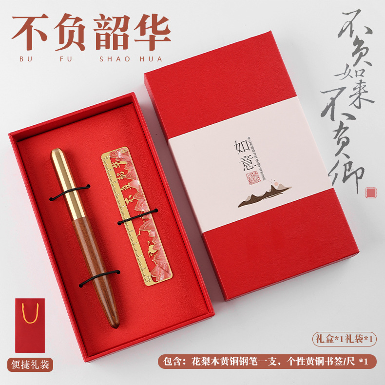 黄铜书签檀木签字笔礼盒套装古风送友人学生老师高档书签礼盒定制