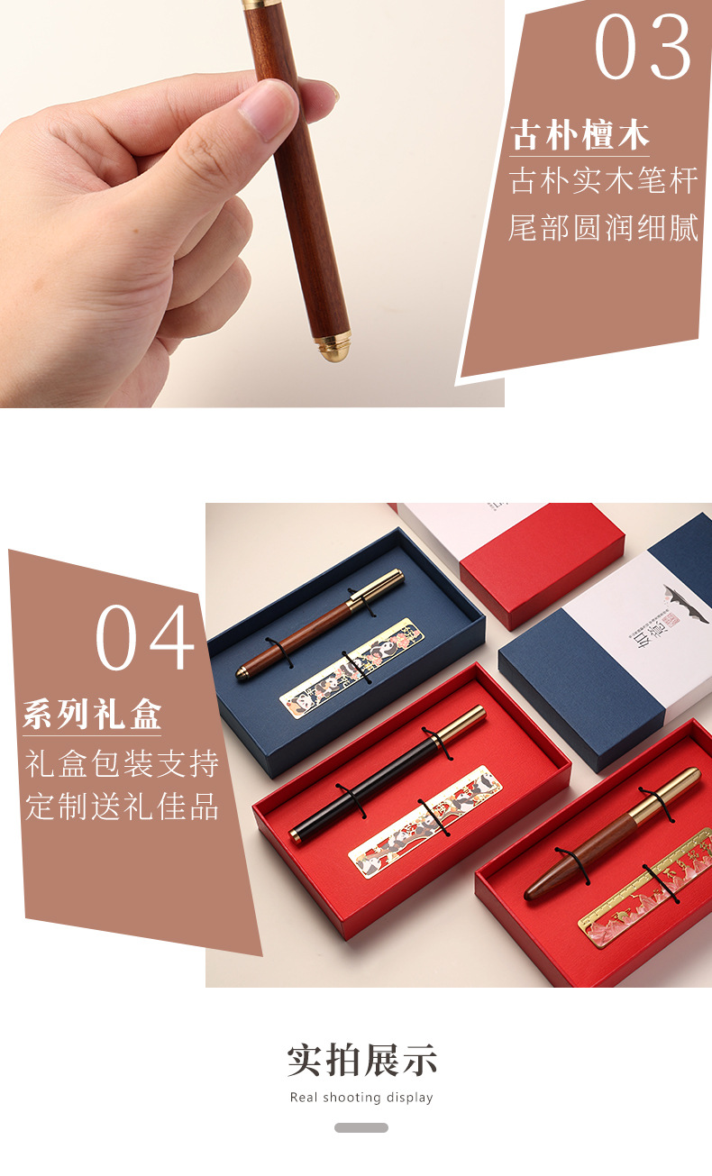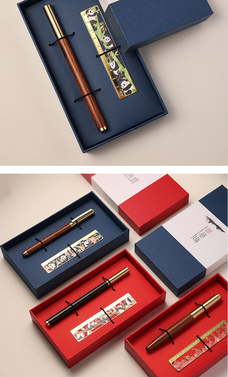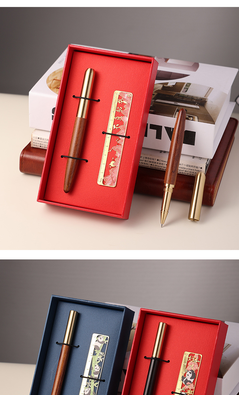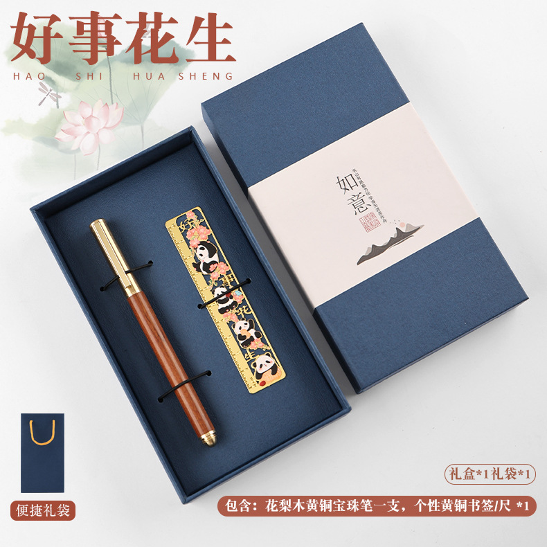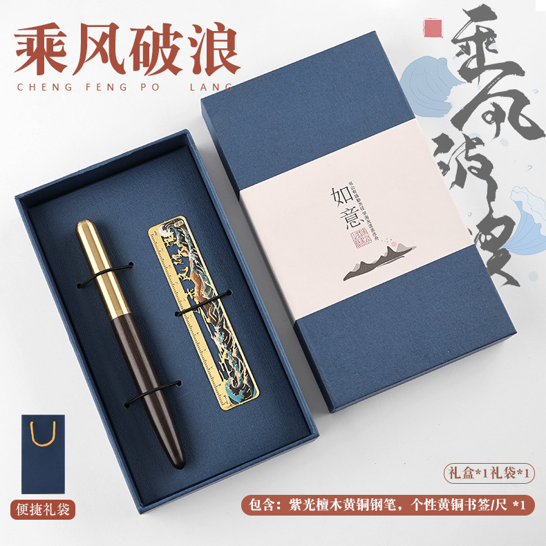 黄铜书签檀木签字笔礼盒套装古风送友人学生老师高档书签礼盒定制