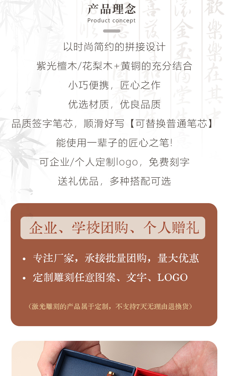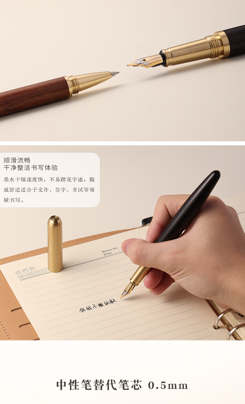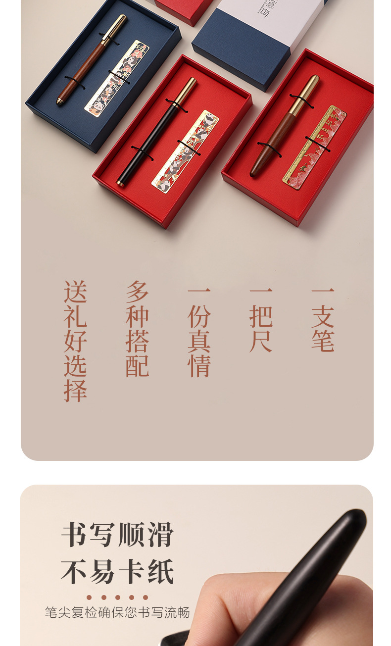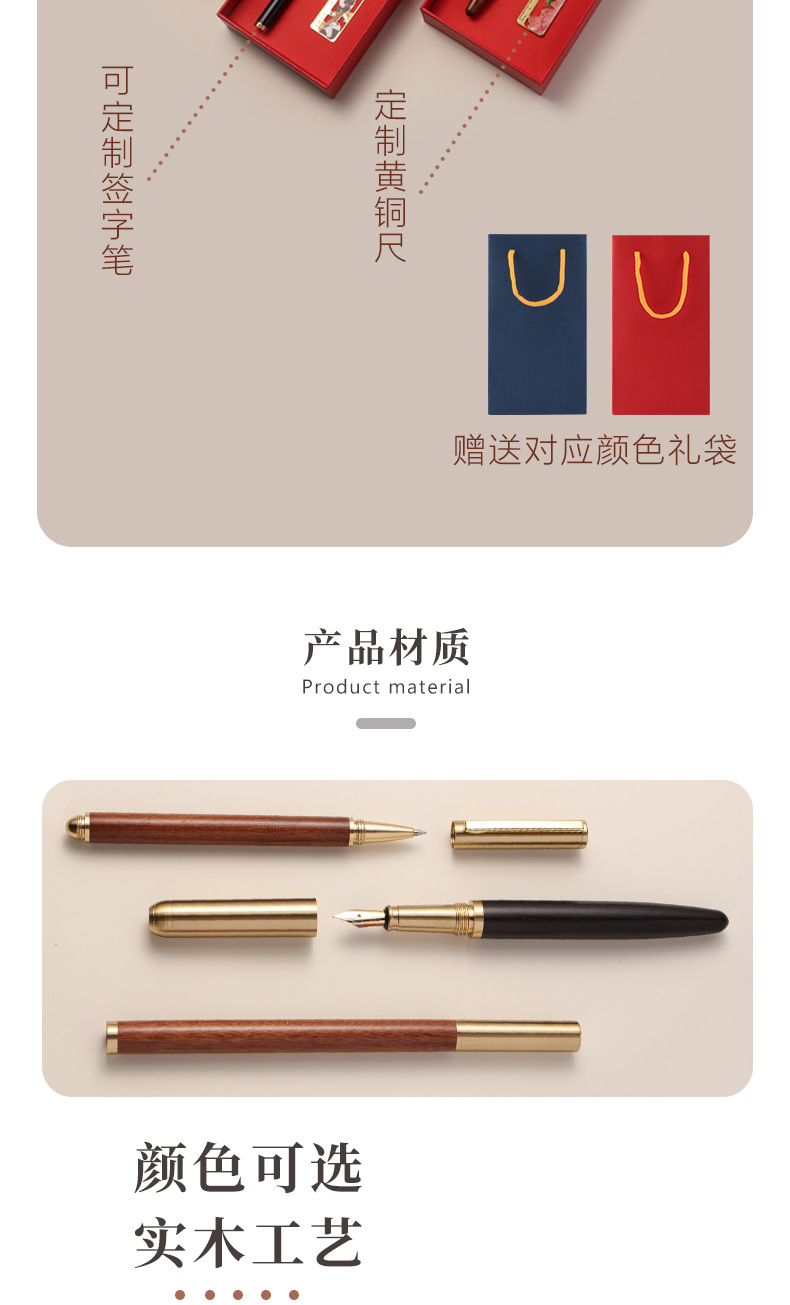 黄铜书签檀木签字笔礼盒套装古风送友人学生老师高档书签礼盒定制