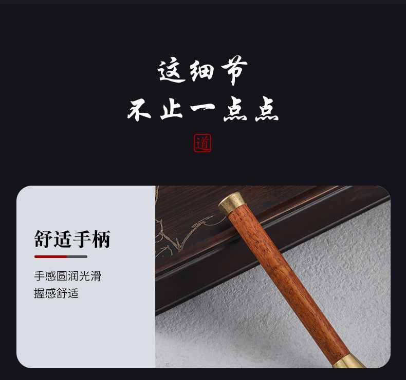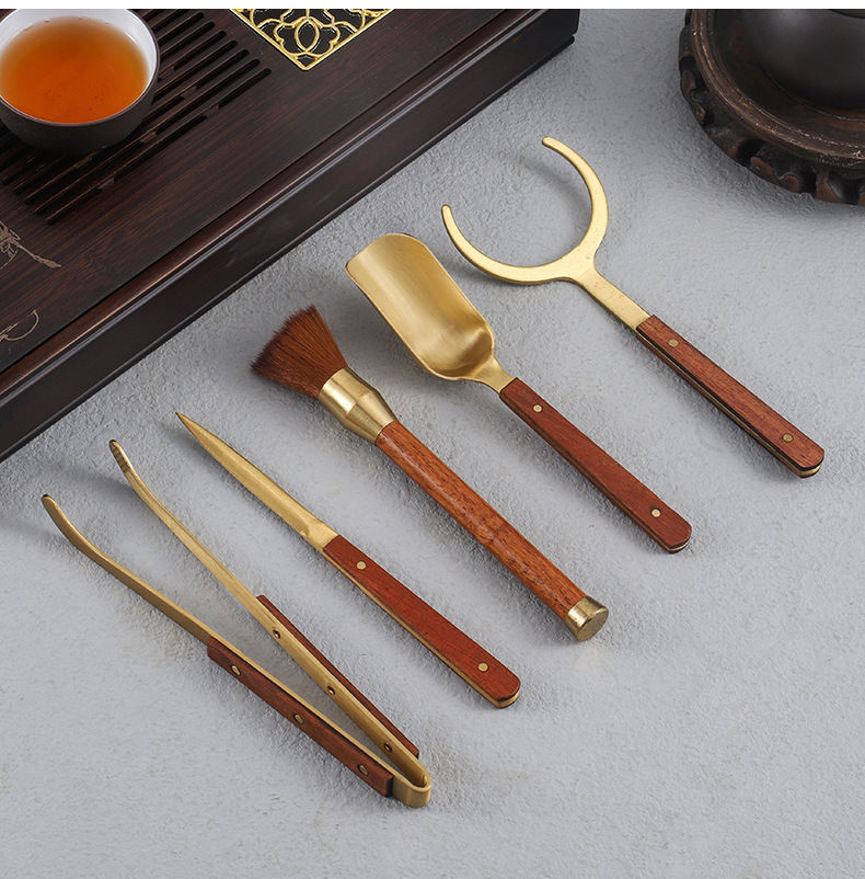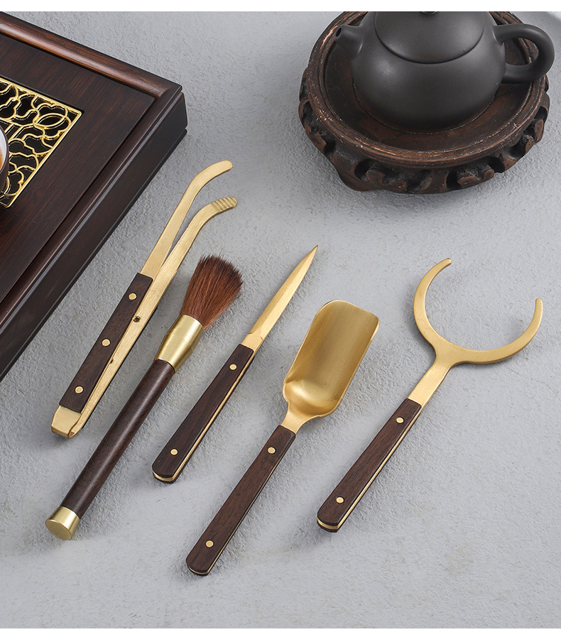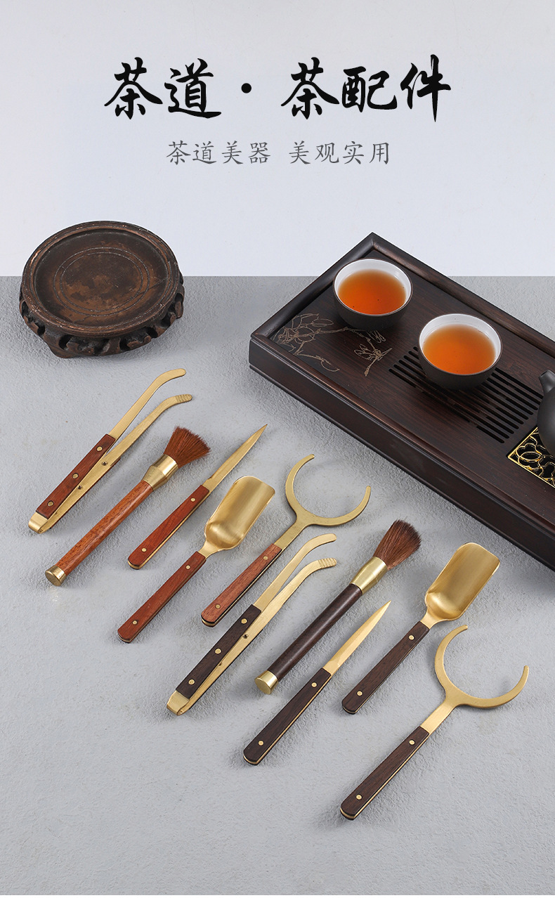 茶道六君子套装黑檀实木花梨茶杯叉茶叶勺茶夹养壶笔配件茶具大全
