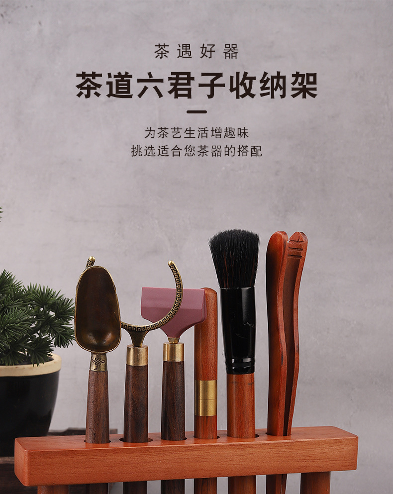 创意茶道六君子收纳架实木配件家用茶具杯架功夫茶具配件工具套装