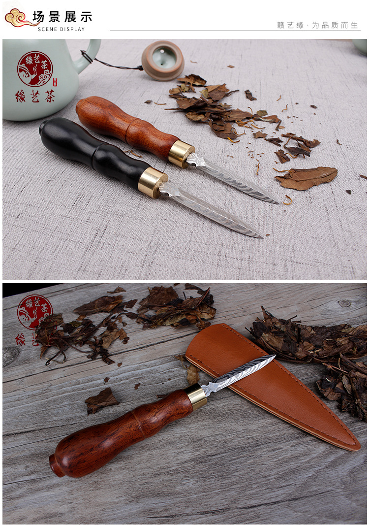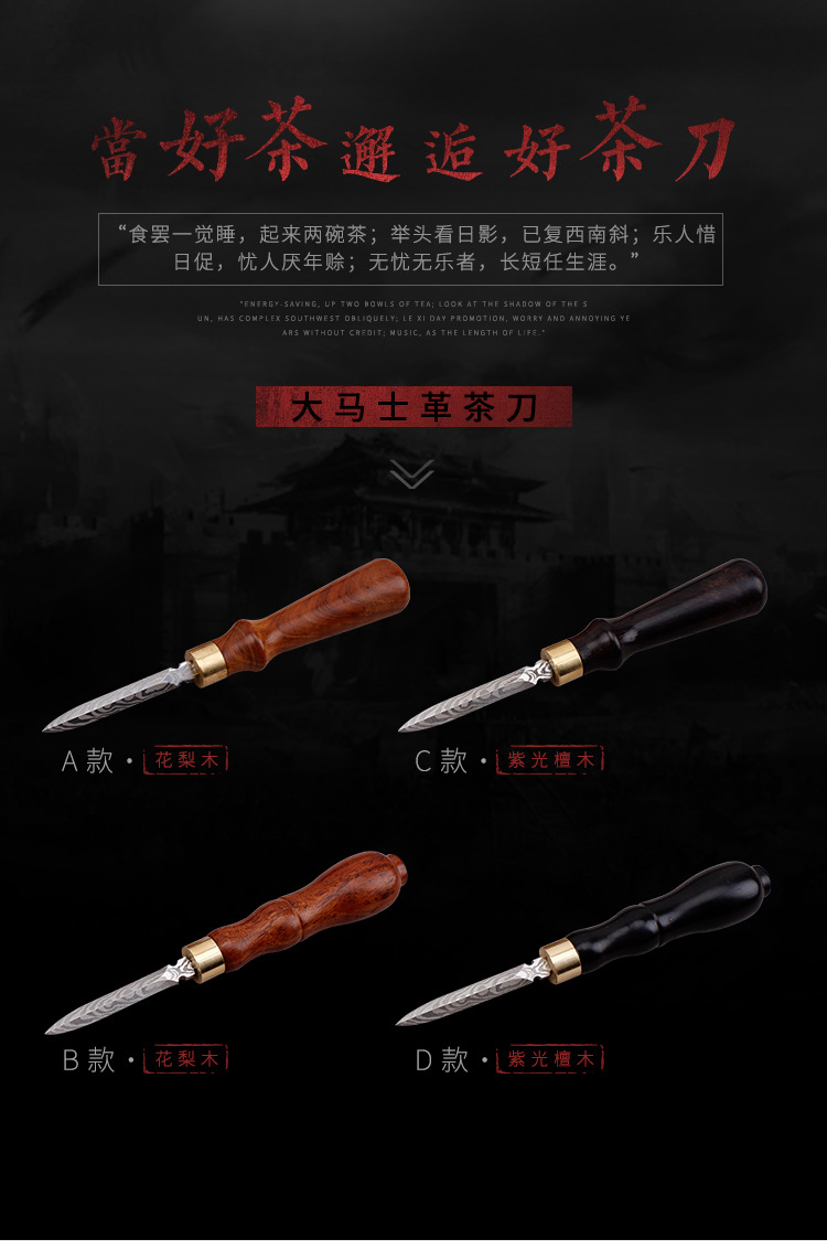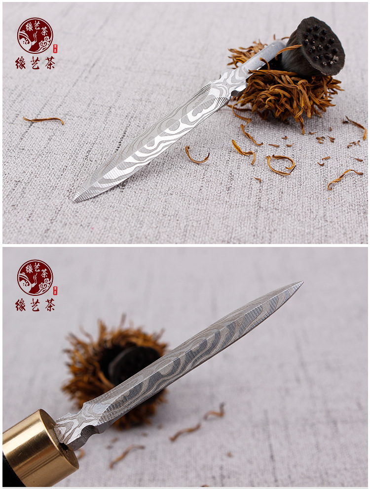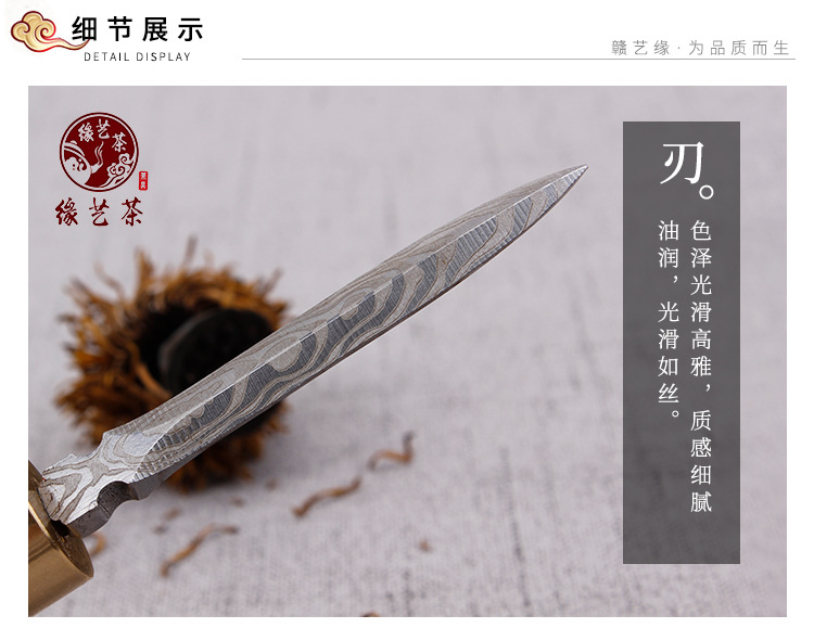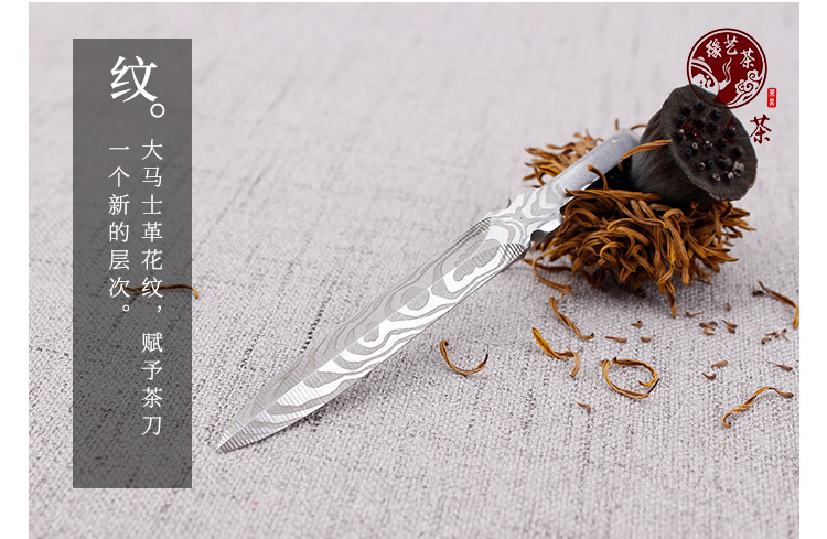 赣艺缘茶具 大马士革茶刀花纹钢茶刀雕刻茶刀普洱茶刀 厂家直供