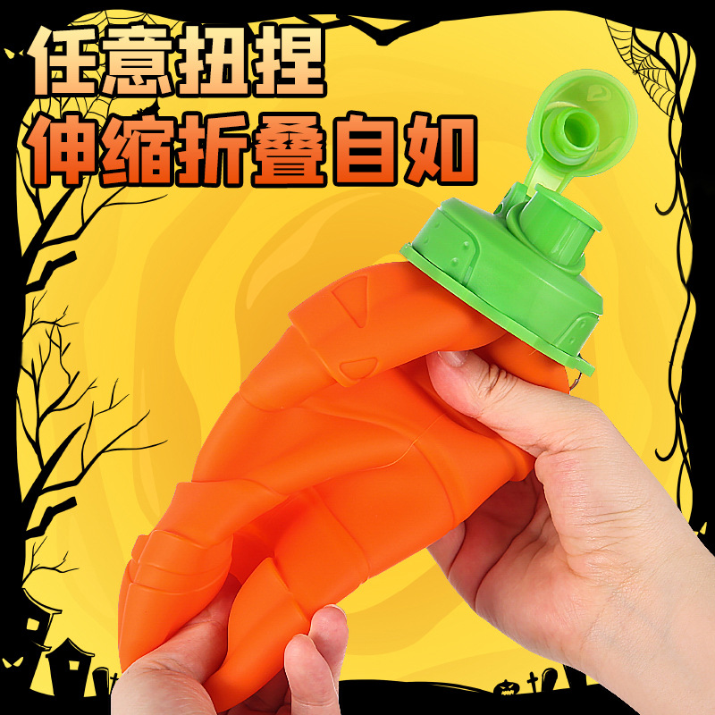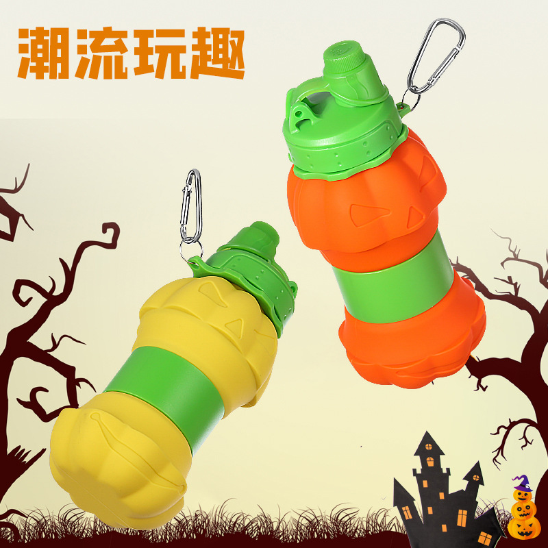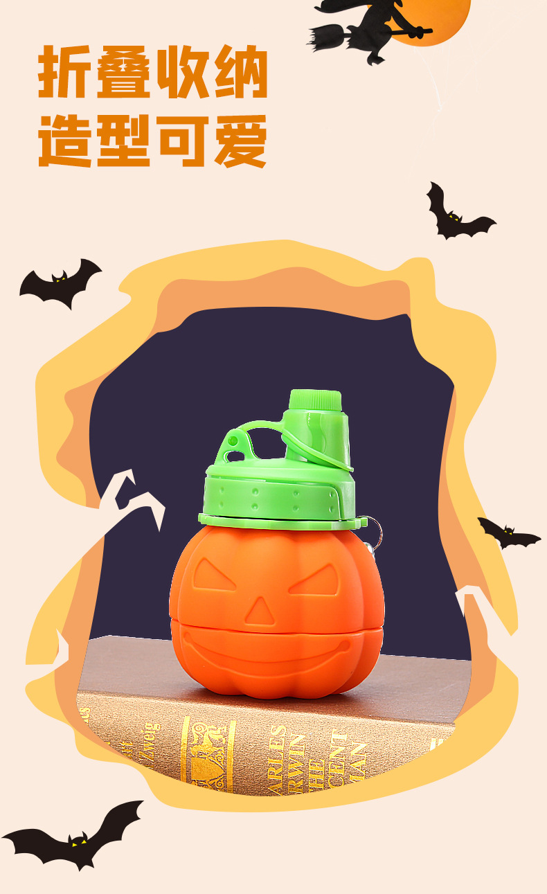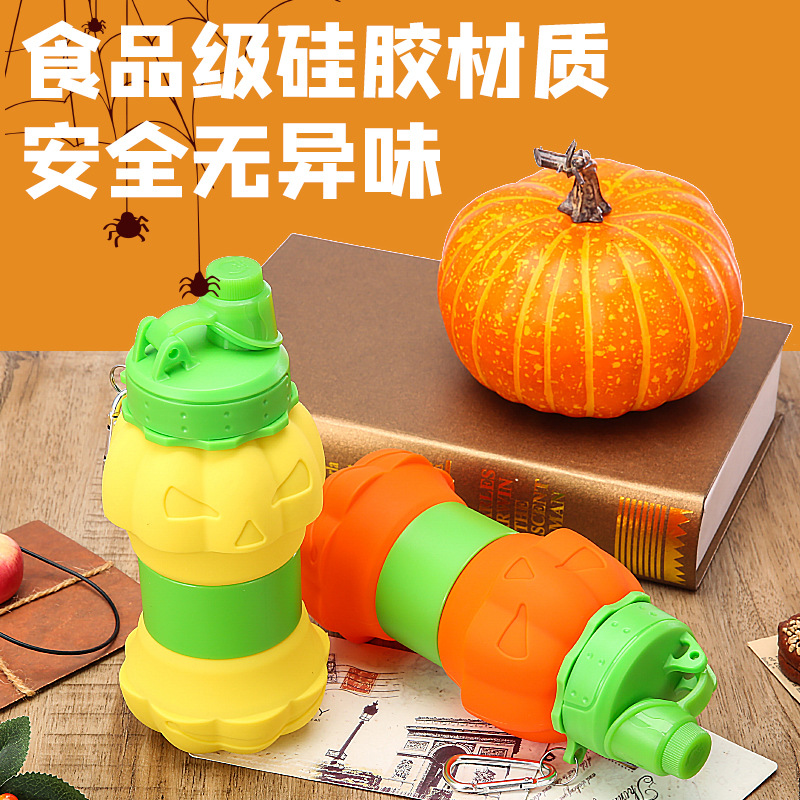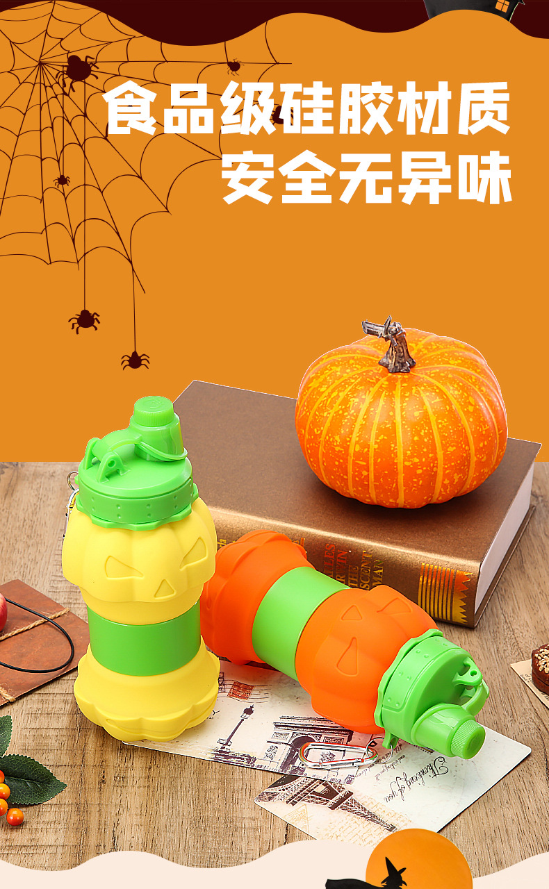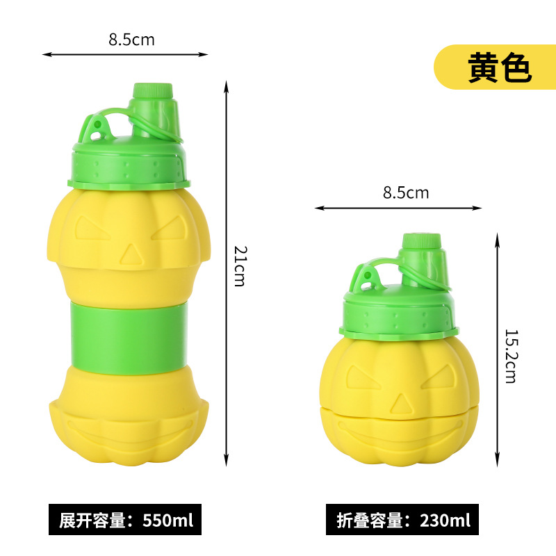 新品硅胶折叠杯550ml可爱南瓜造型儿童水杯户外跑步运动软水壶