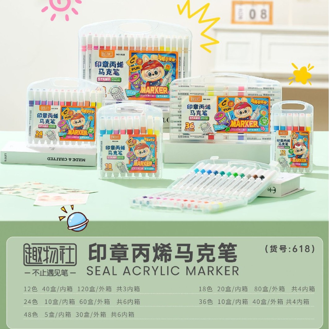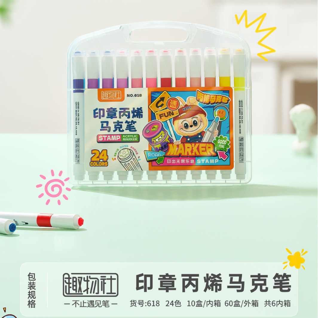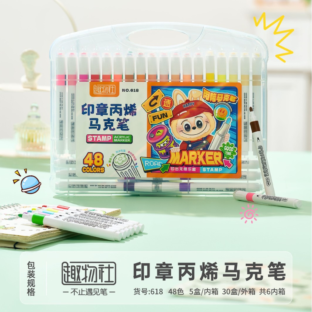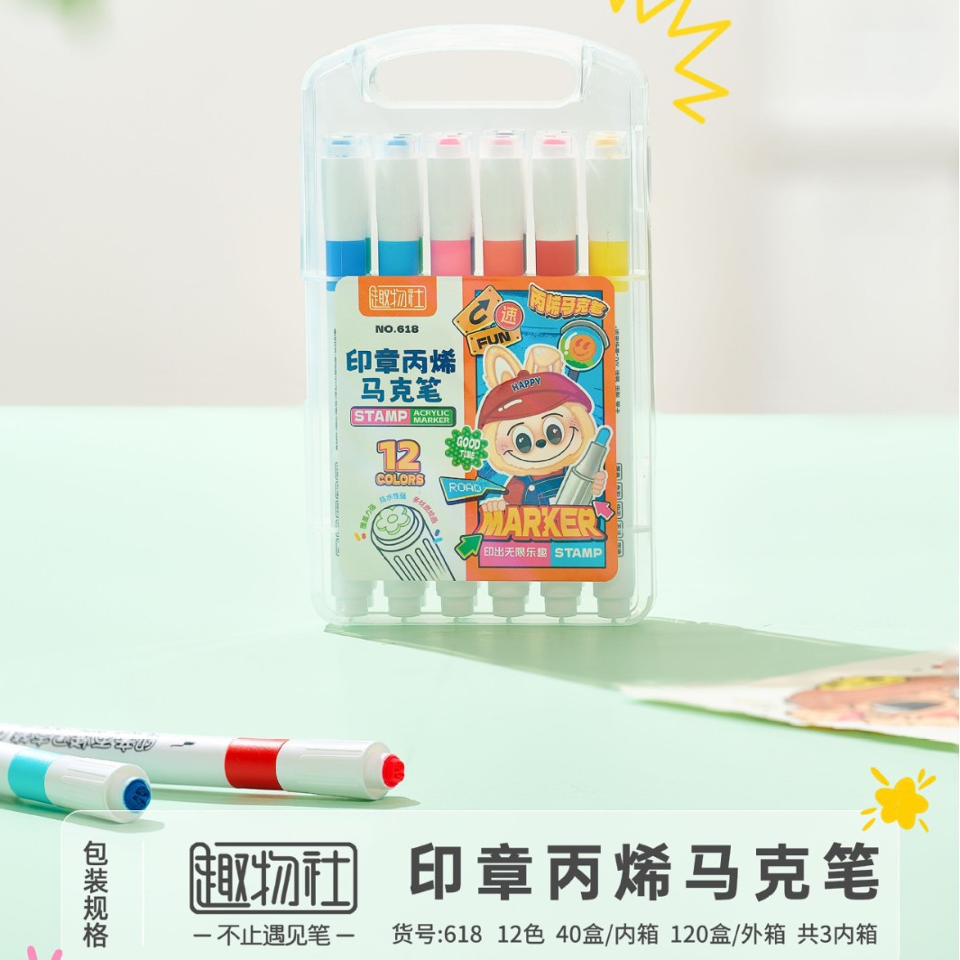 创意印章丙烯马克笔儿童学生专用彩色涂鸦绘画不透纸的马克笔批发