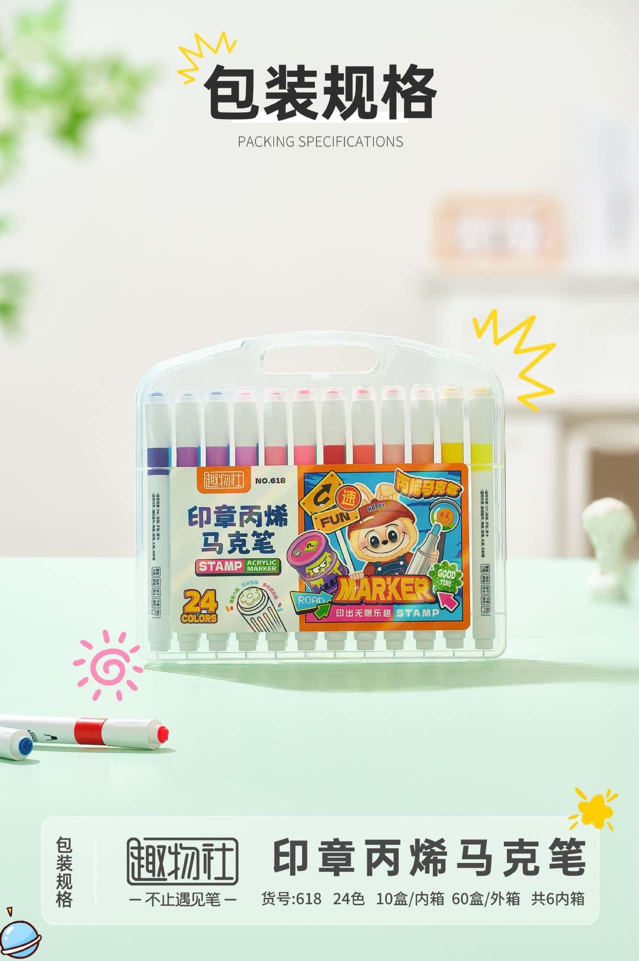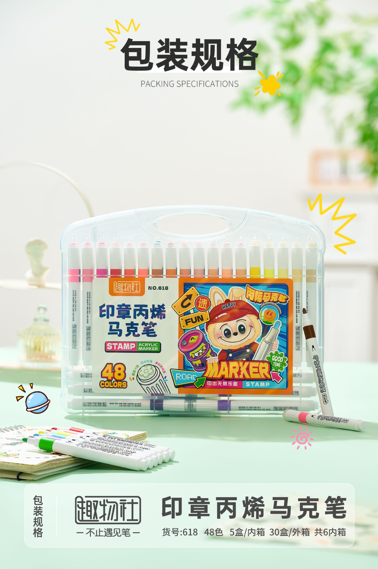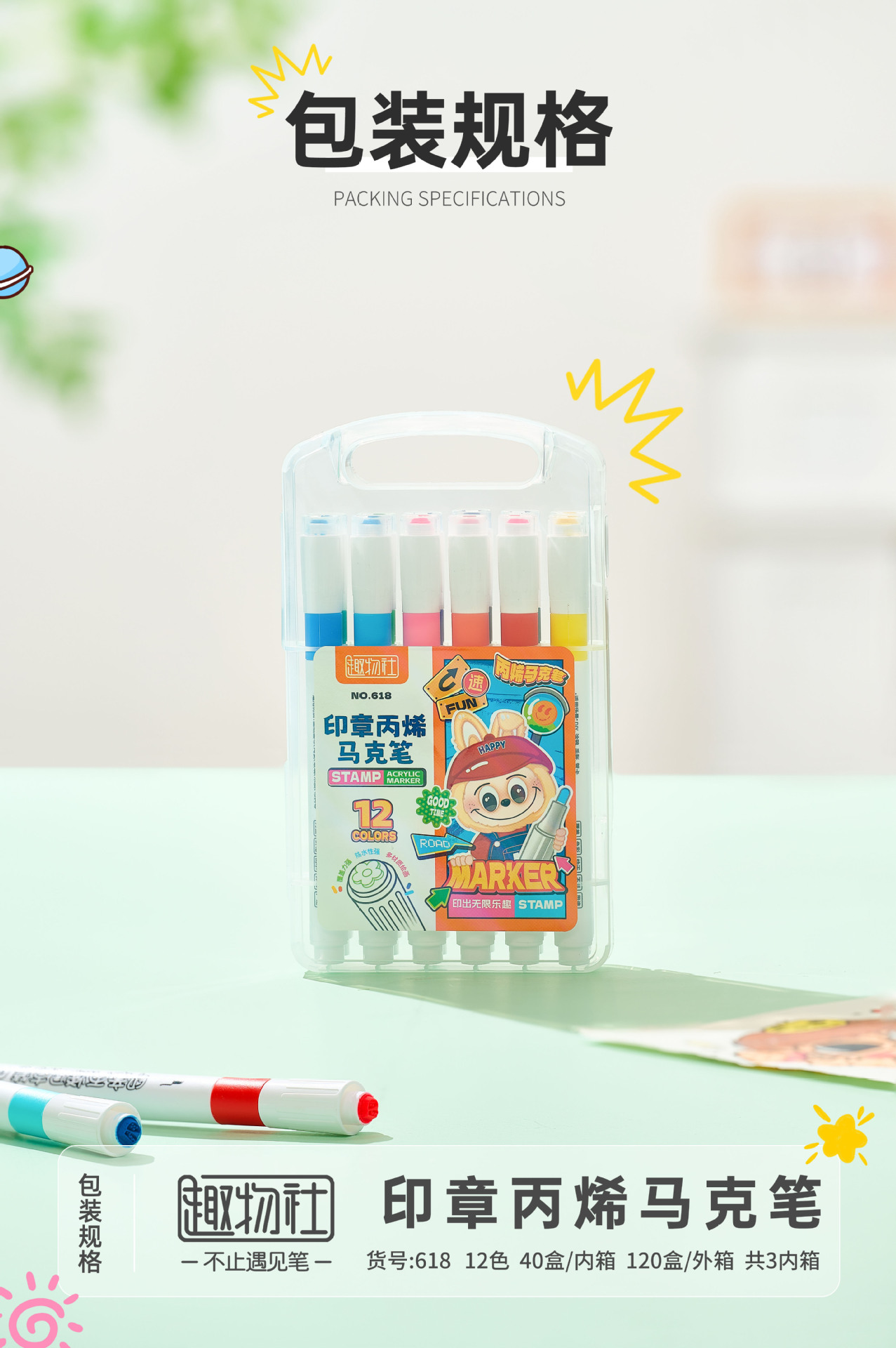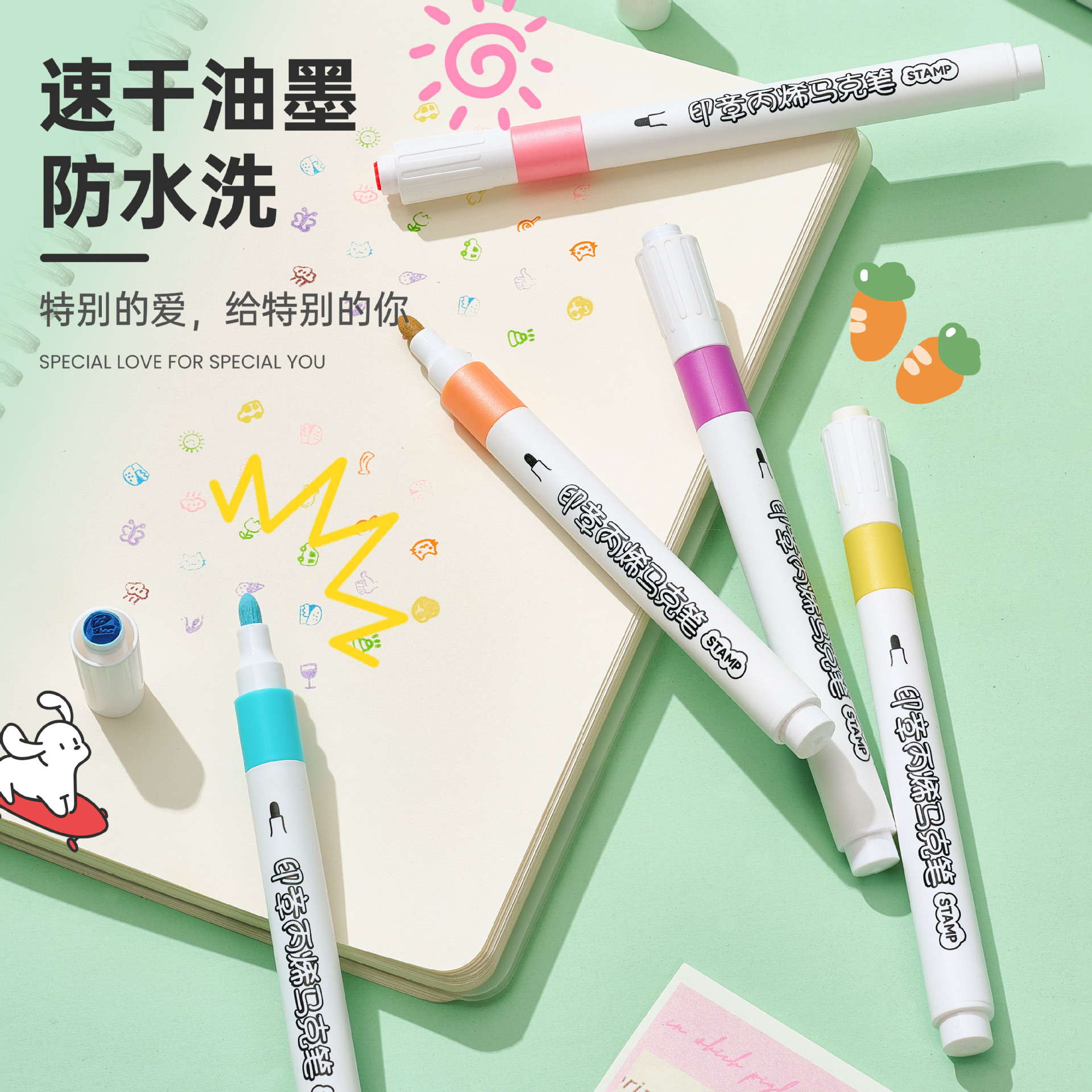 创意印章丙烯马克笔儿童学生专用彩色涂鸦绘画不透纸的马克笔批发