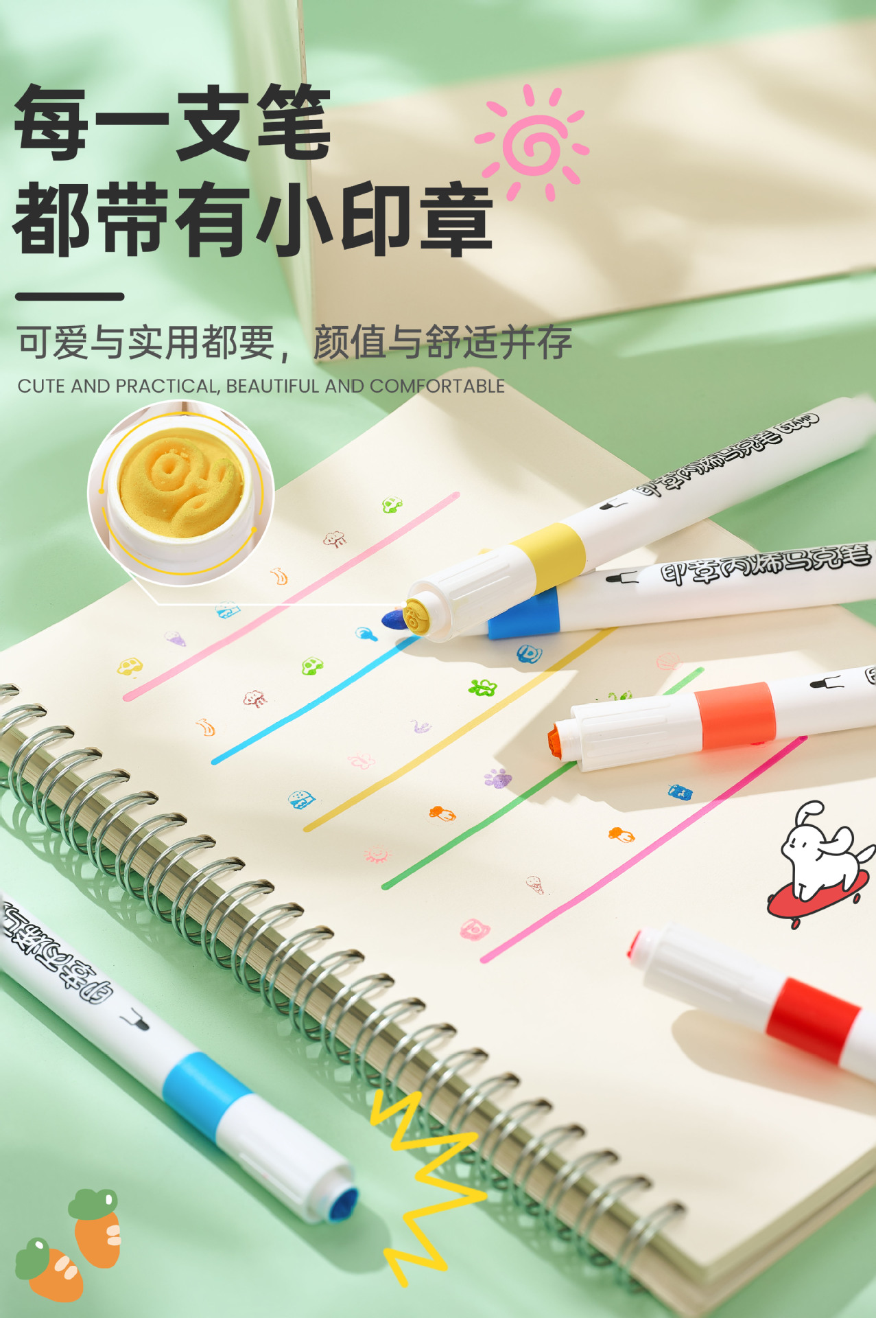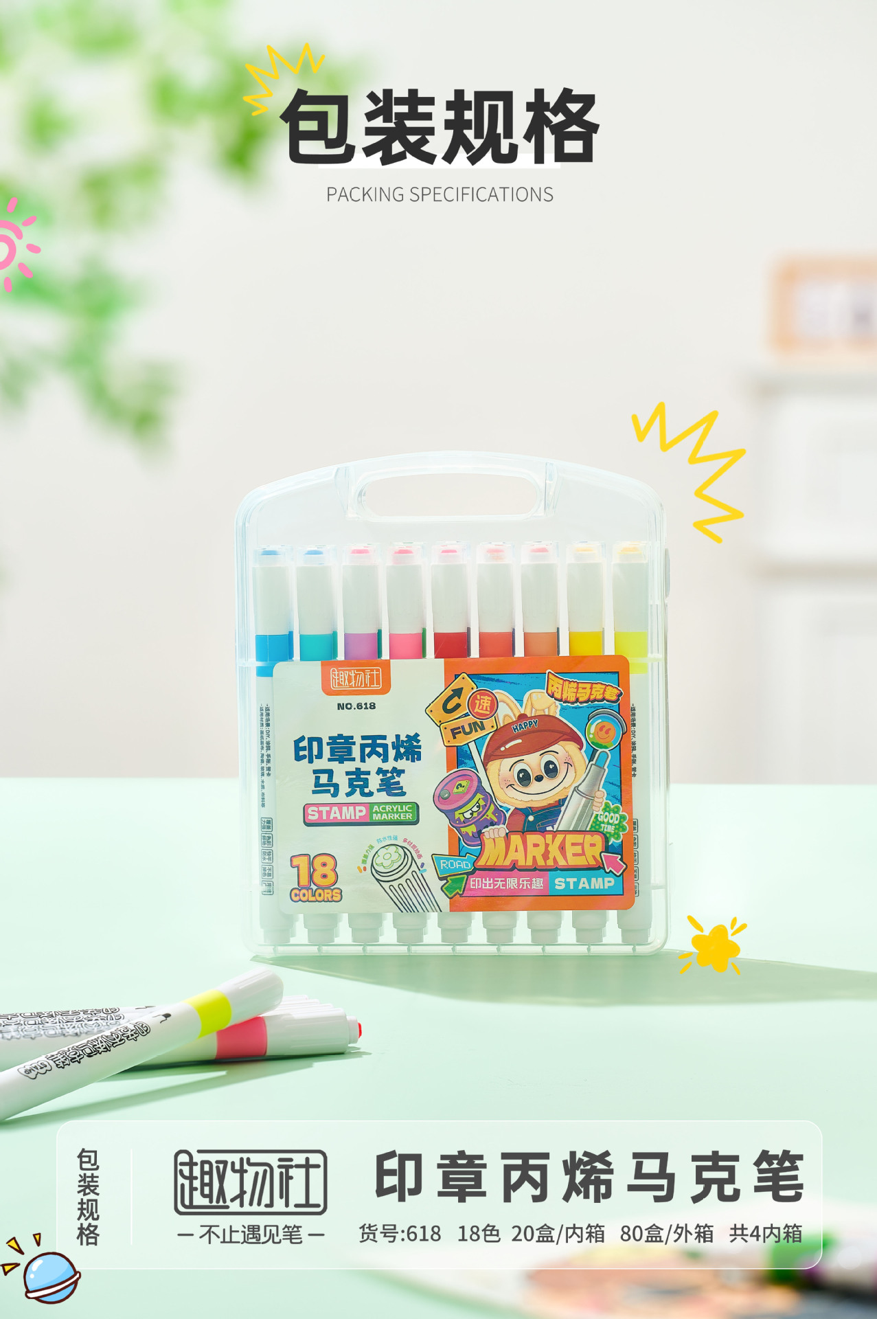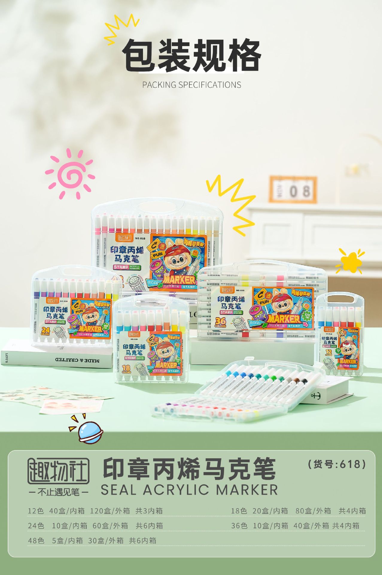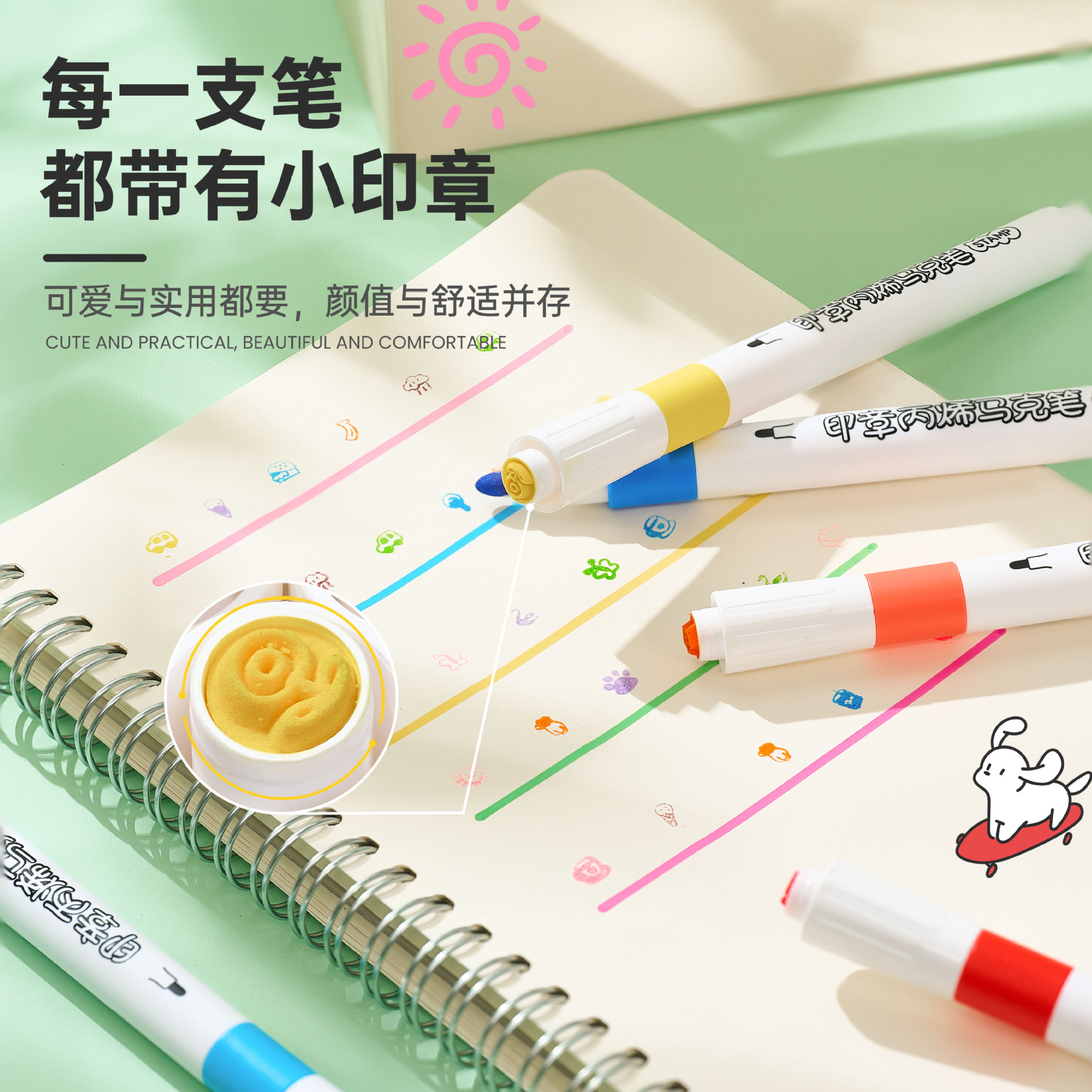创意印章丙烯马克笔儿童学生专用彩色涂鸦绘画不透纸的马克笔批发