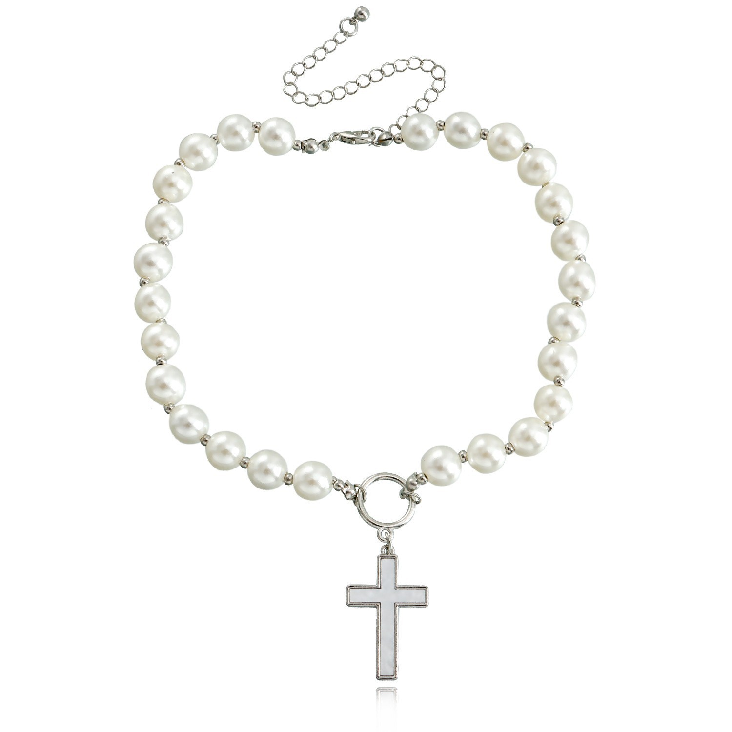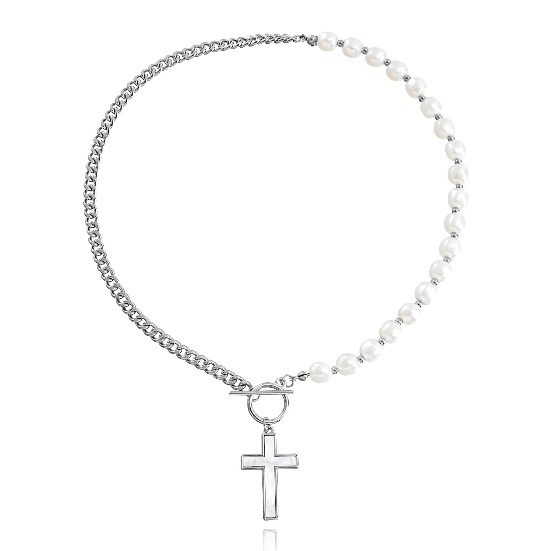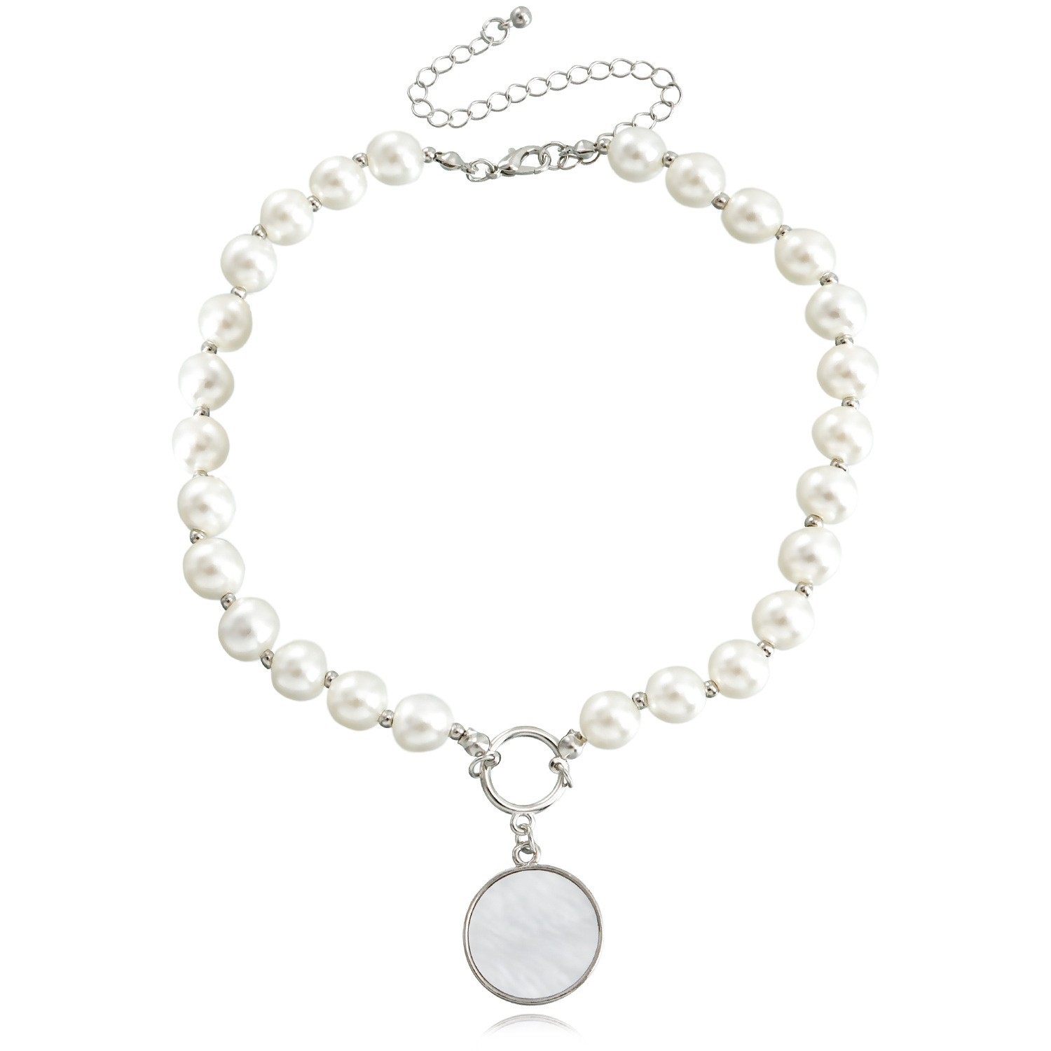 欧美跨境饰品 朋克锁骨链小众设计贝母项链女 潮流合金毛衣链项饰