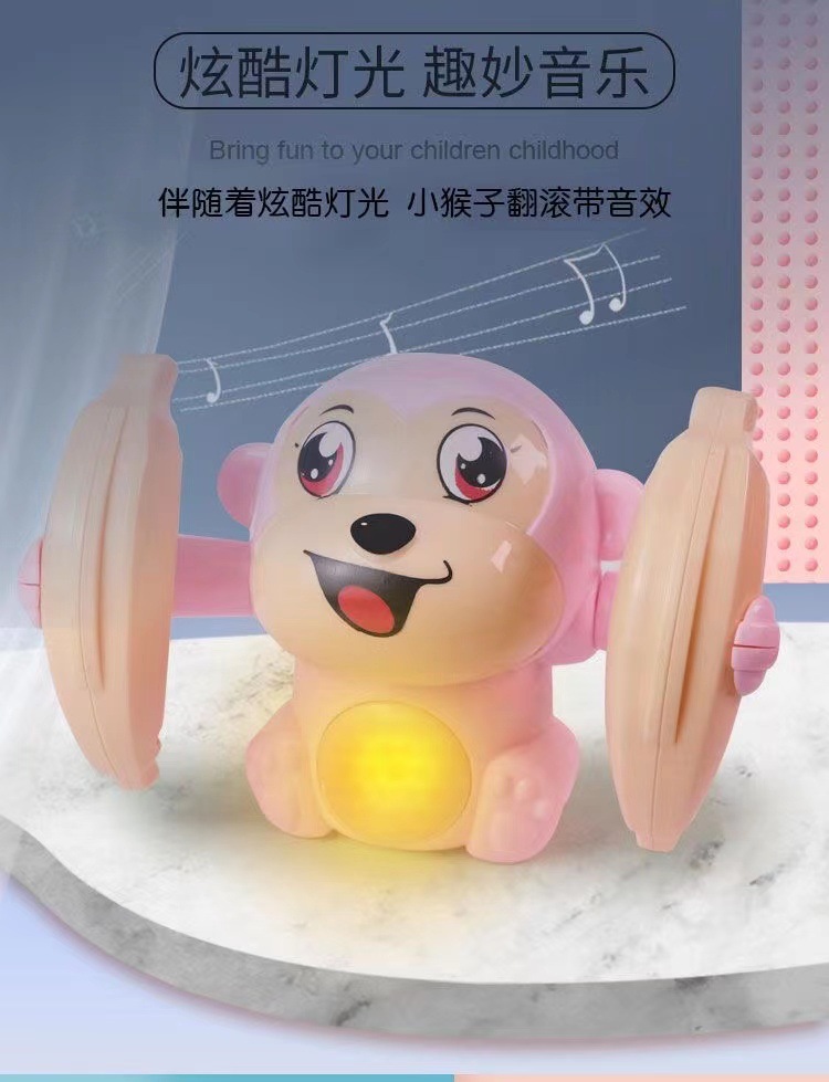 抖音电动翻斗猴卡通翻滚猴子香蕉发光音乐儿童玩具 夜市摆摊货源