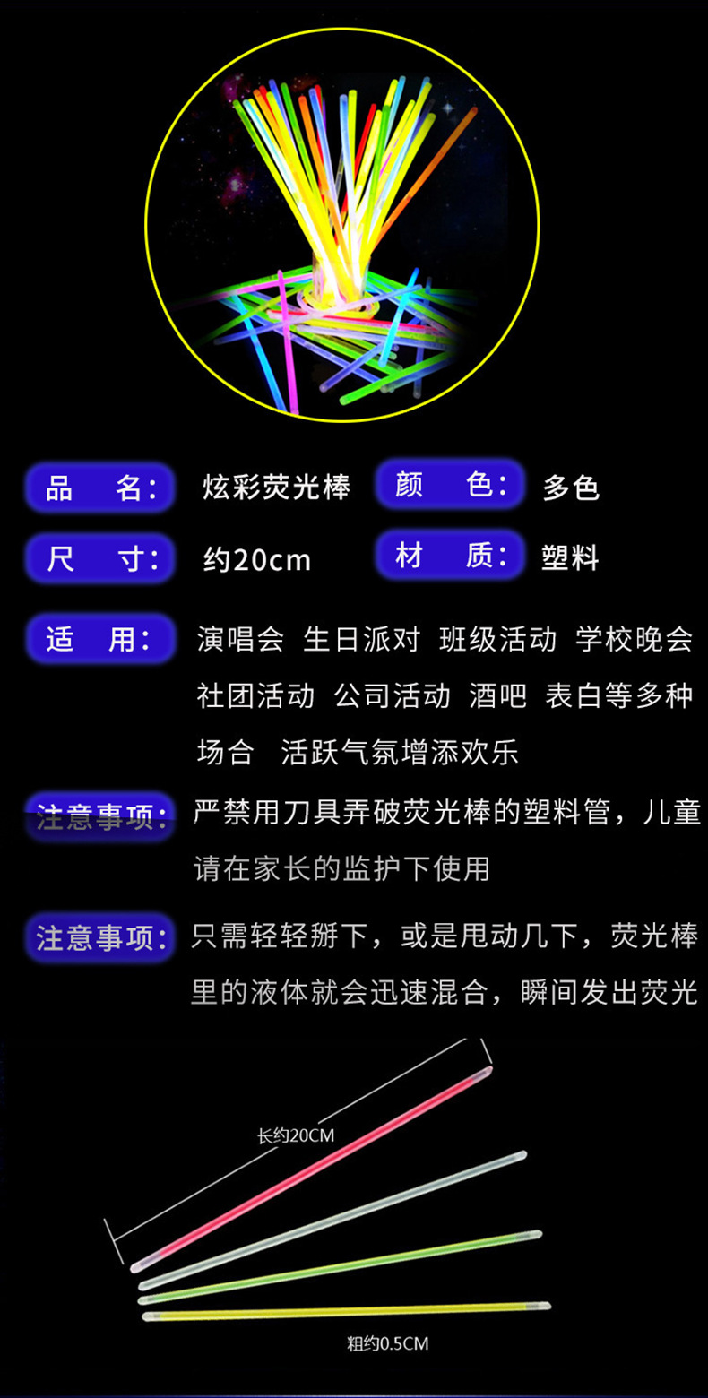 厂家8色50支发光荧光棒抖音网红爆款 发光玩具热卖儿童手环荧光棒