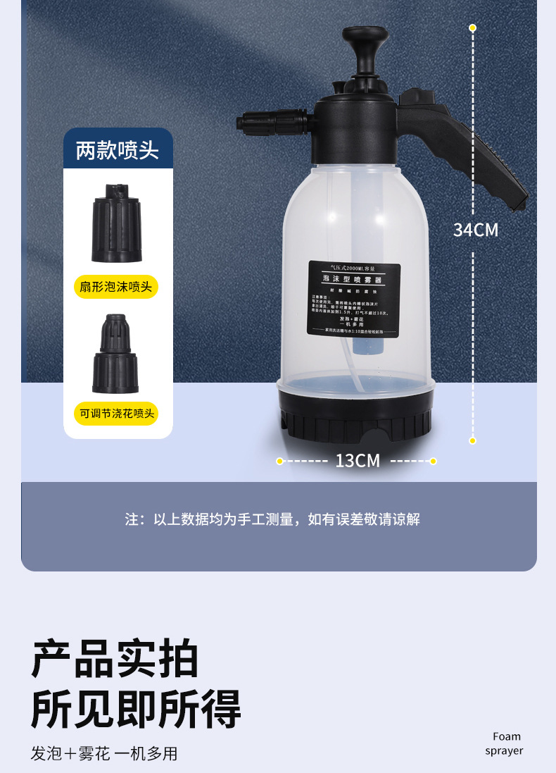 气压式洗车喷雾瓶 高压清洁浇花园林喷壶 手持洗车泡沫喷