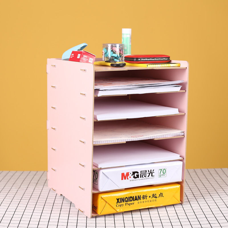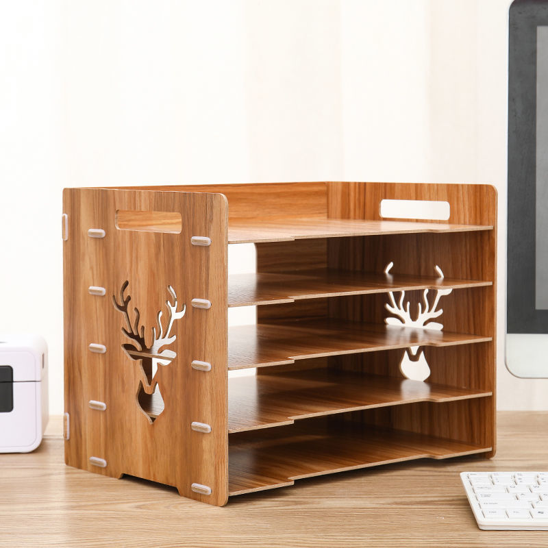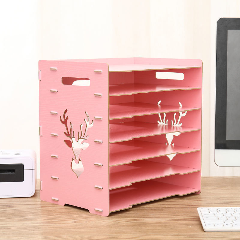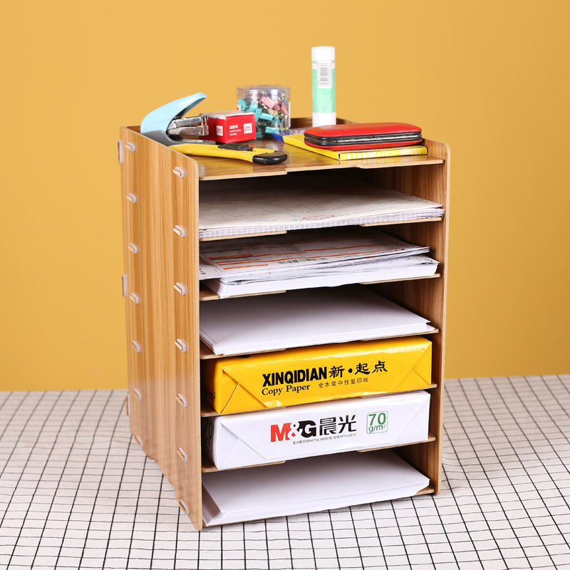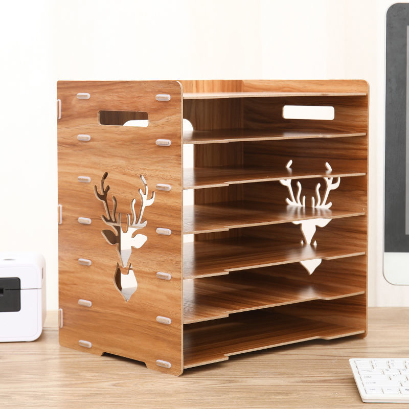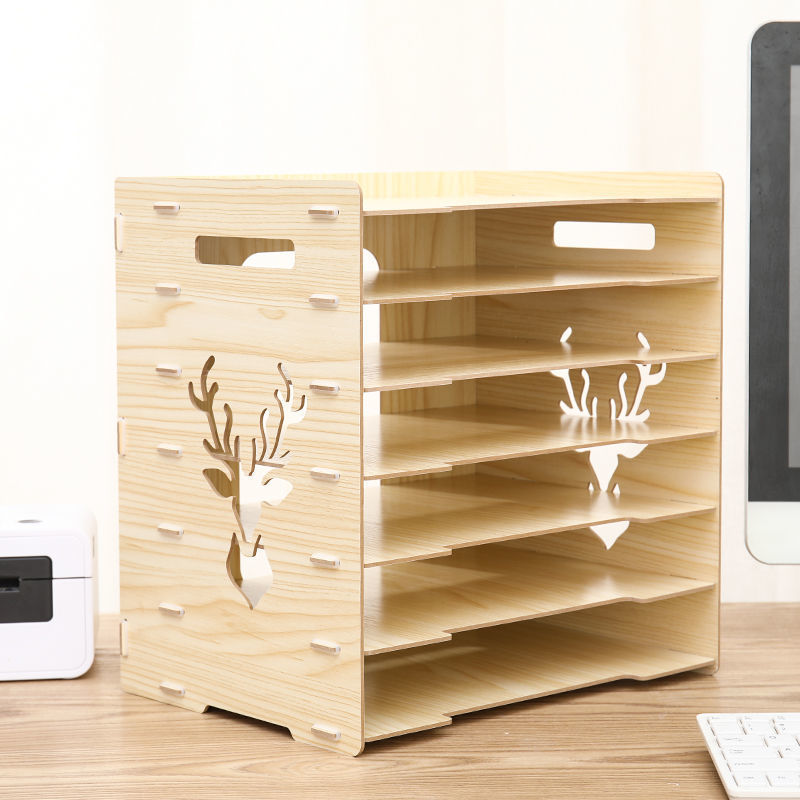 文件夹收纳架7层文件架子桌面多层资料架书架框A4纸分类档案木