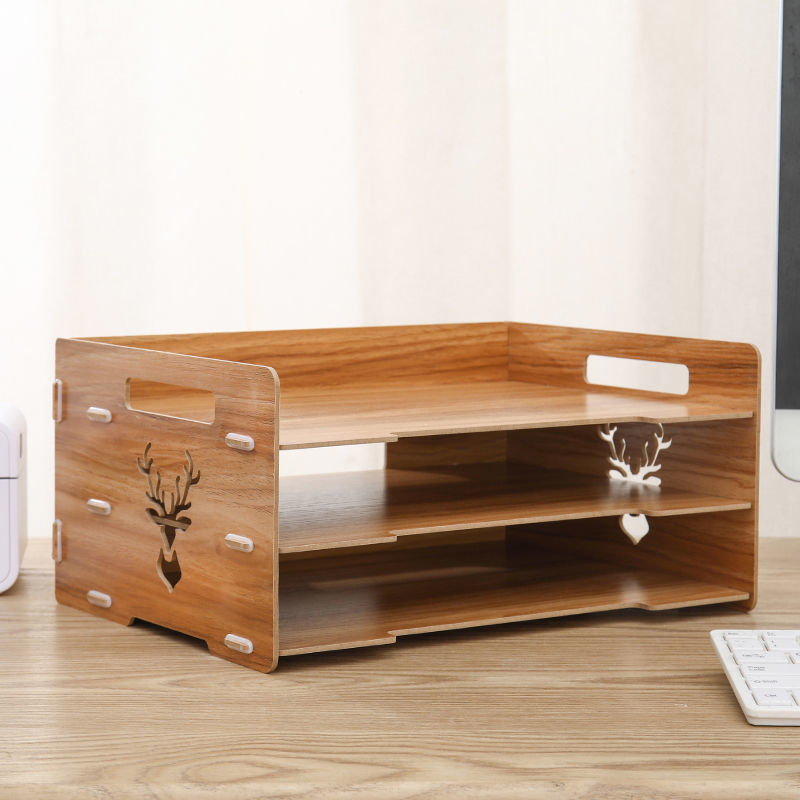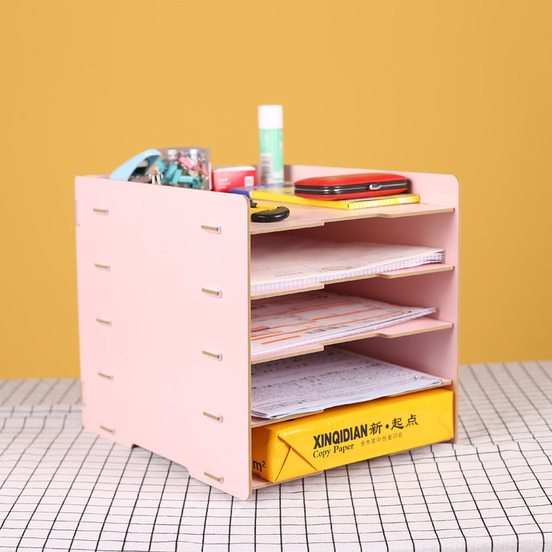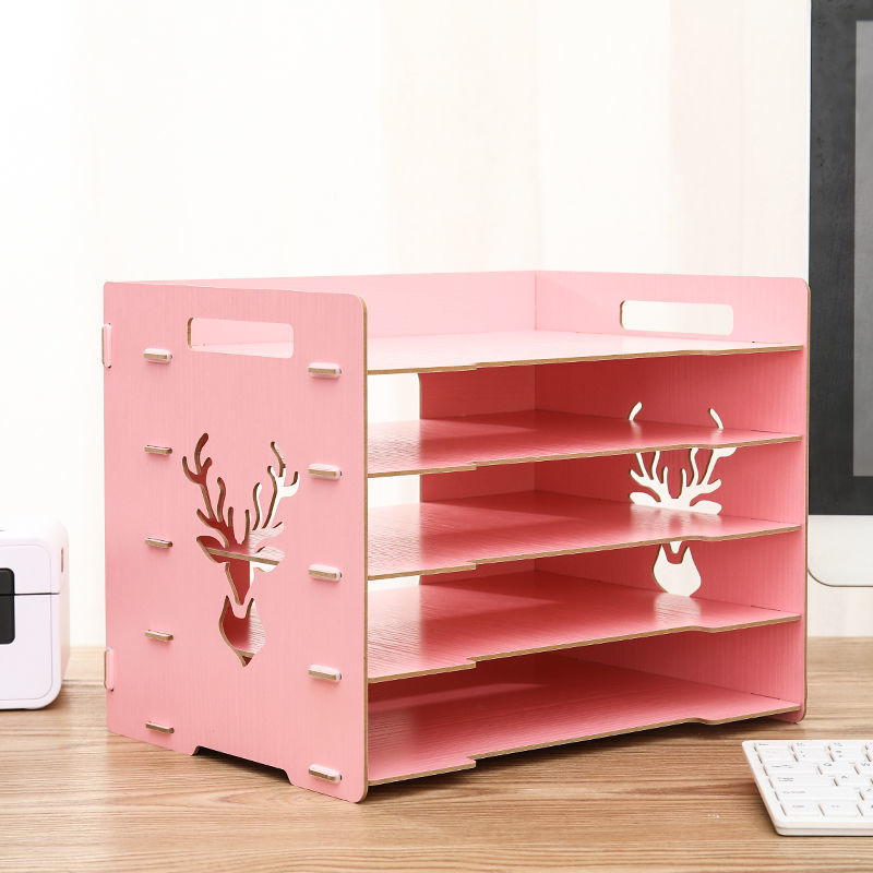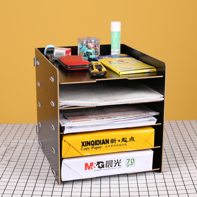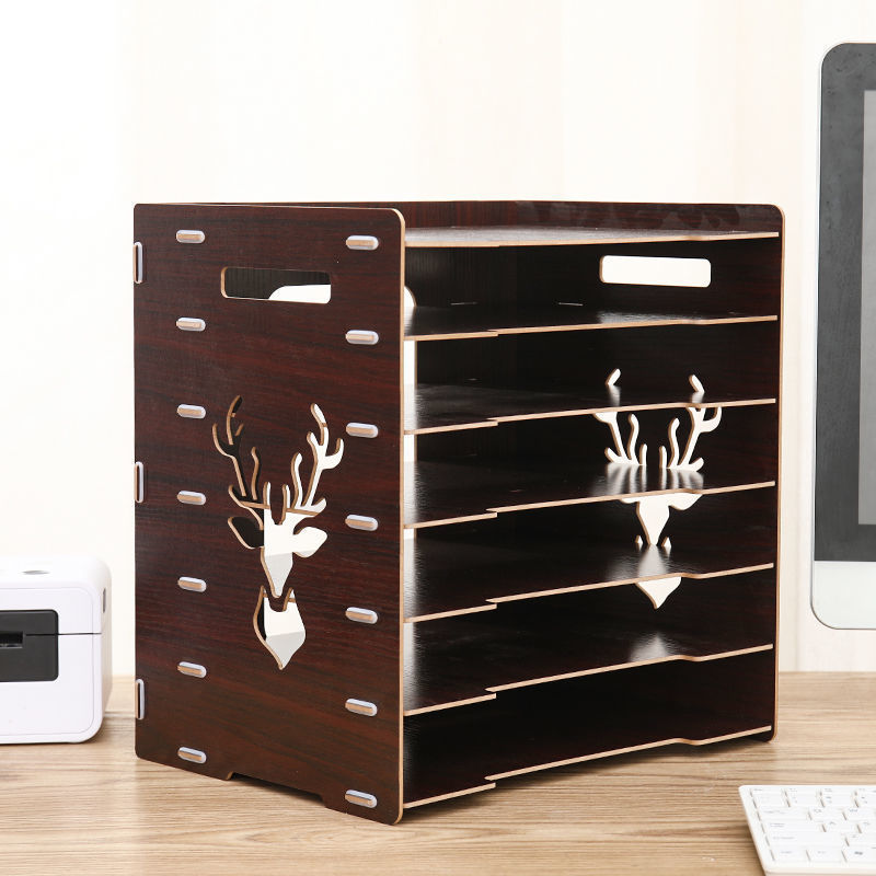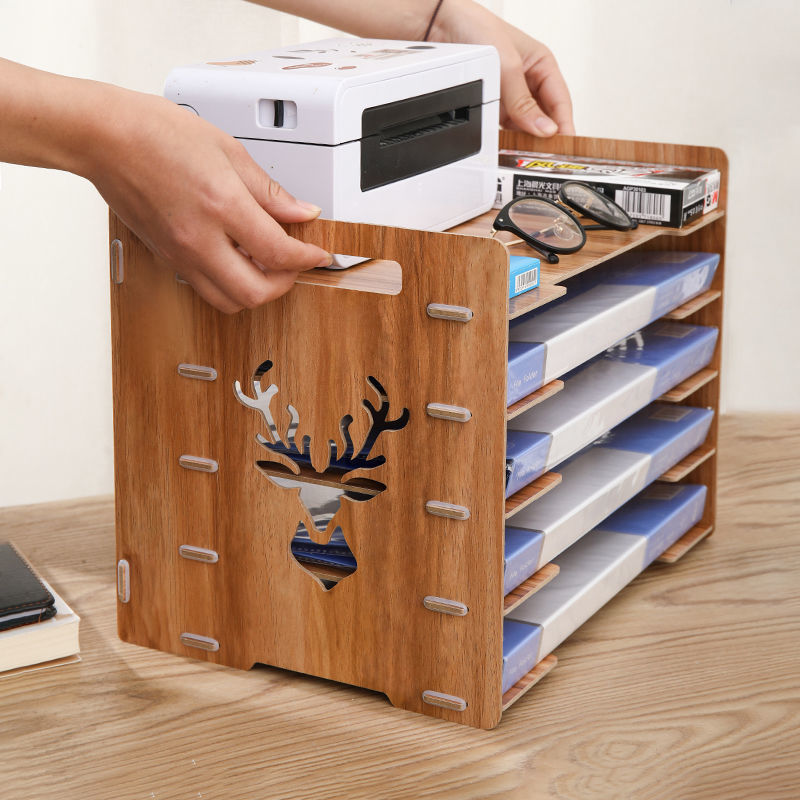 文件夹收纳架7层文件架子桌面多层资料架书架框A4纸分类档案木