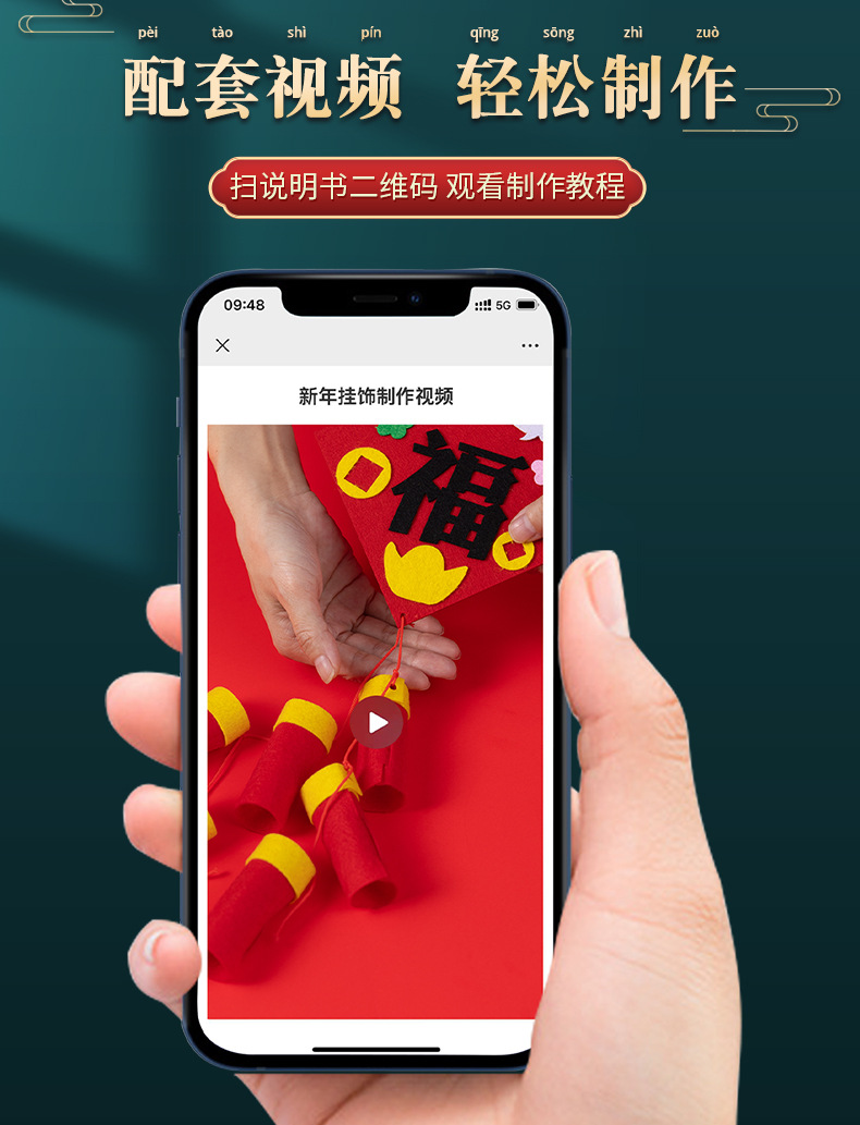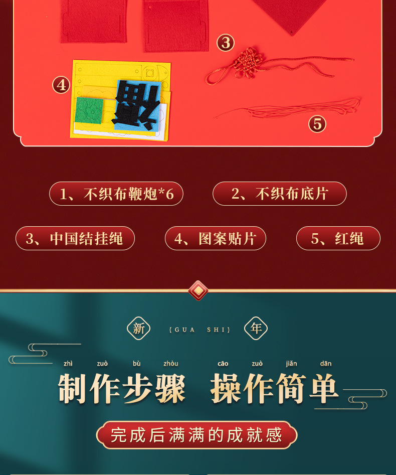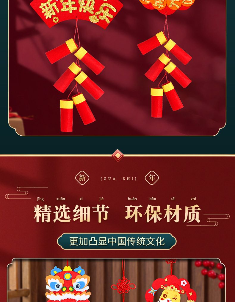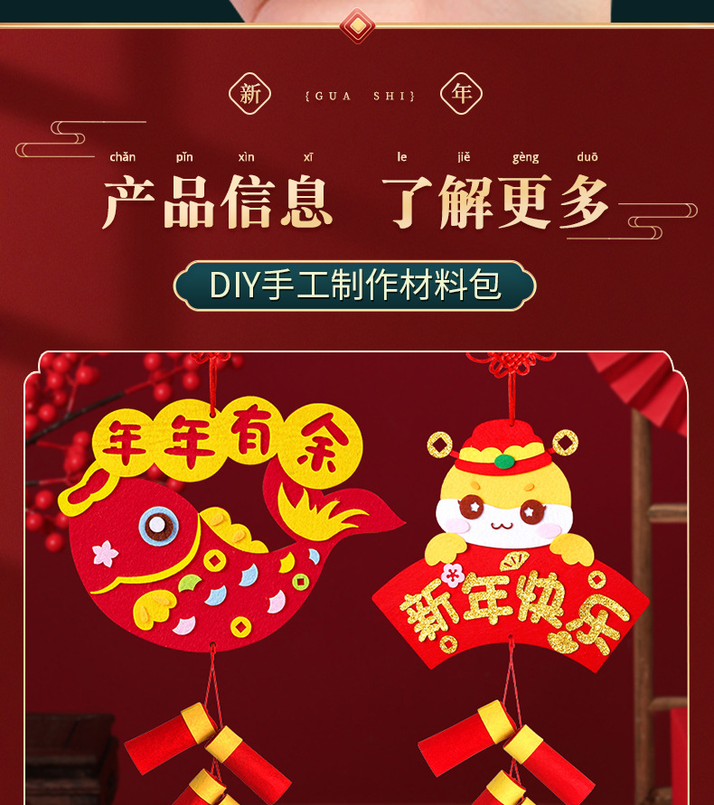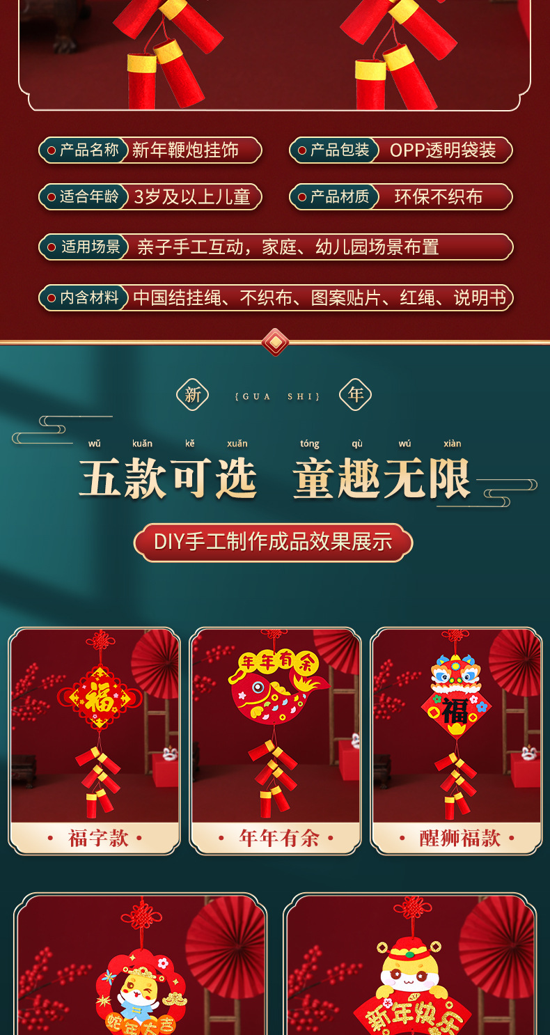 新年手工diy挂饰鞭炮春节儿童手工制作创意不织布材料包益智玩具