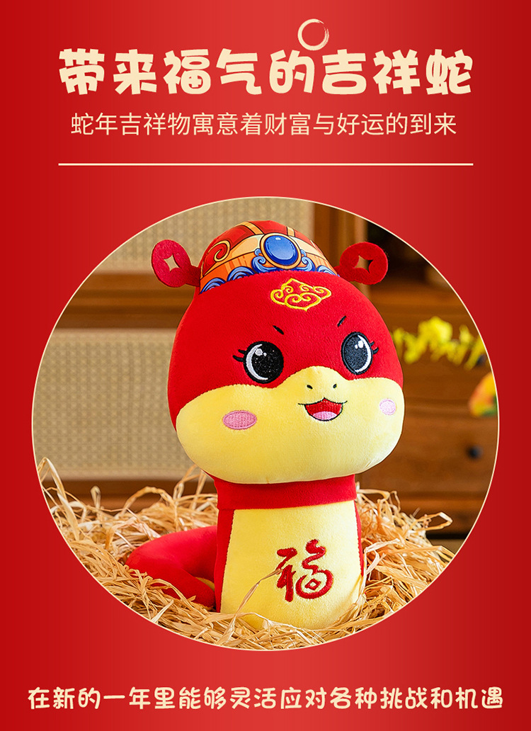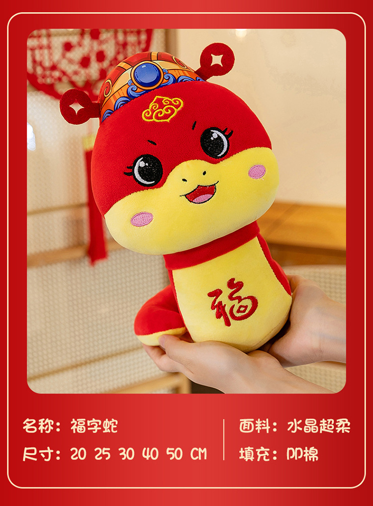 2025蛇年吉祥物新年礼物福字公仔可爱毛绒玩具公司礼品批发生肖蛇