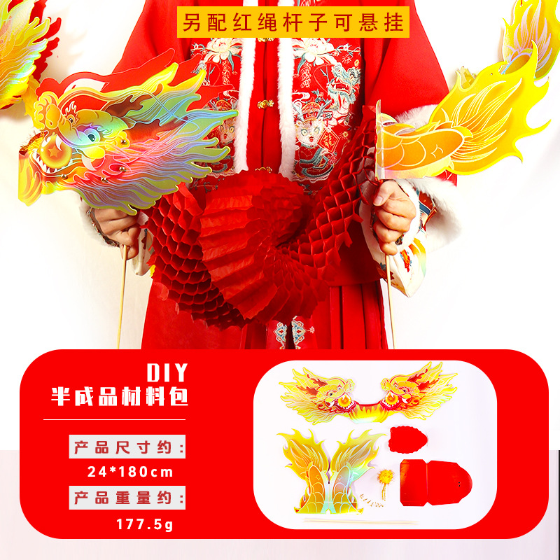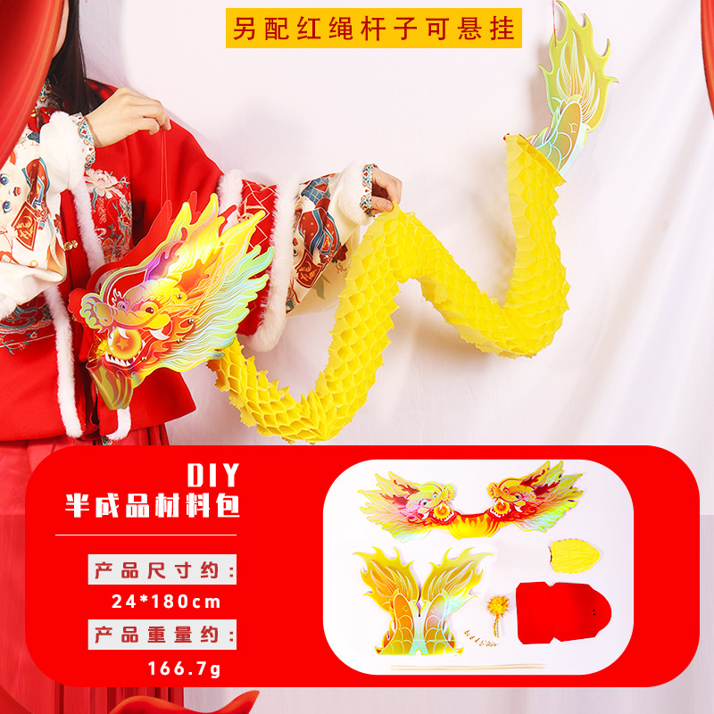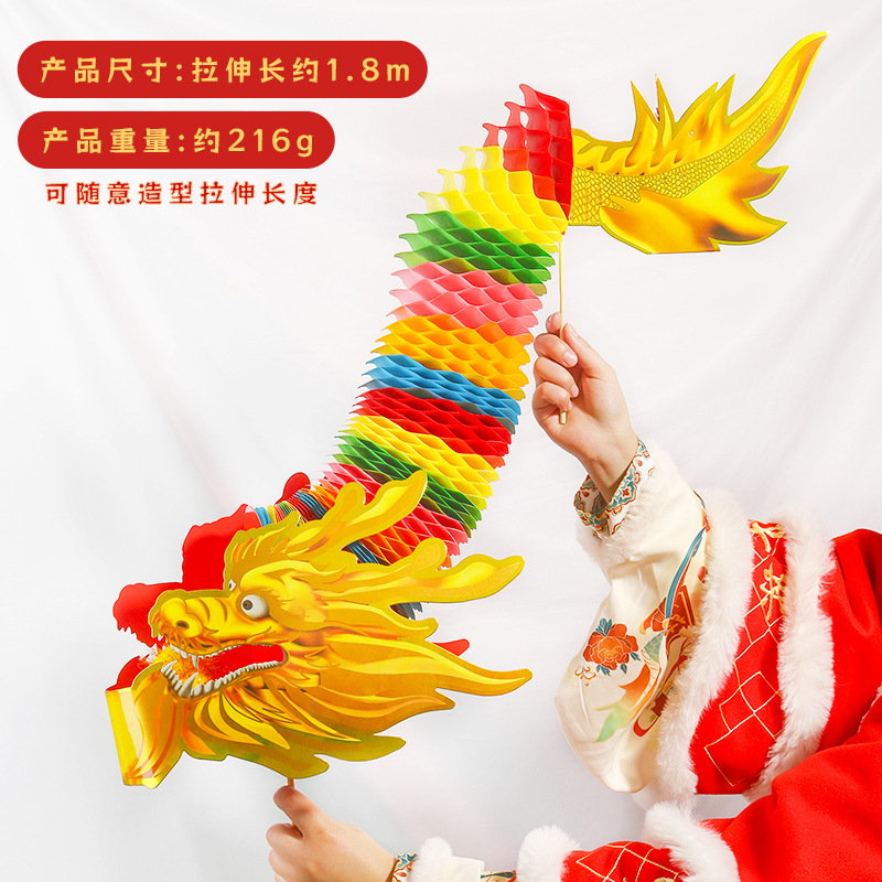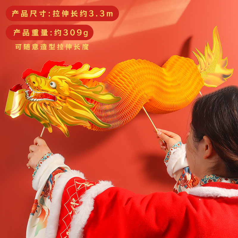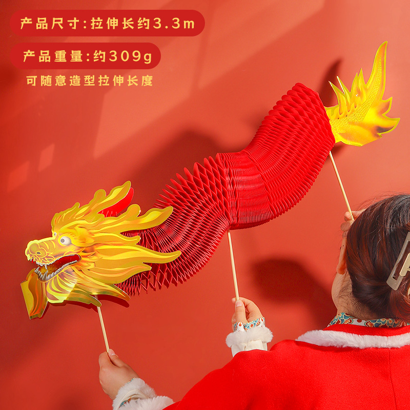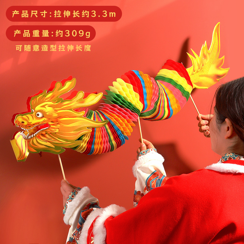 蛇年拉花舞龙灯笼春节儿童diy手工剪纸玩具新年装饰龙灯蜂窝纸龙