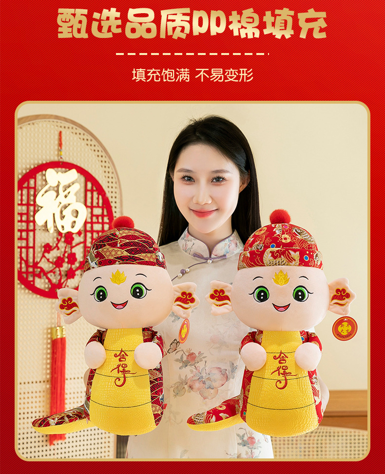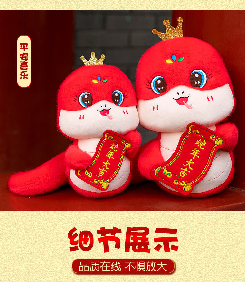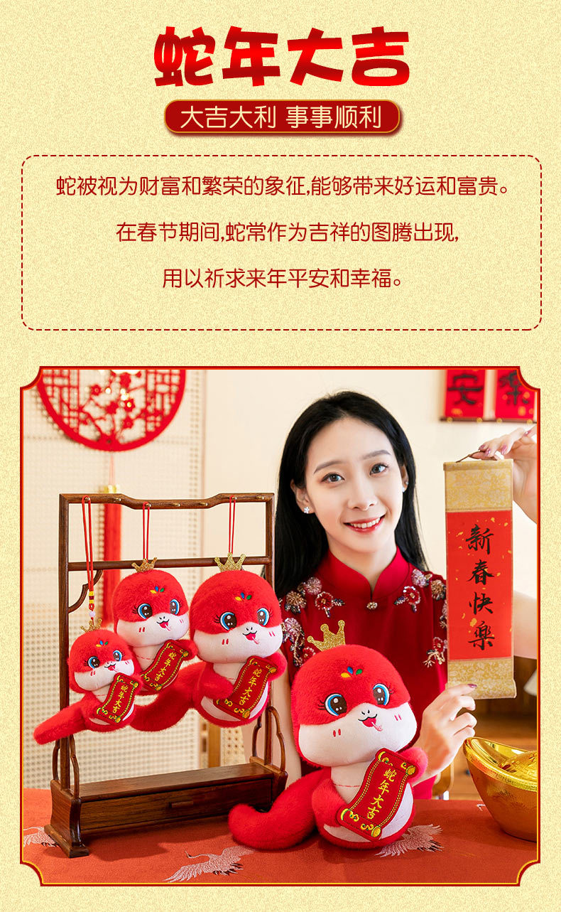 新年蛇年吉祥物公仔毛绒玩具本命年富贵蛇娃娃生肖玩偶礼品定logo