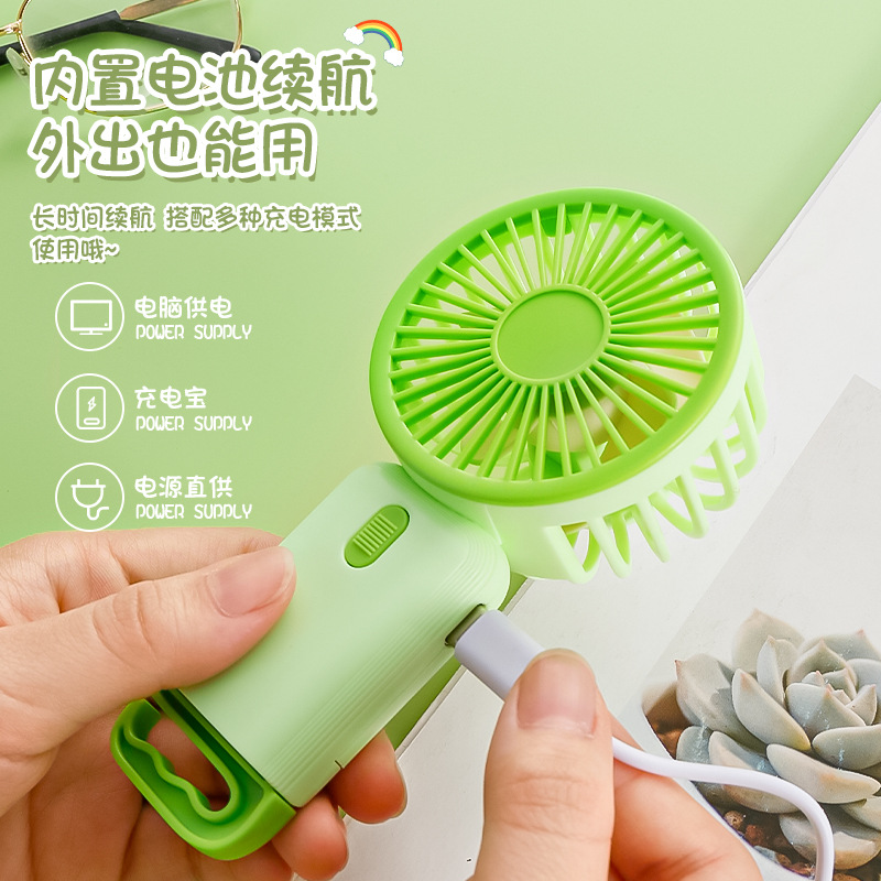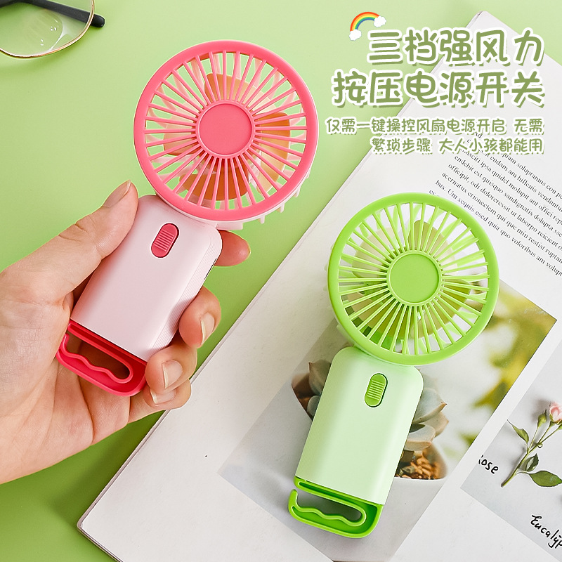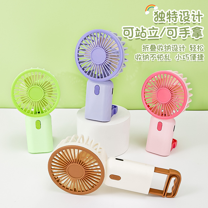 东南亚热卖3档大风力手持迷你风扇 桌面可折叠挂钩底座充电小风扇