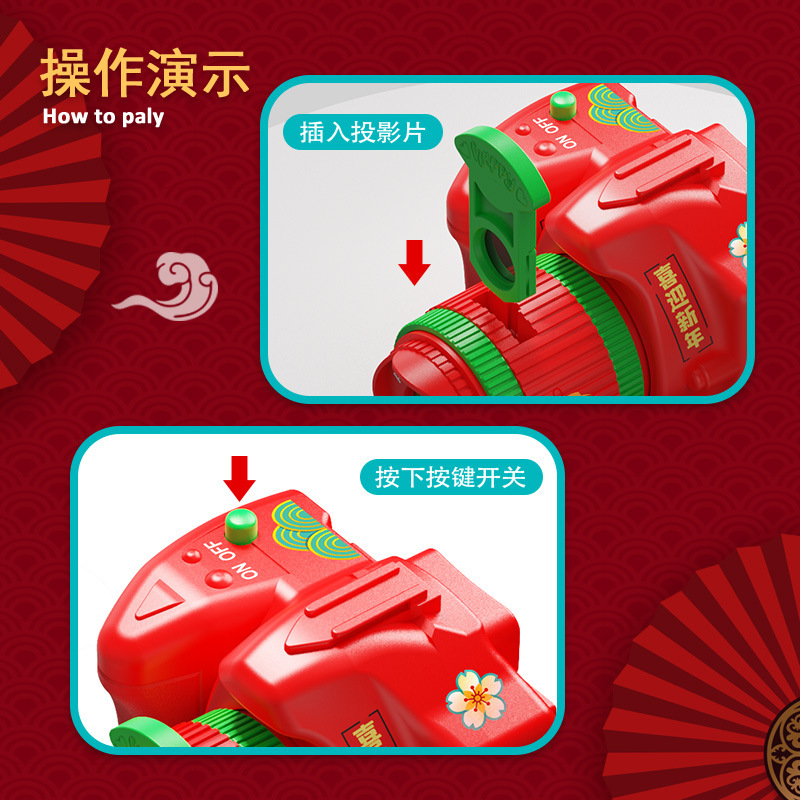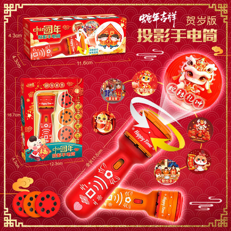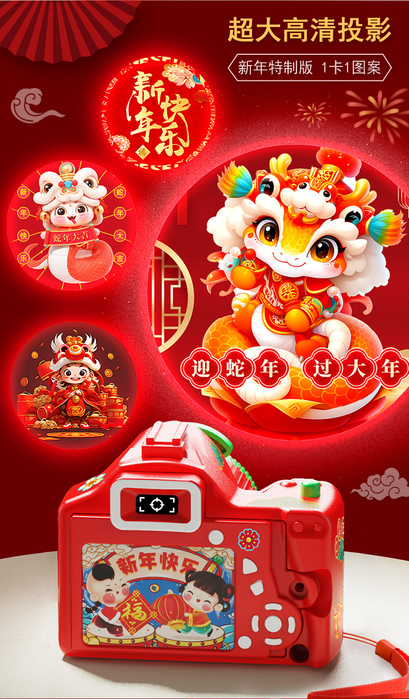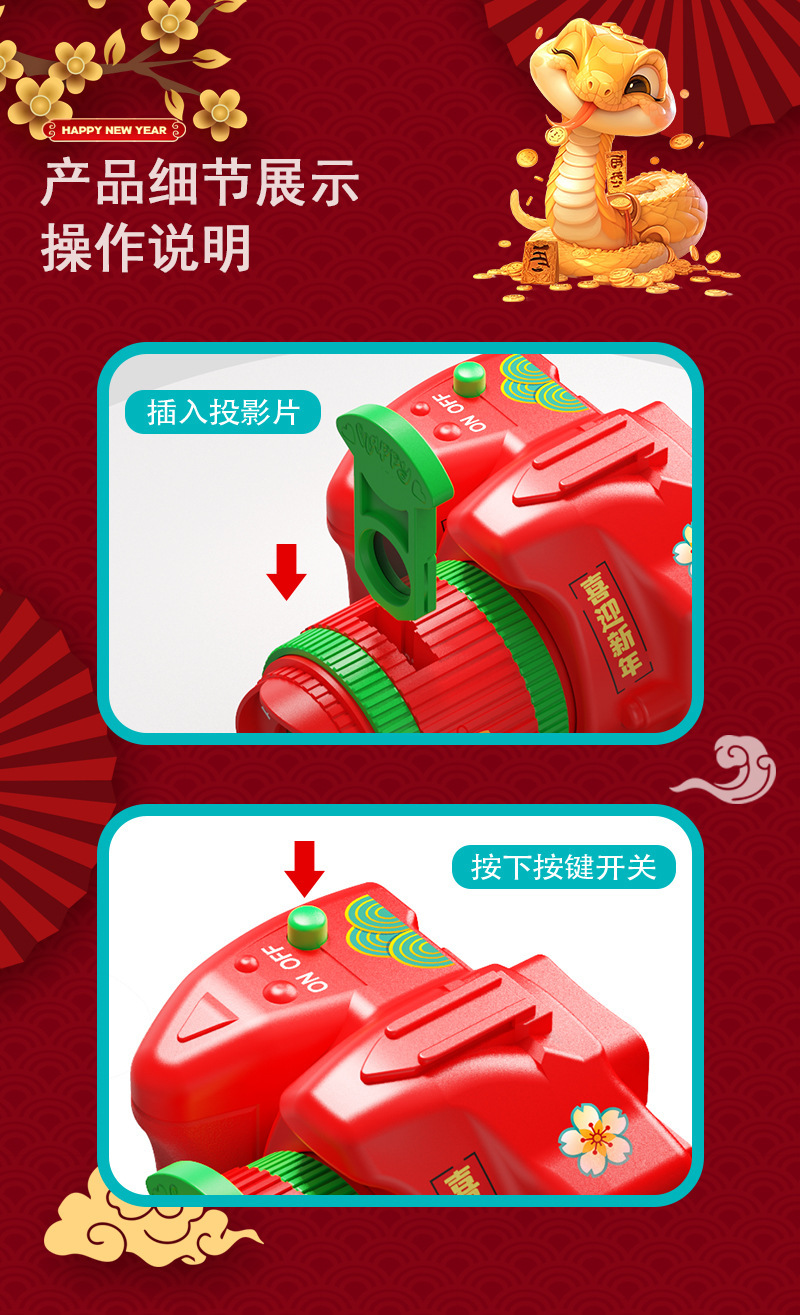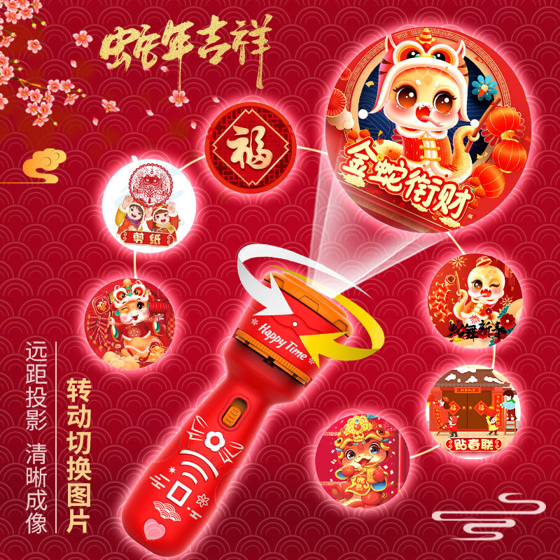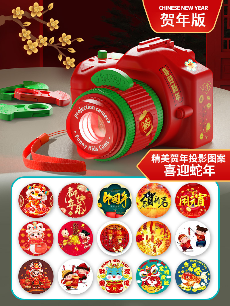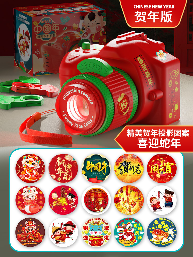 抖音爆款儿童蛇年新年手电筒发光投影照相机礼物过年跨年摆摊玩具