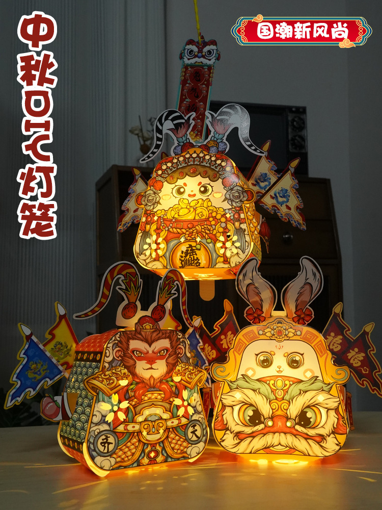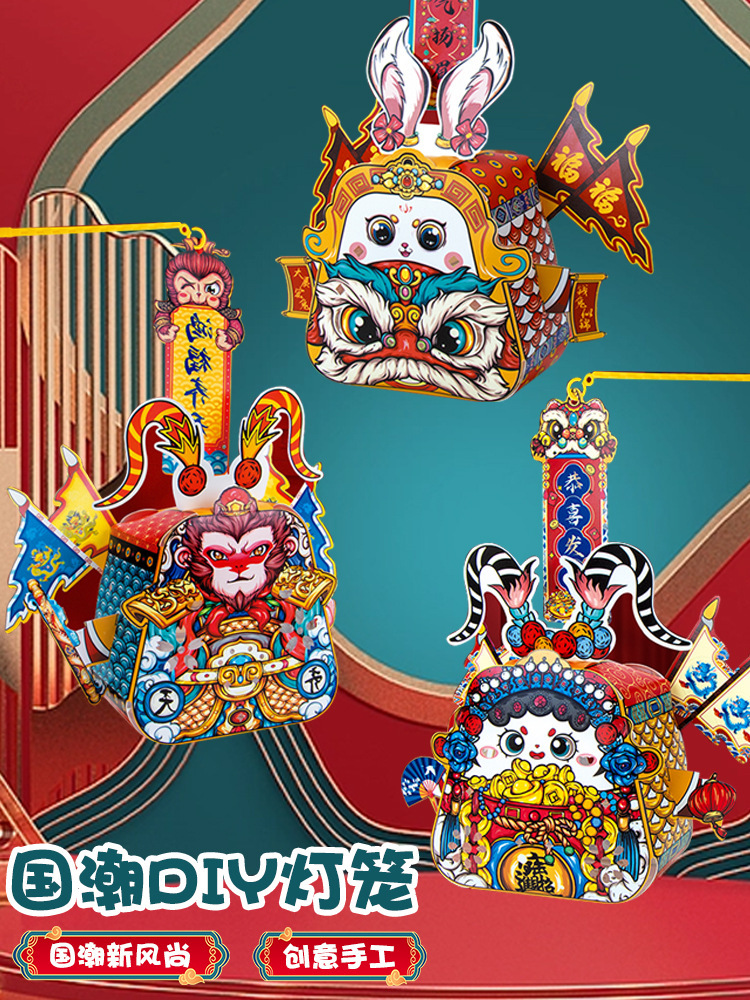 中秋花灯手提儿童玩具发光过年 装饰灯笼DIY古风春节国潮夜灯元旦