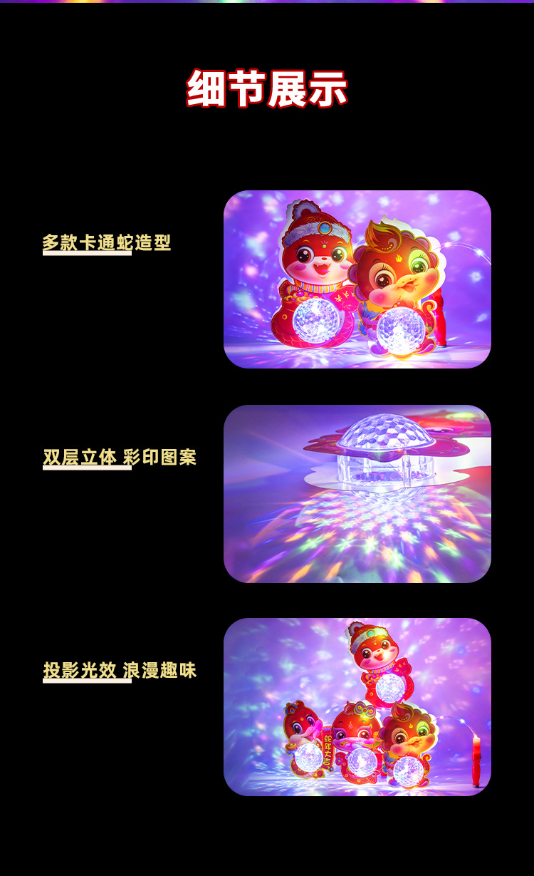 2025年新款投影蛇宝灯笼卡通喜庆花灯儿童新年元宵发光玩具小礼品