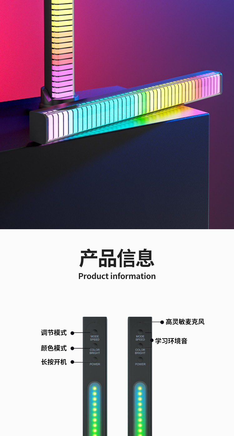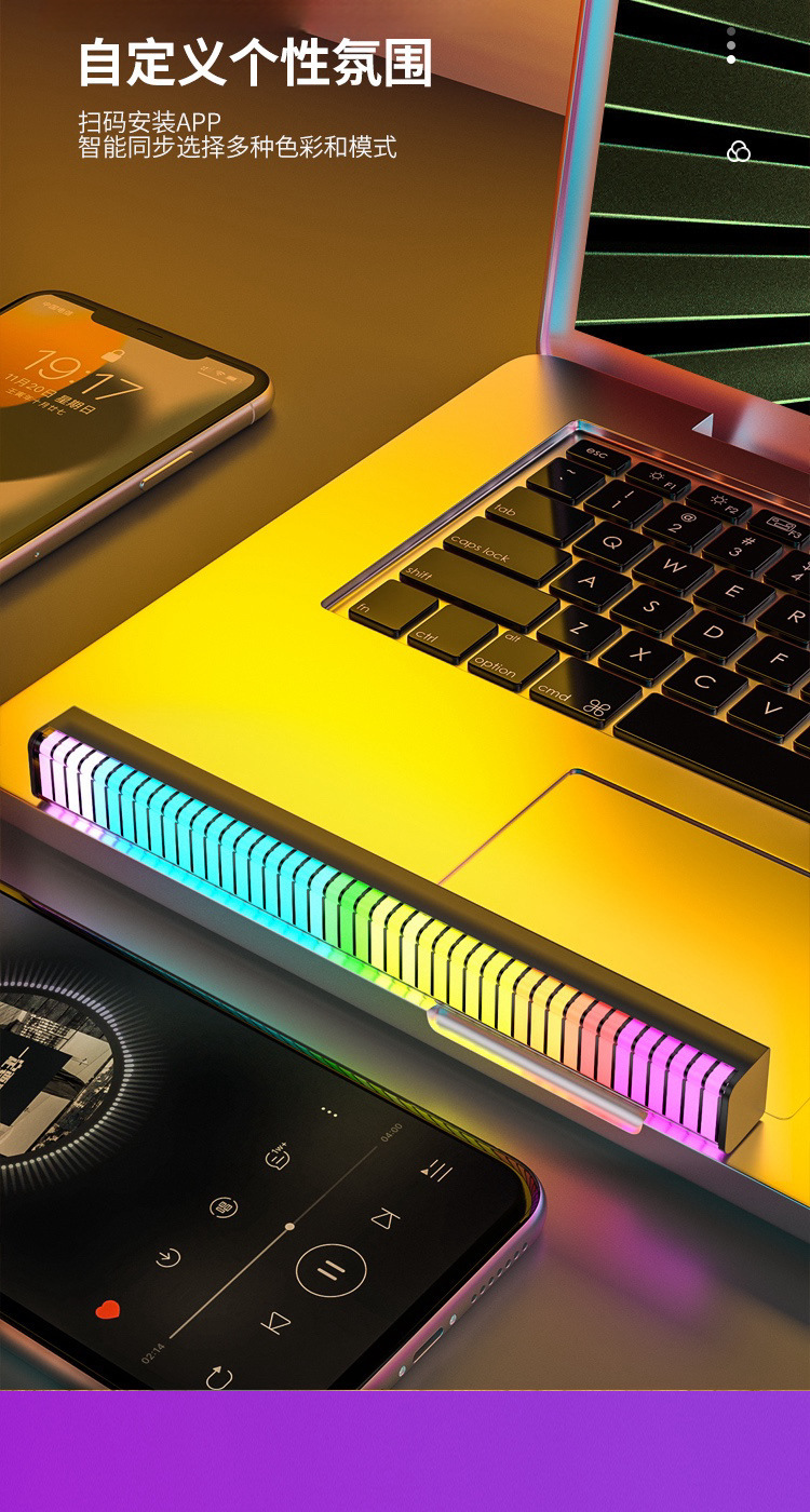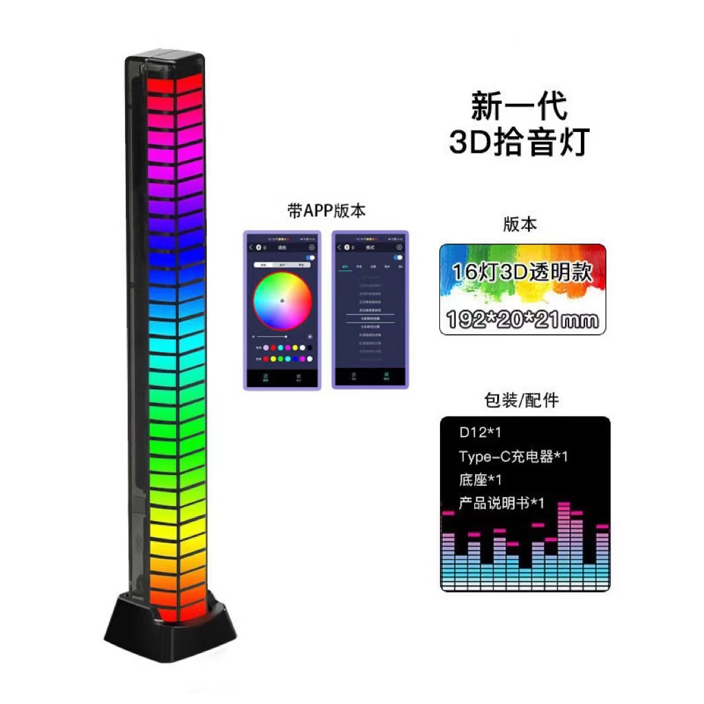外贸专供3D双面拾音灯RGB声控音乐节奏灯APP蓝牙氛围感应灯条