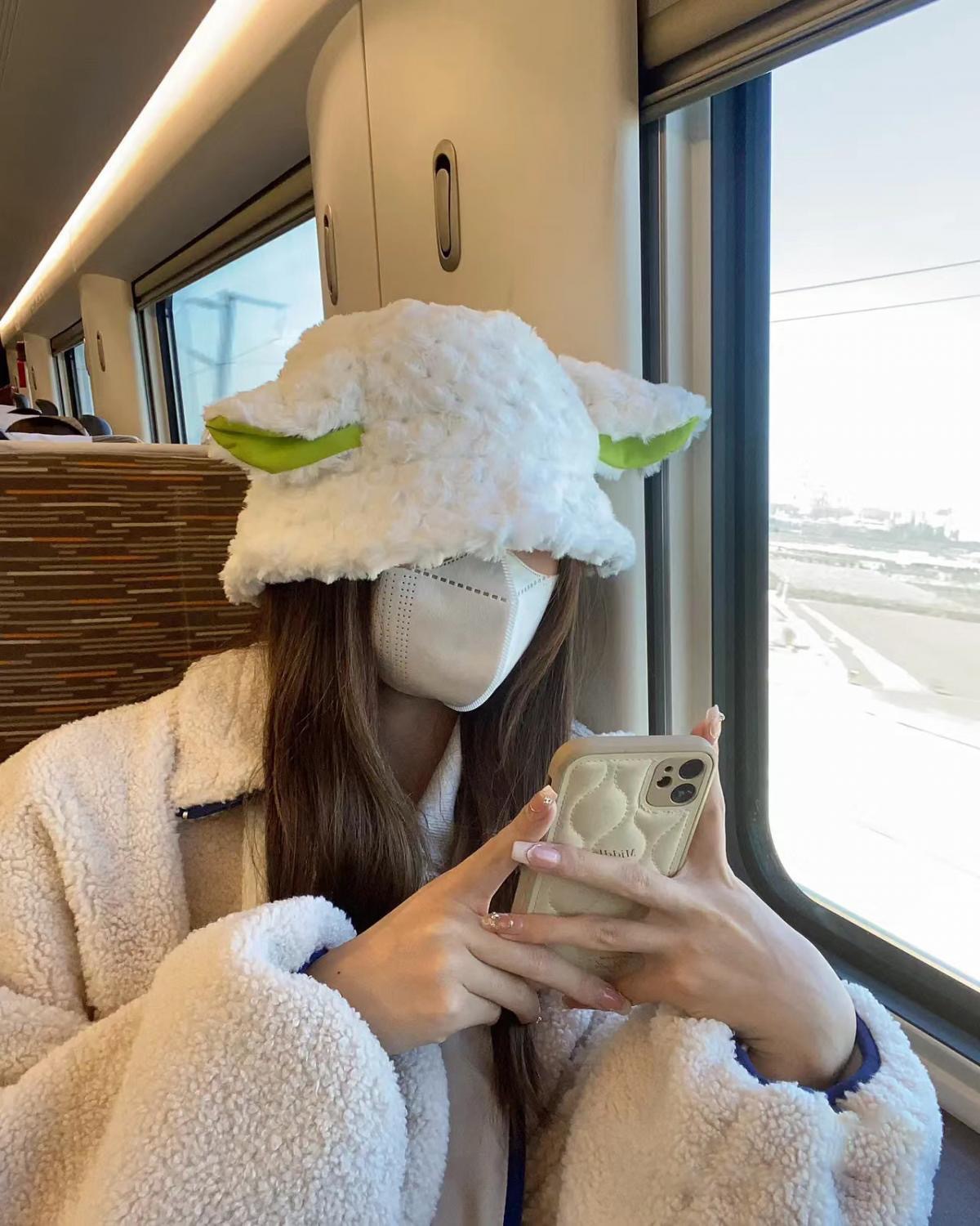 网红同款小羊帽子女冬季甜美可爱毛绒渔夫帽女保暖百搭毛茸茸帽子