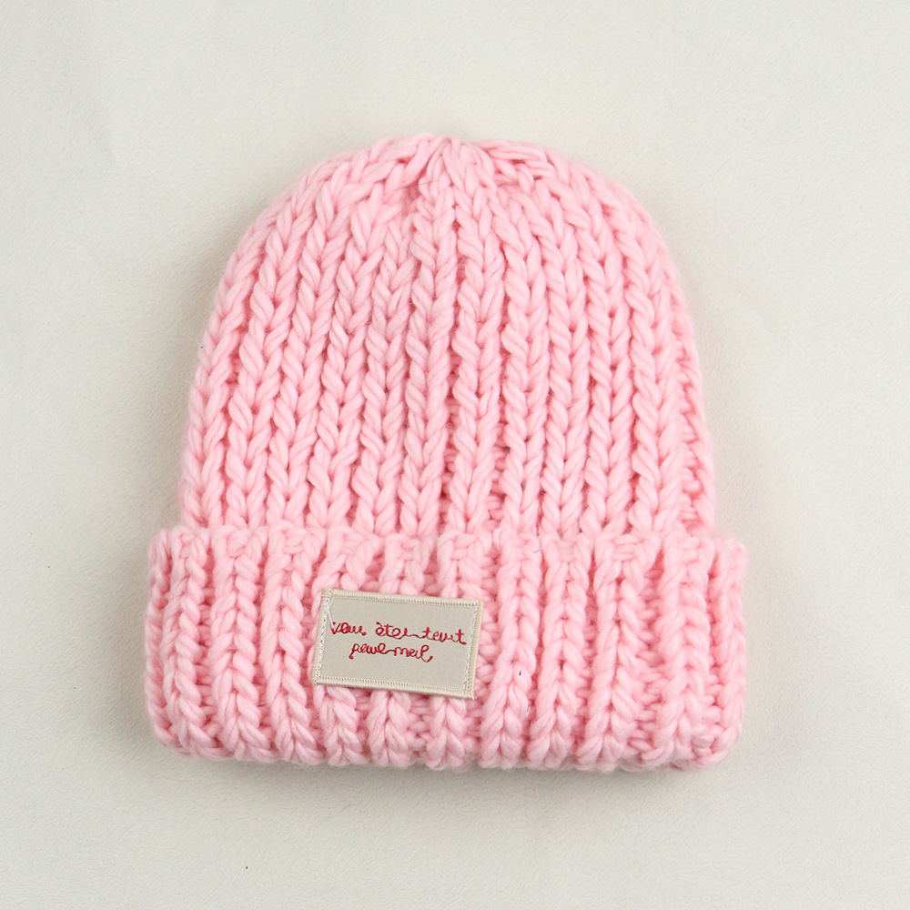 2024年秋冬季大头围贴布蓝色针织毛线帽女显脸小百搭帽子护耳冷帽