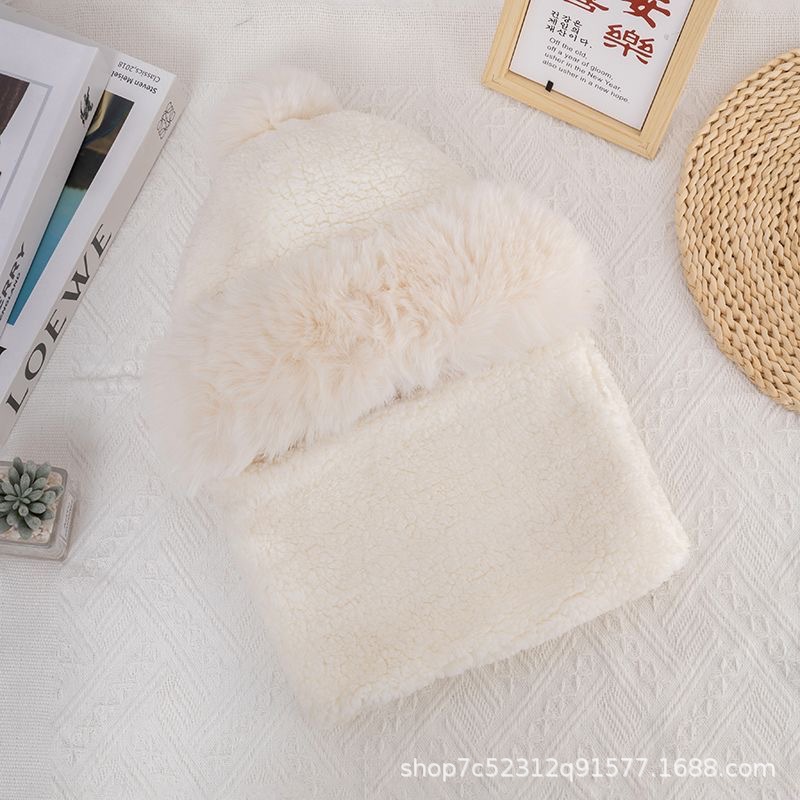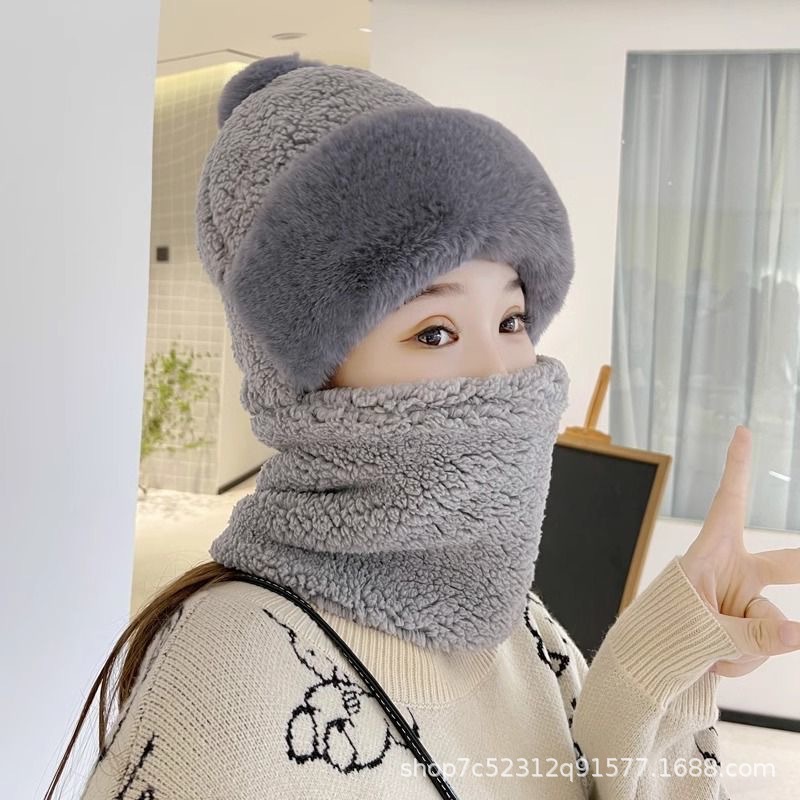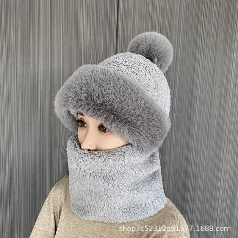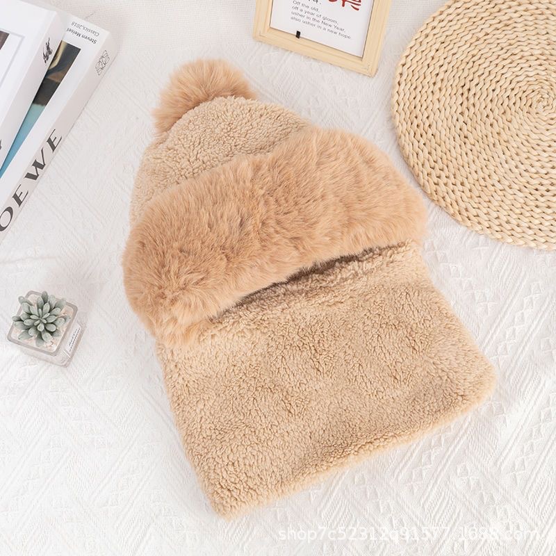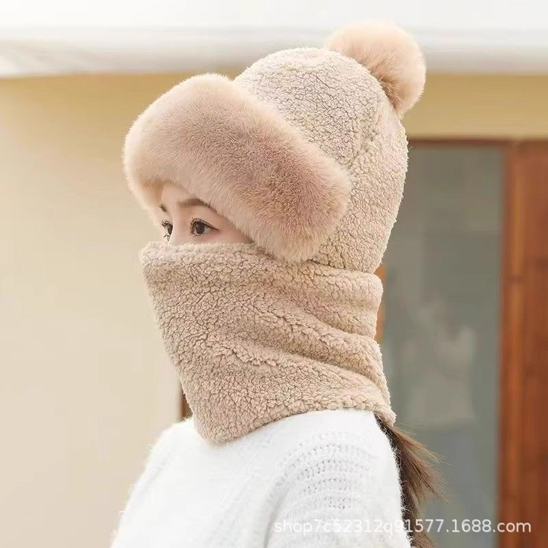 冬季保暖帽子围脖口罩一体毛球帽加厚护颈防风包头帽民族风蒙古帽