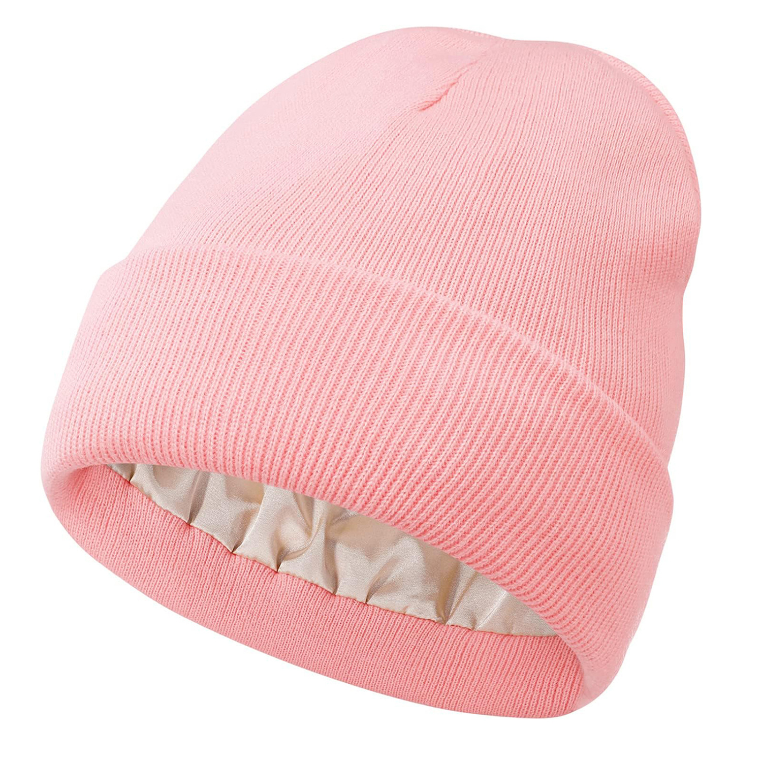 2024欧美秋冬缎面色丁帽子跨境女士保护发型保暖针织帽晴纶毛线帽