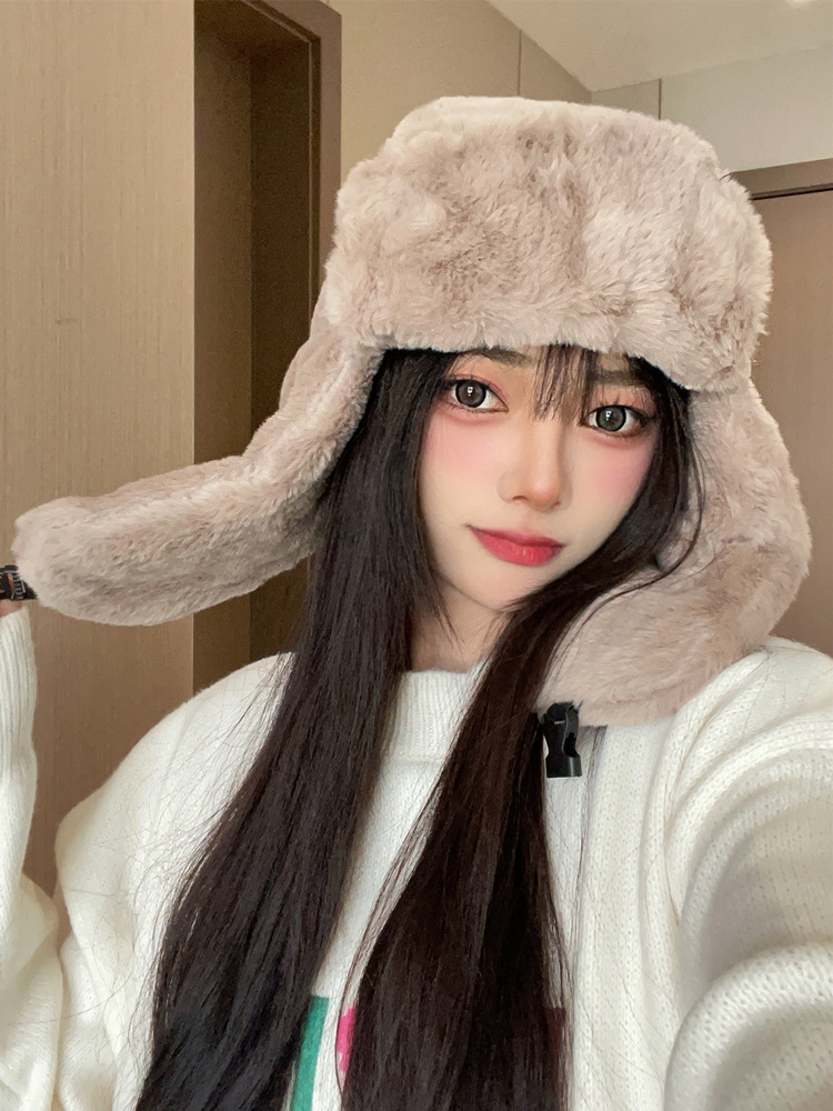 2024冬季保暖男女雷锋帽防寒户外兔毛时尚休闲大耳帽骑车防风帽子