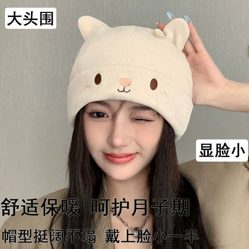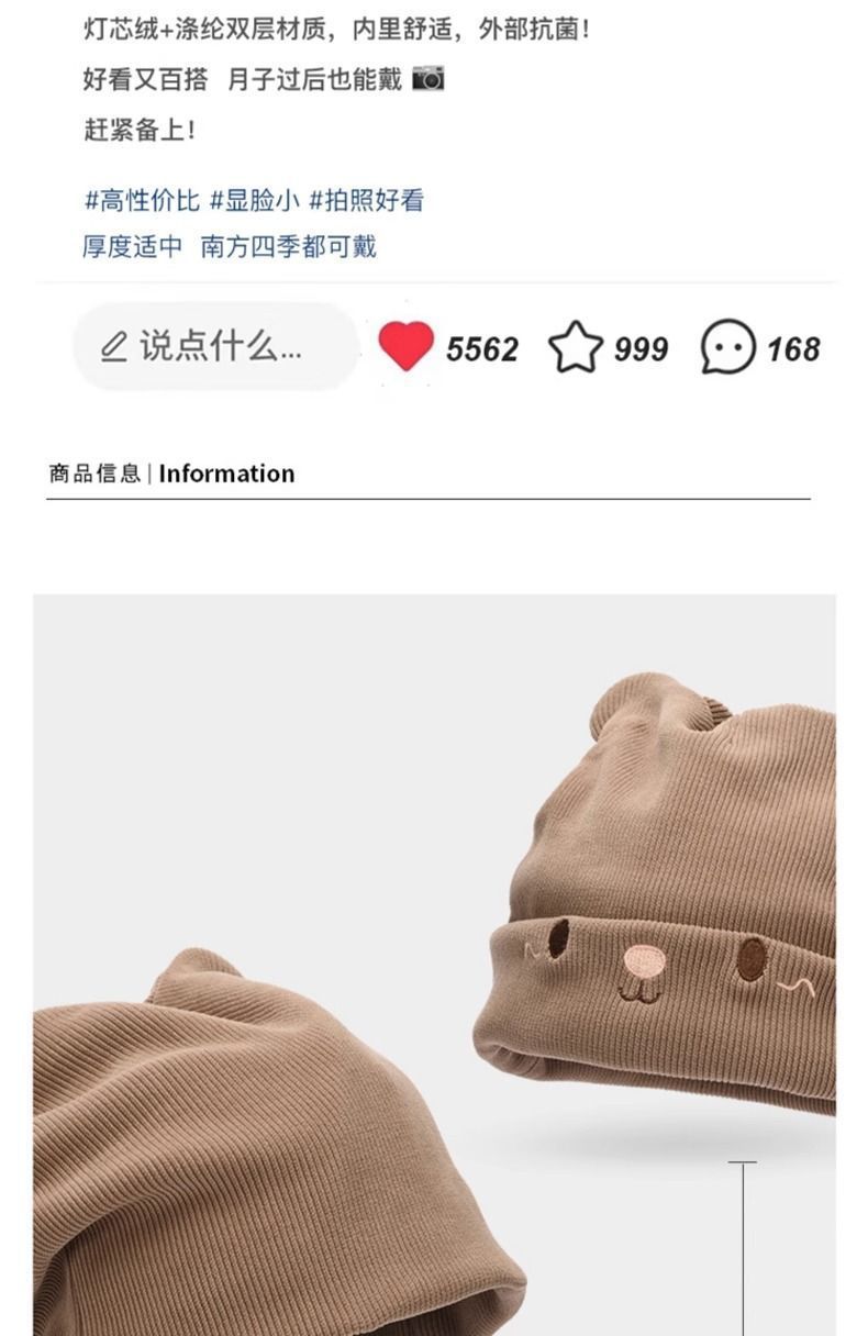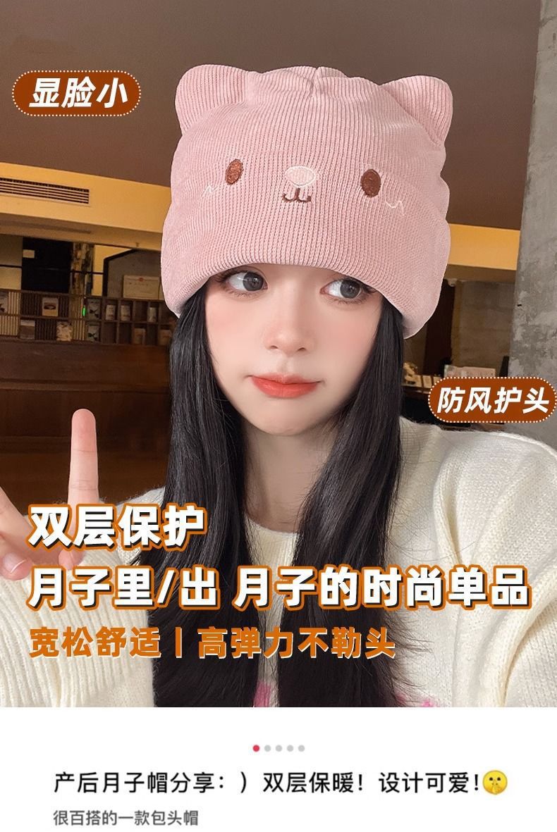 月子帽产后孕妇秋冬款帽子女针织冬季包头帽毛线帽显脸小可爱冷帽