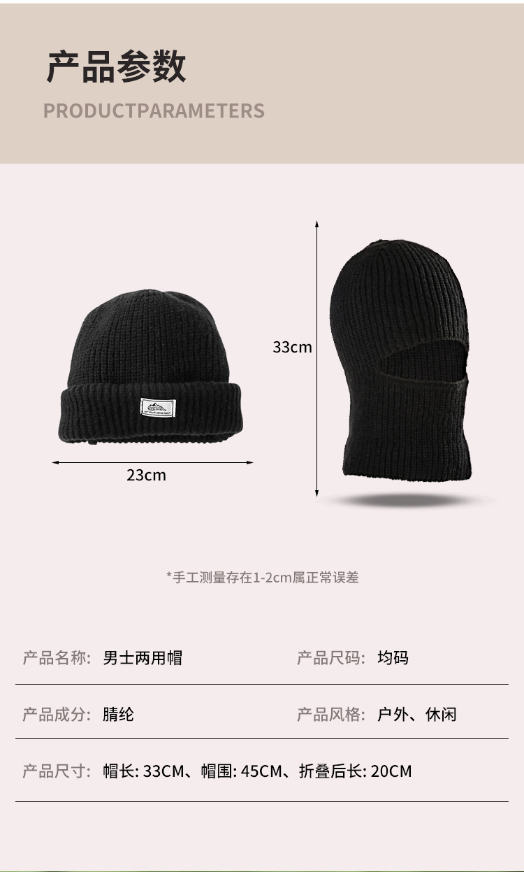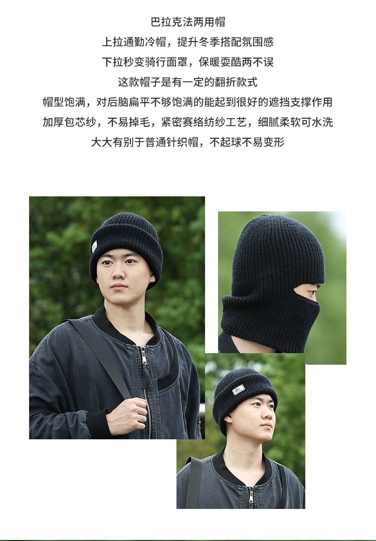 巴拉克拉法帽子男士护耳头套防风面罩护脸护脖保暖针织毛线冷帽子