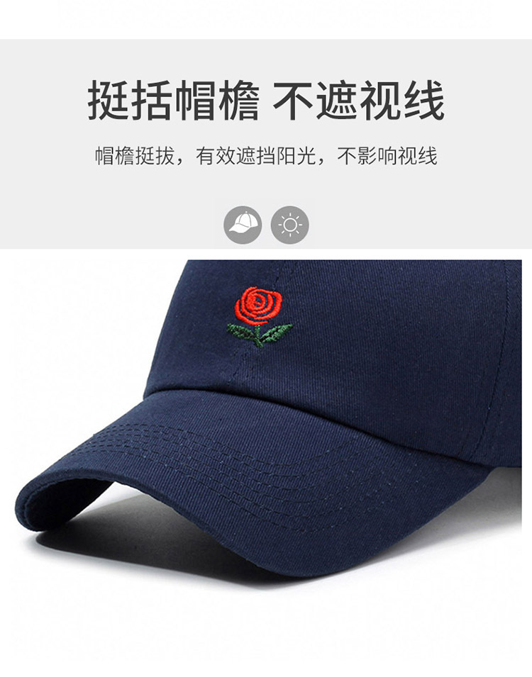 帽子遮阳太阳情侣刺绣男女防晒玫瑰花檐嘻哈弯潮牌帽鸭舌帽
