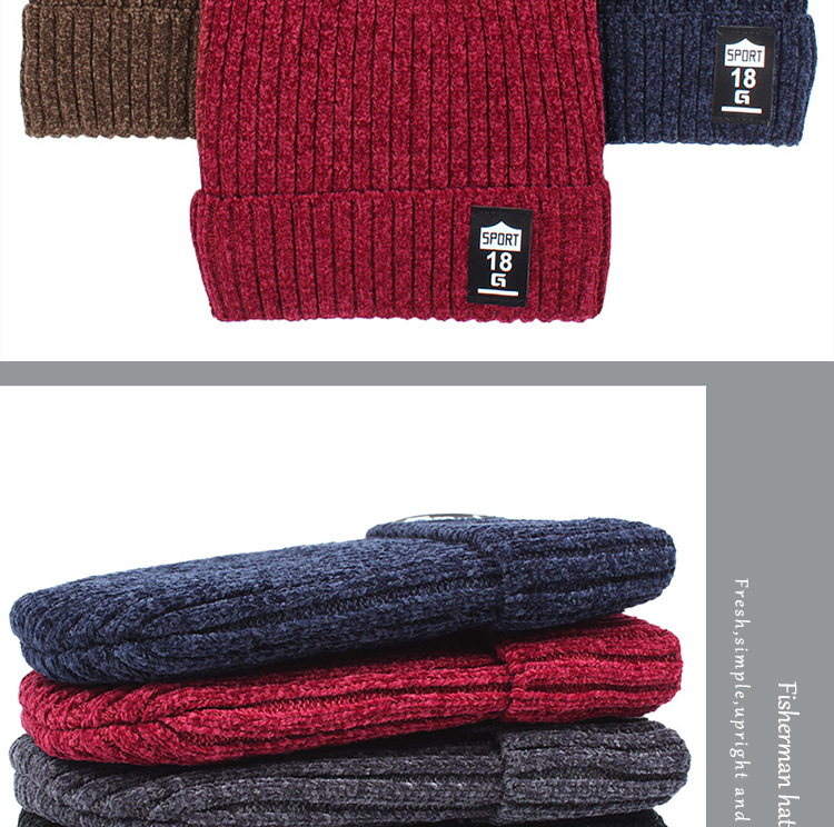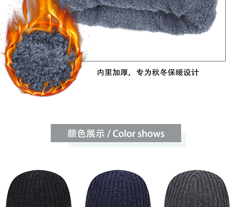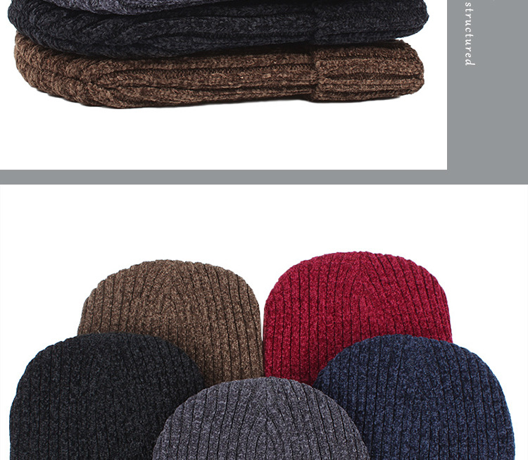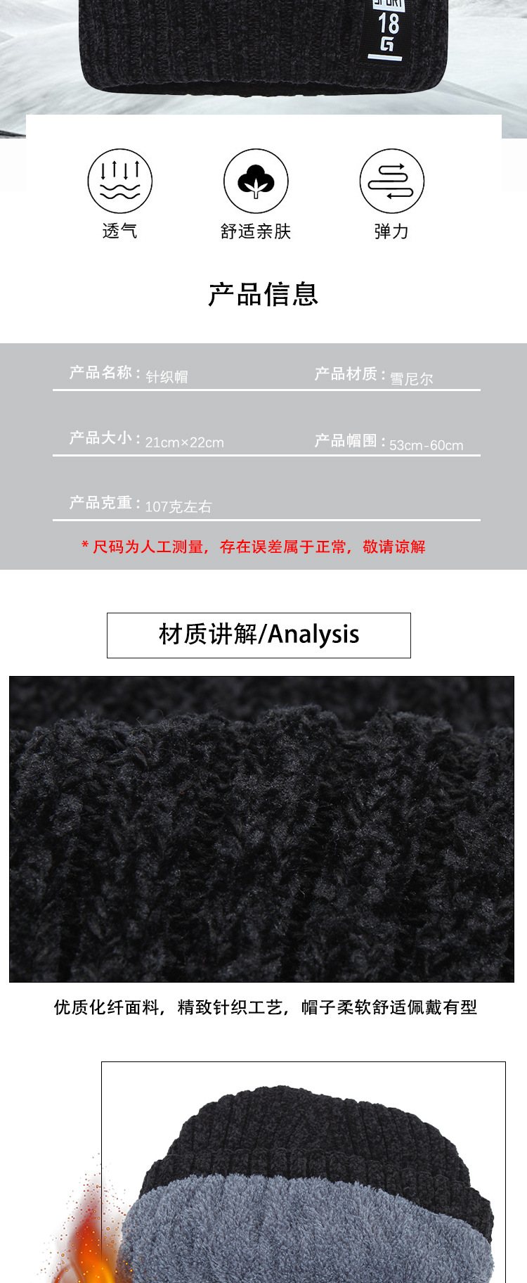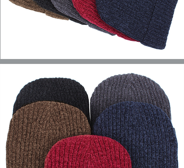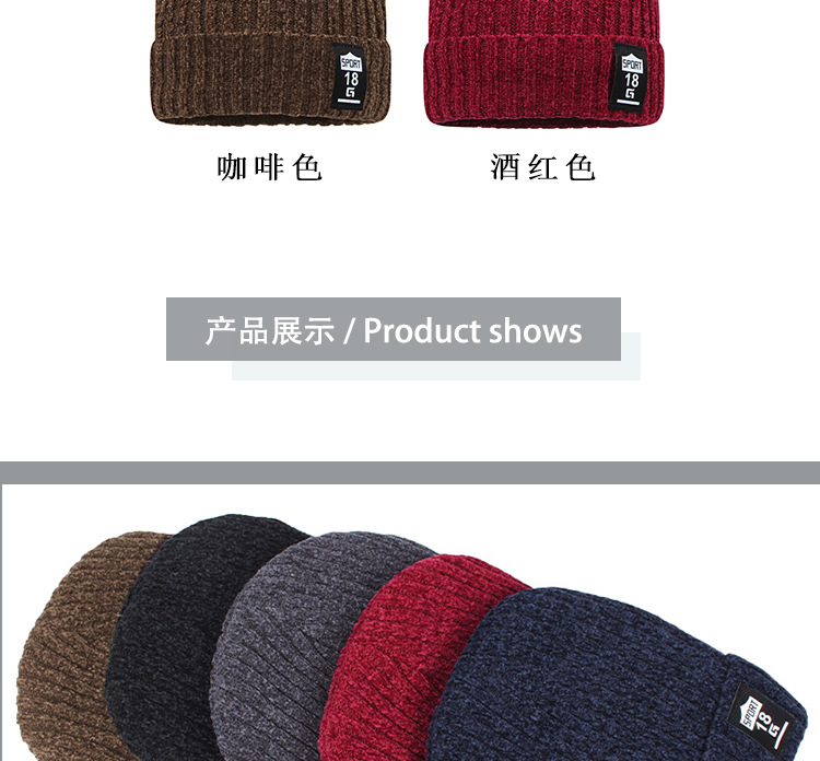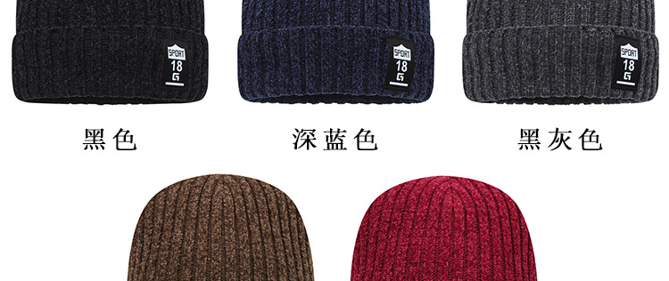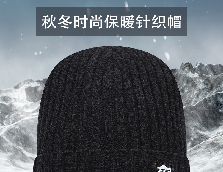 冬季新款男士针织帽雪尼尔加绒加厚保暖套头帽中青年户外防风帽子