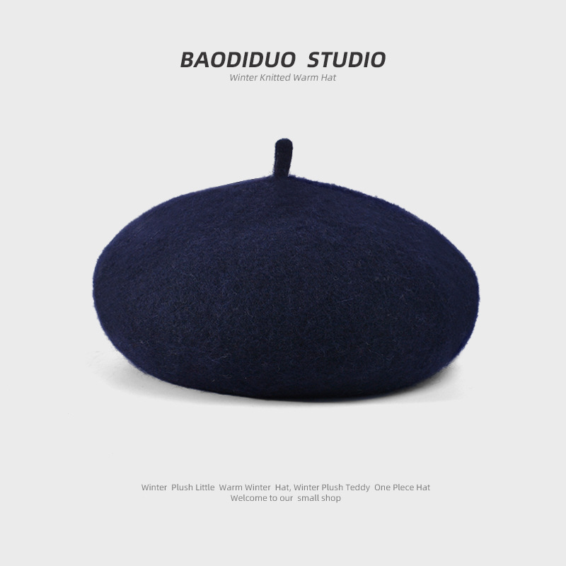 英伦风高级氛围感复古羊毛贝雷帽子女日系冬季纯色百搭八角画家帽