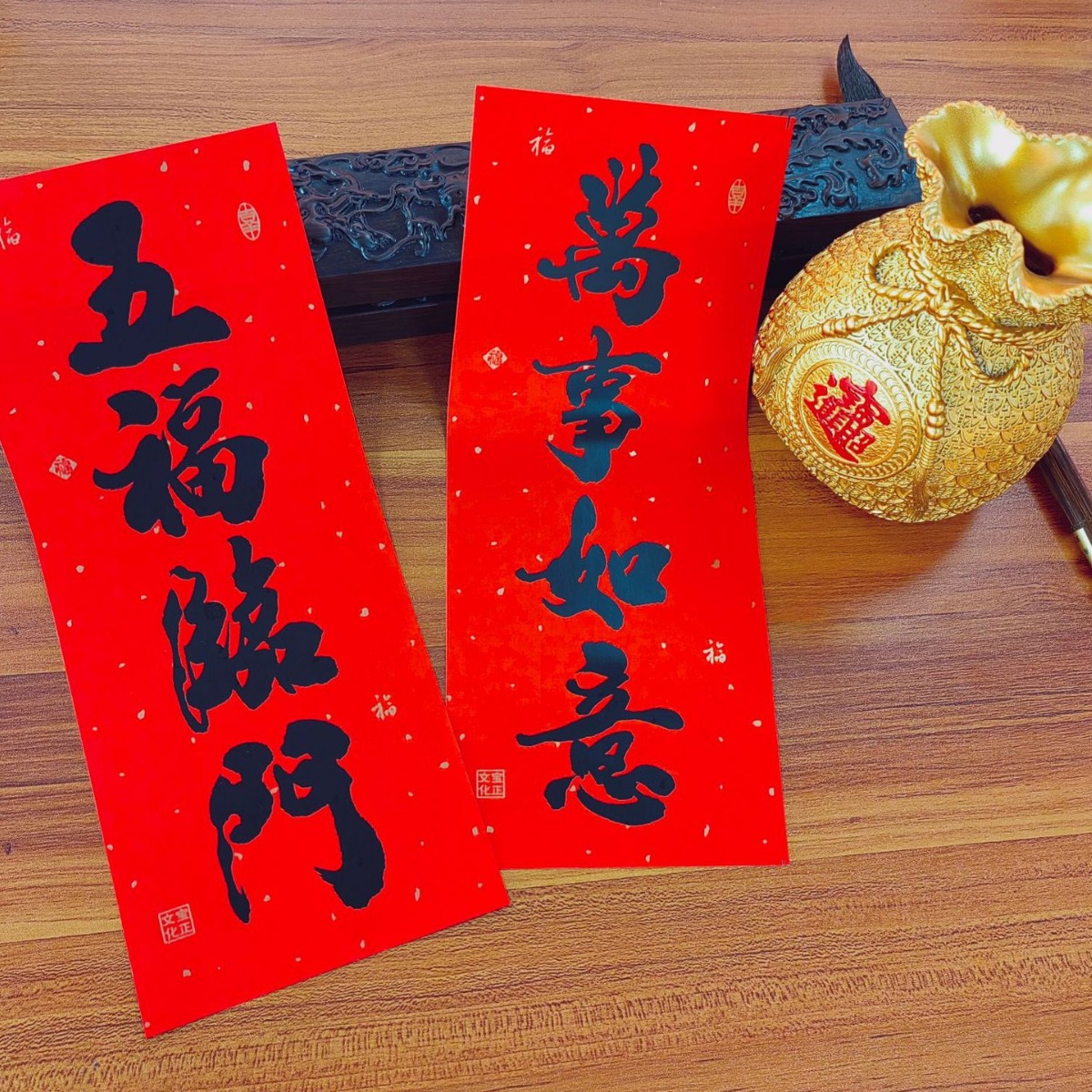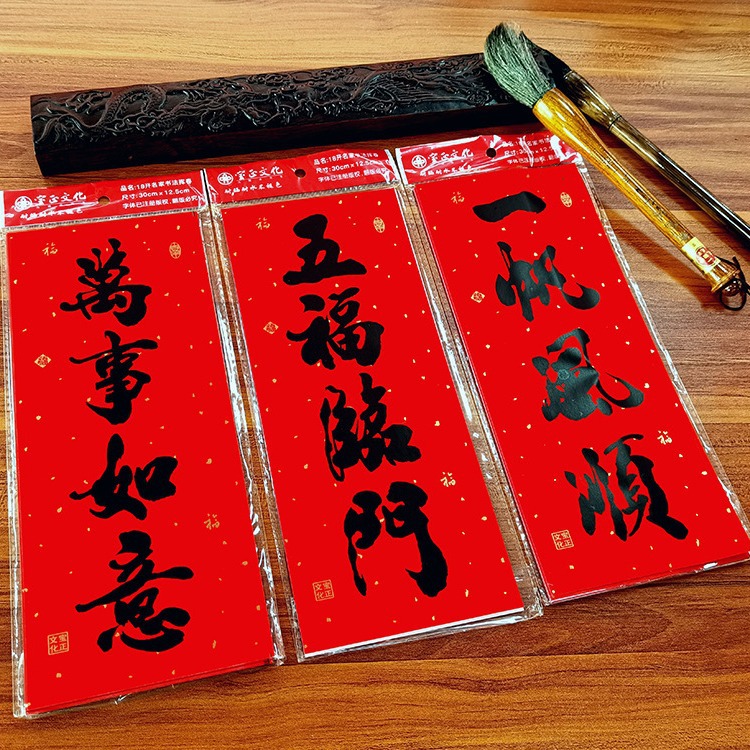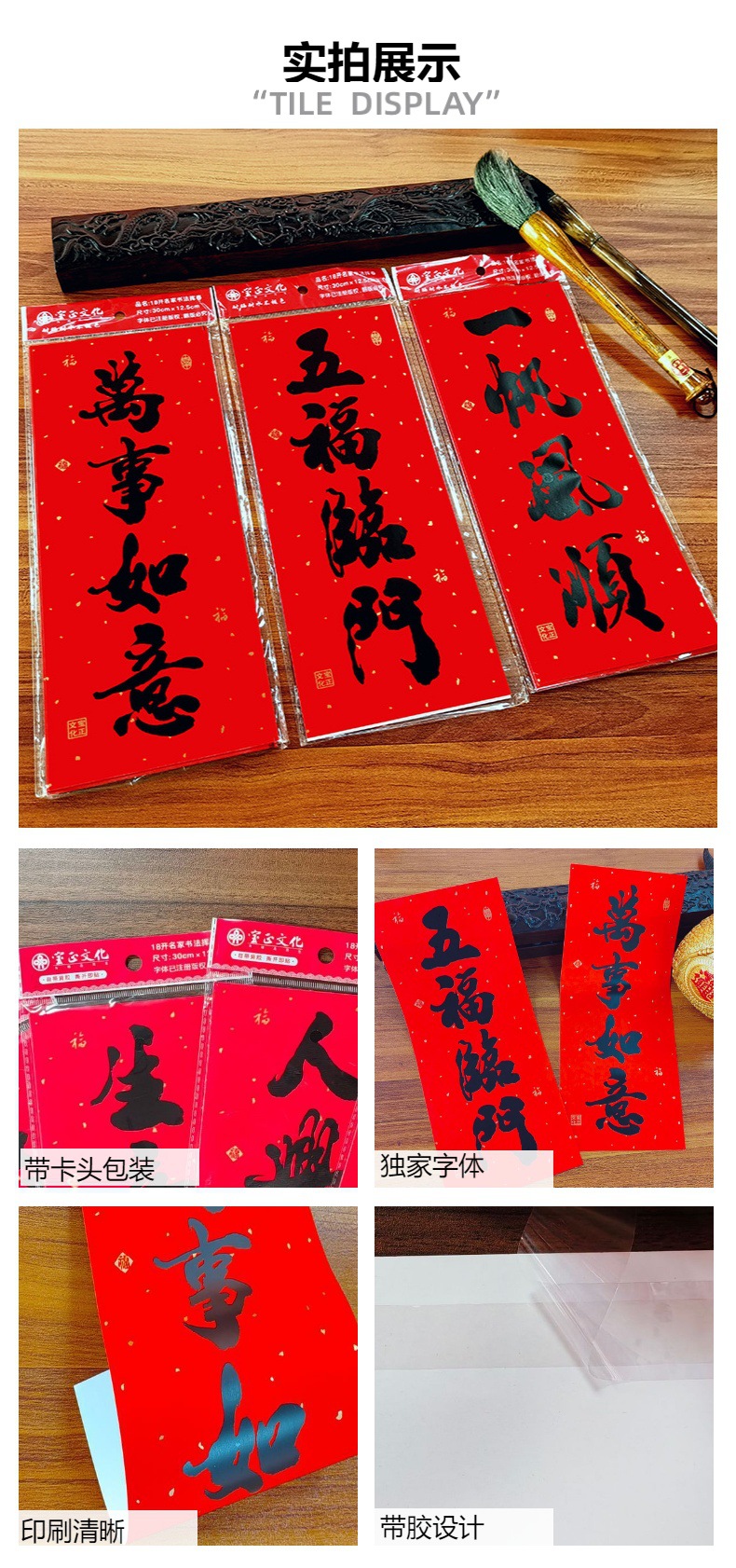 宝正文化书法挥春四字小春联名家书法黑字铜版纸珲春带胶挥春
