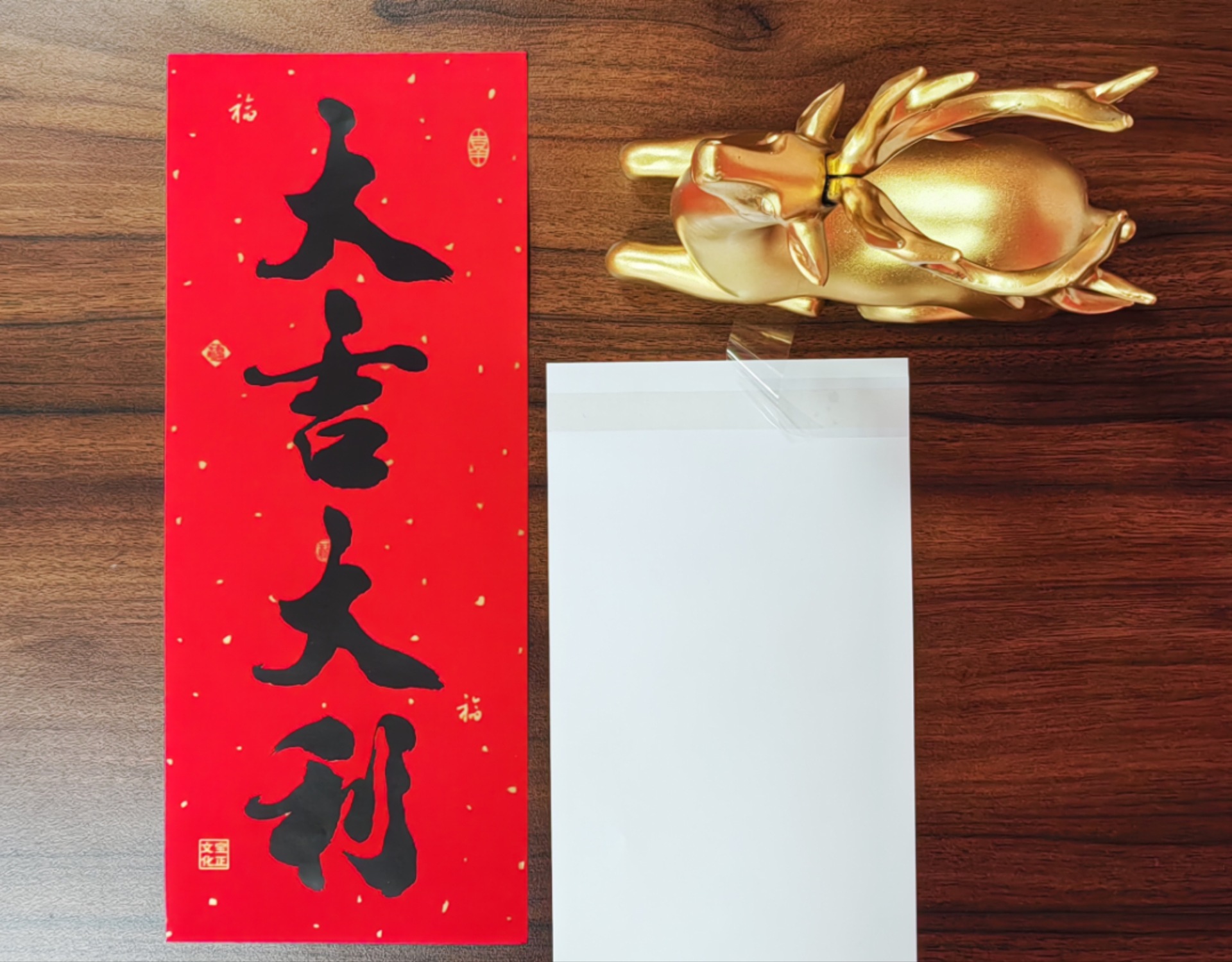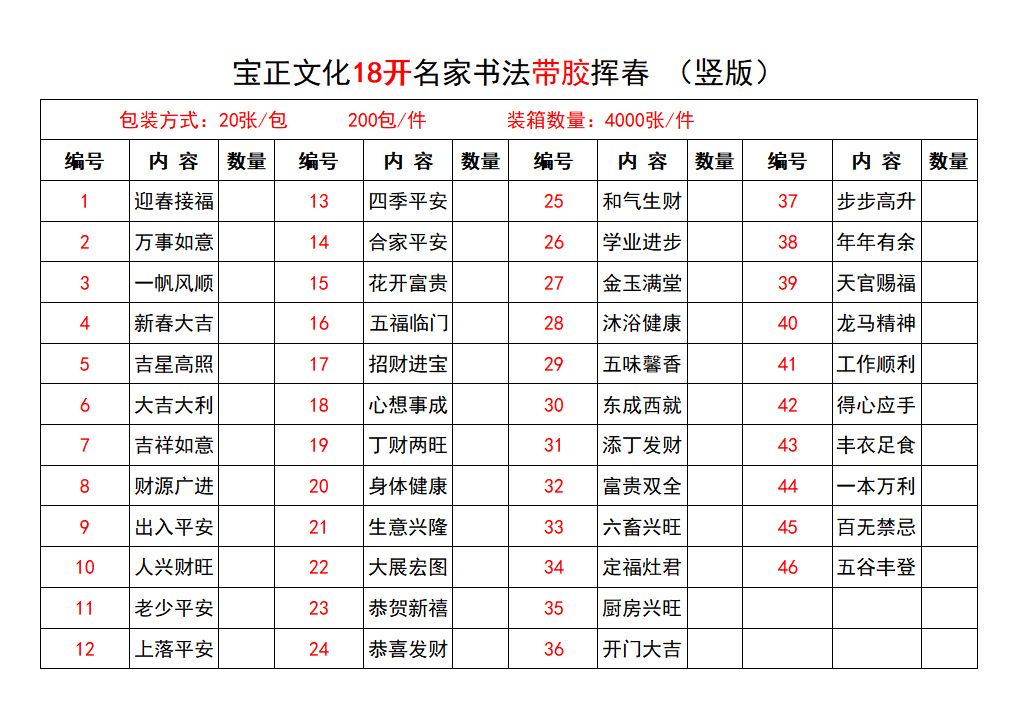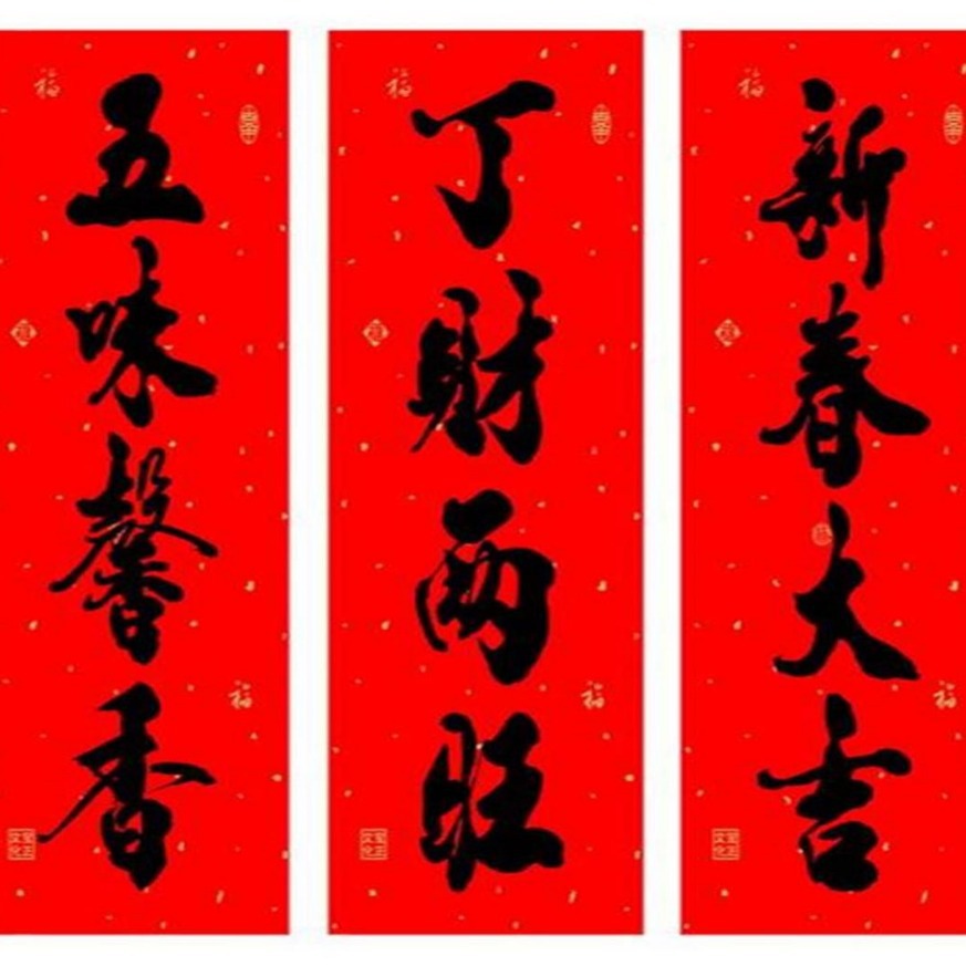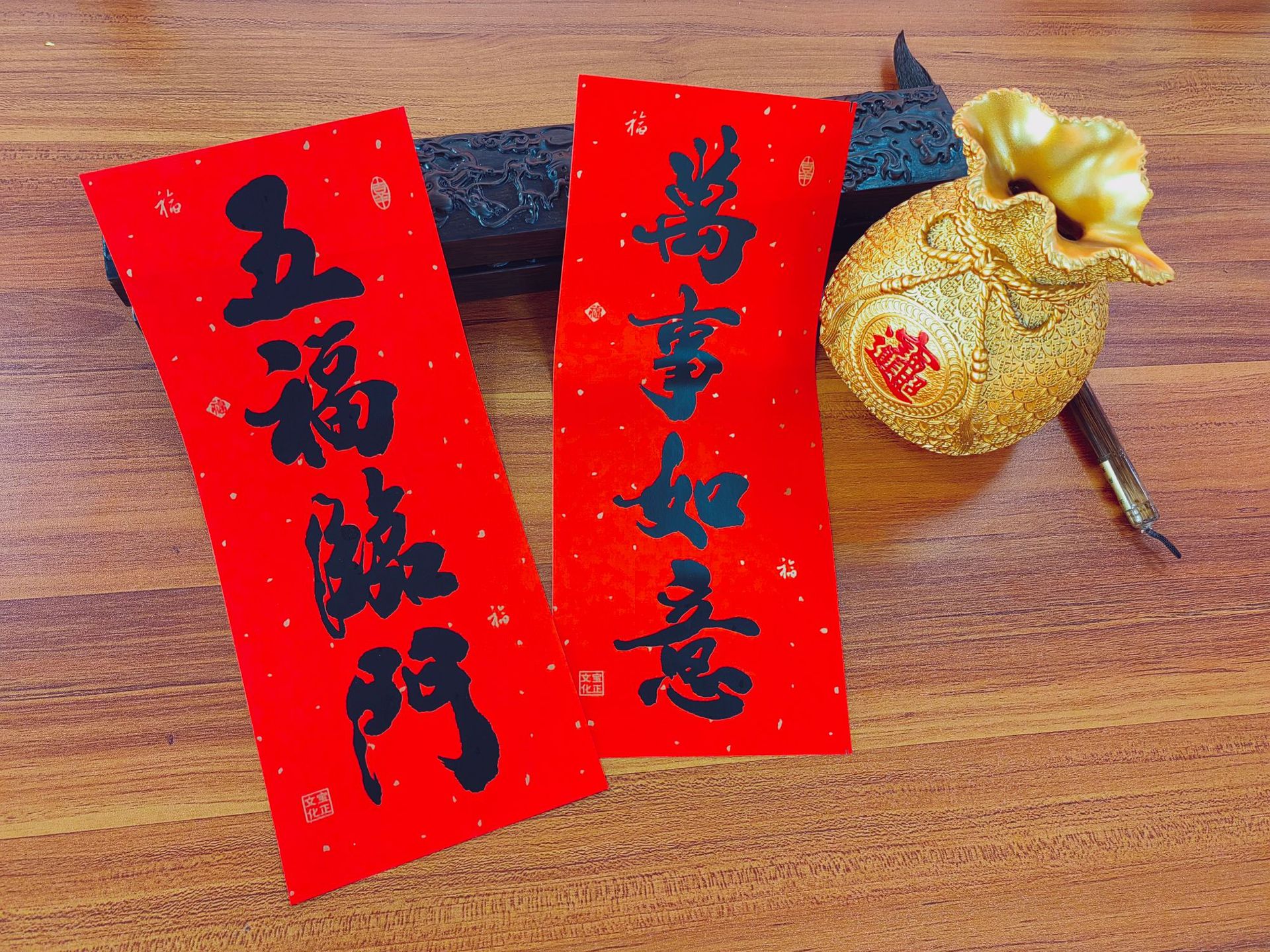 宝正文化书法挥春四字小春联名家书法黑字铜版纸珲春带胶挥春