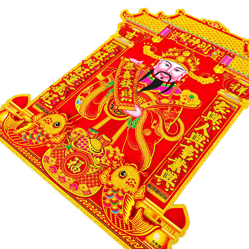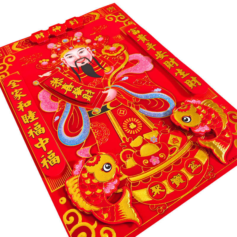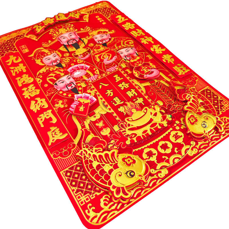 2025春联新款植绒立体烫金卡纸财神新年装饰五路财神爷像门贴年画