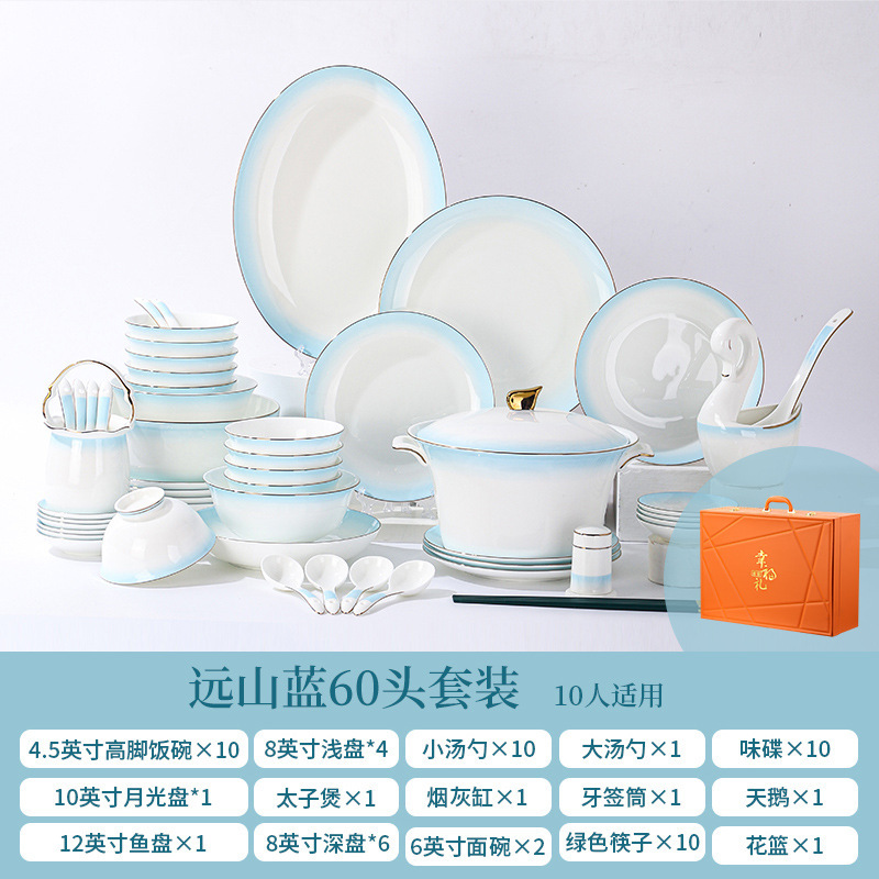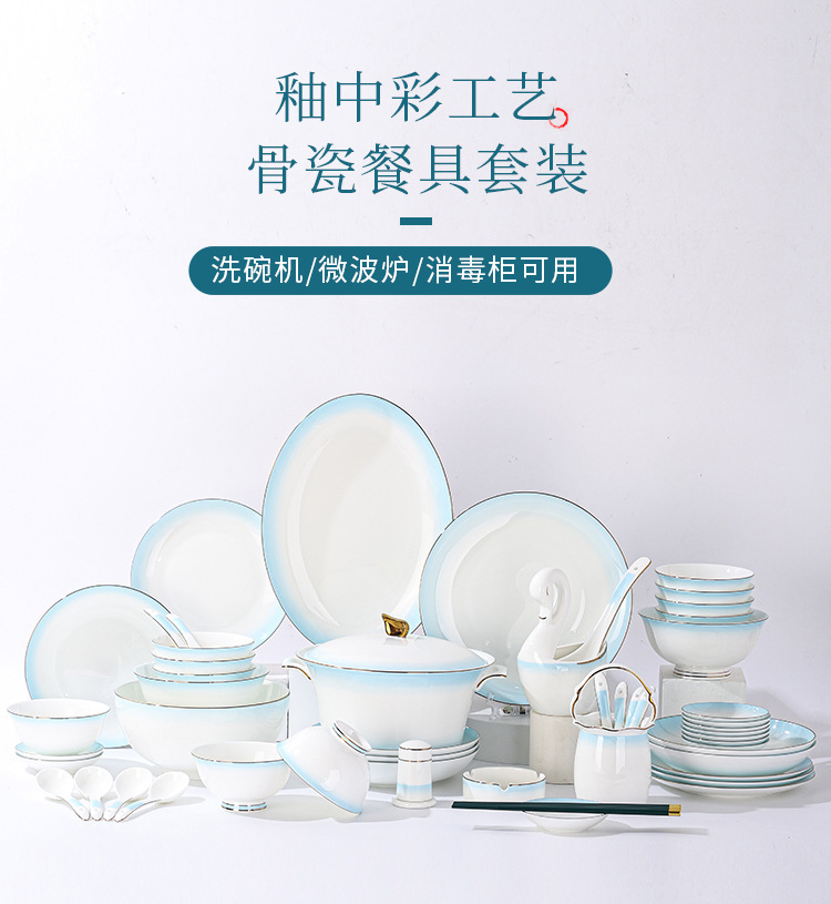 釉中彩餐具套装碗碟套装现代简约乔迁送礼微波炉洗碗机可用
