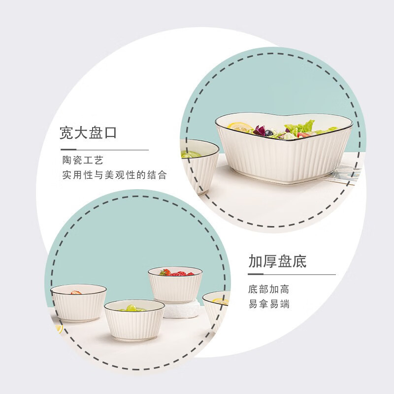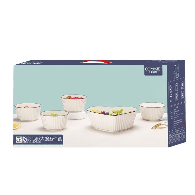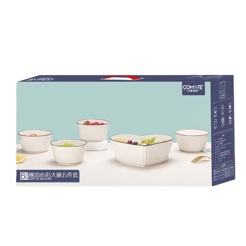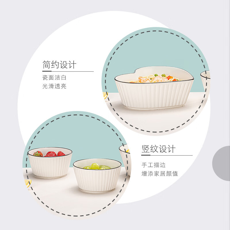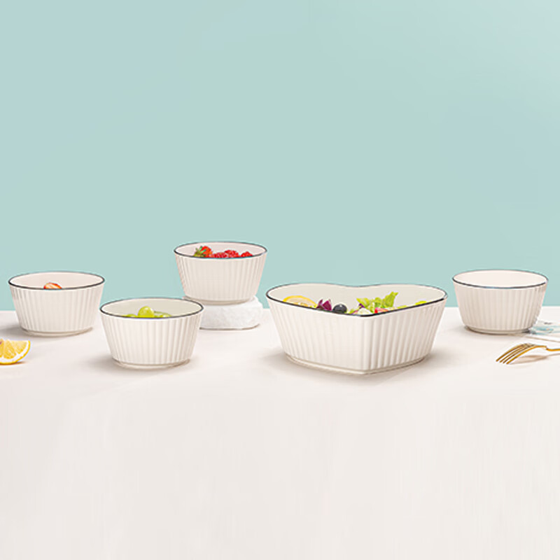 KMRT婉韵心形大碗五件套竖纹碗爱心陶瓷碗家用创意沙拉碗汤碗
