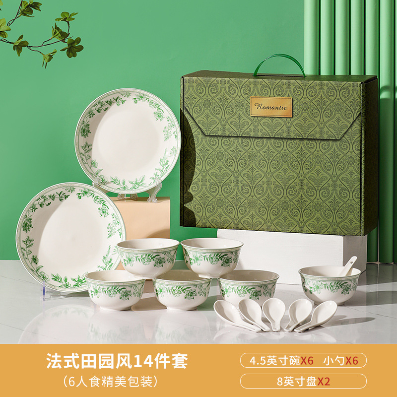 小清新陶瓷餐具碗碟盘套装礼盒装批发公司商务开业活动礼品赠送