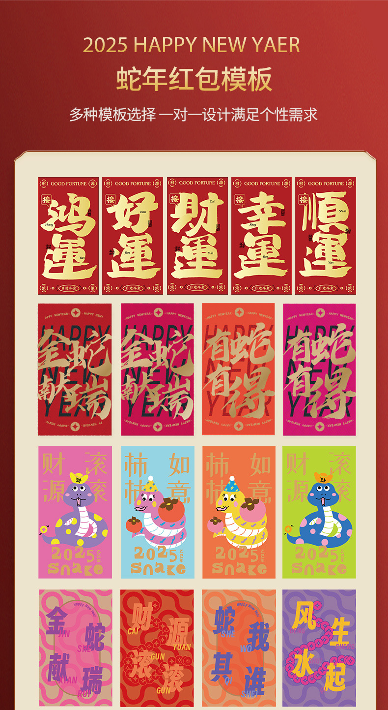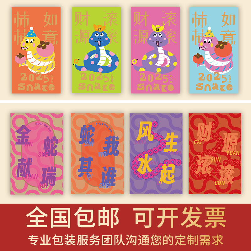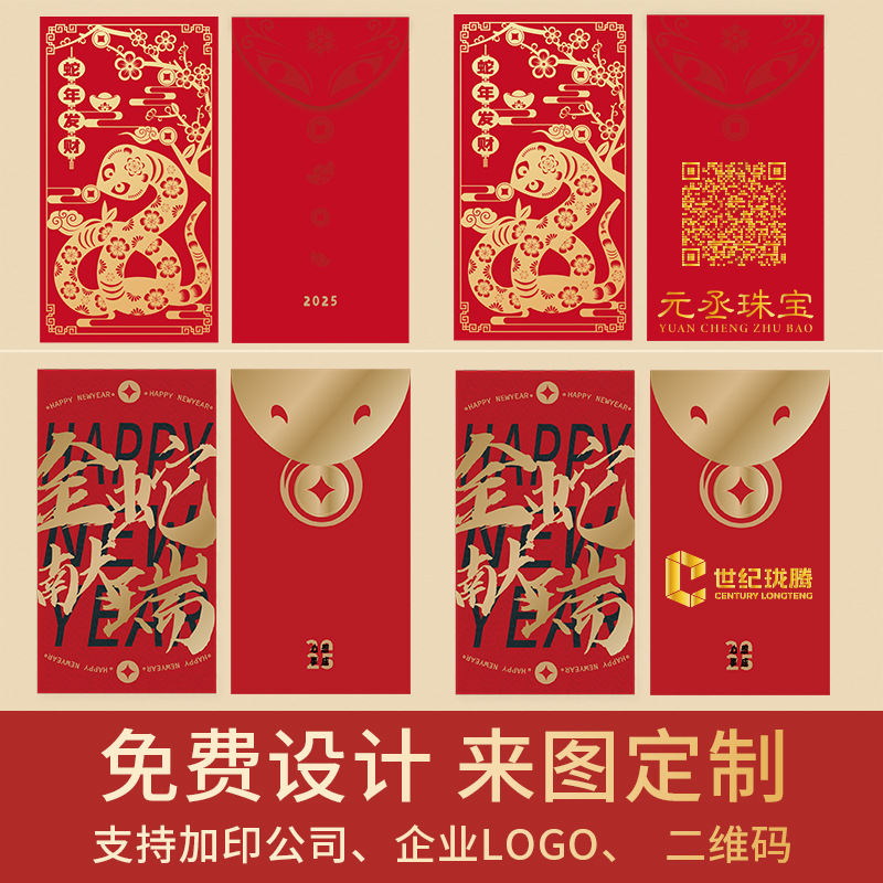 2025蛇年新年红包袋定制个性创意利是封订做烫金印广告logo二维码