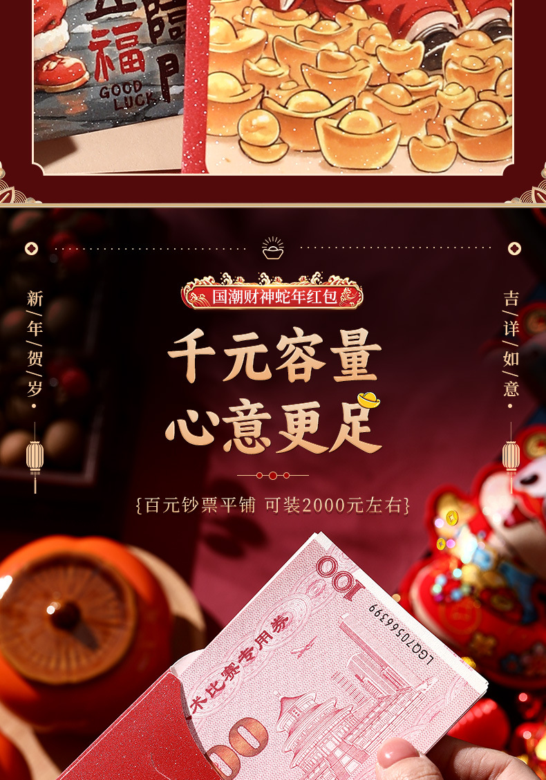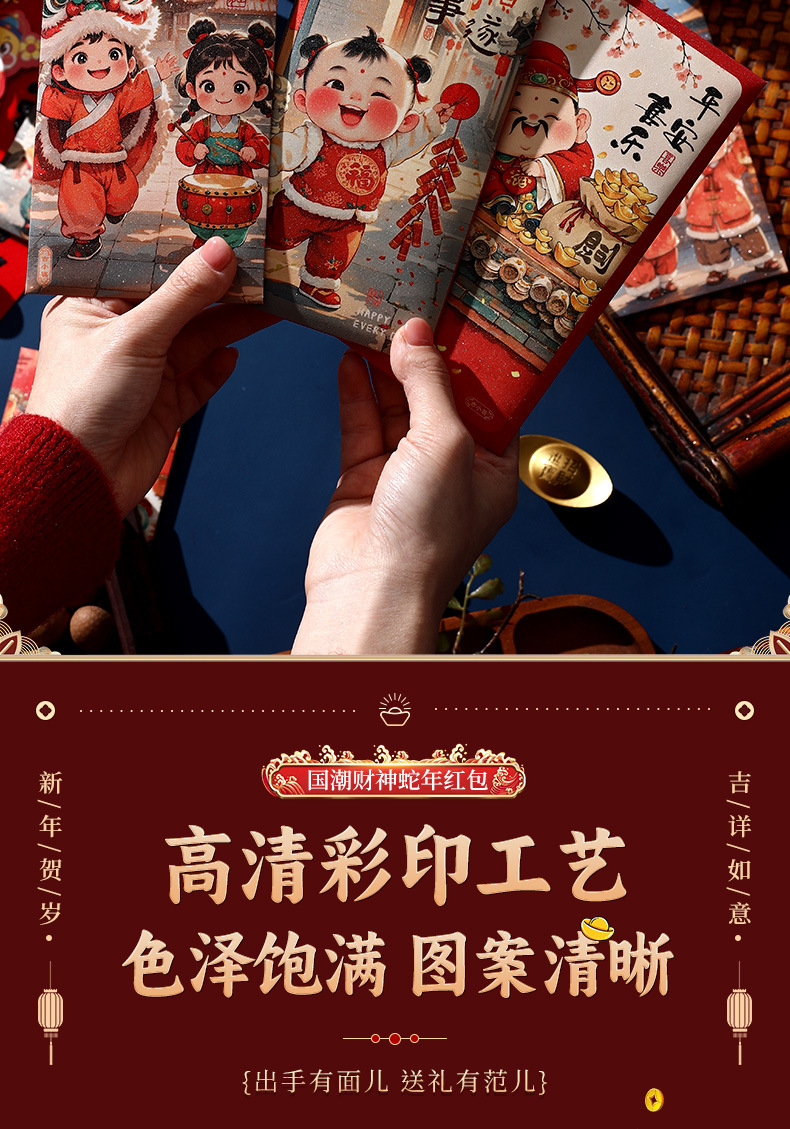 2025新款红包春节利是封儿童创意卡通个性财神福娃国潮蛇年压岁包