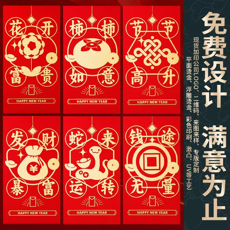 2025蛇年红包定制logo烫金春节利是封定做新年国潮婚礼红包袋批发