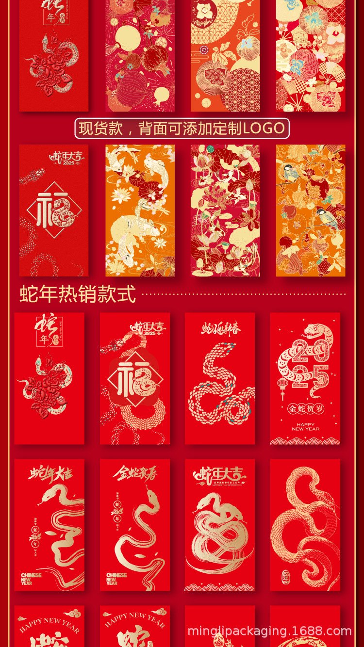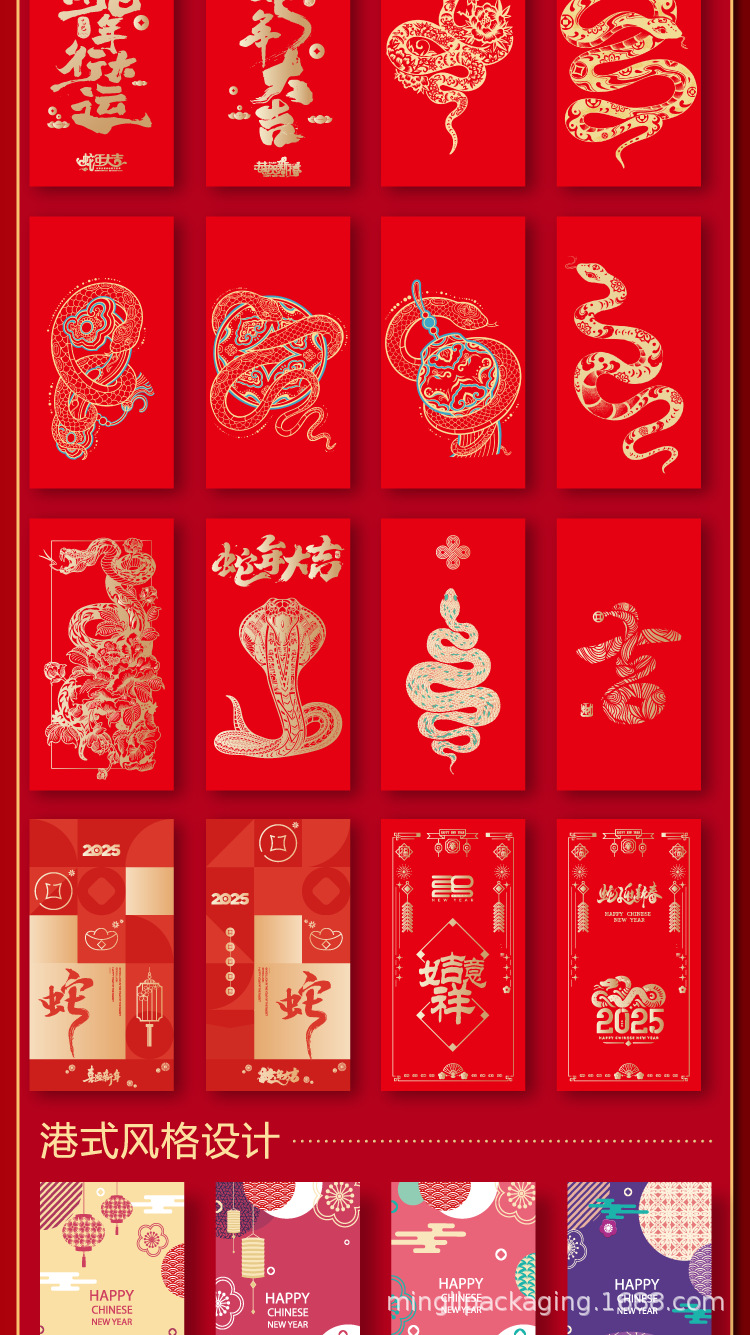 2025蛇年红包定制印LOGO新年利是封定做港式创意企业广告红包袋