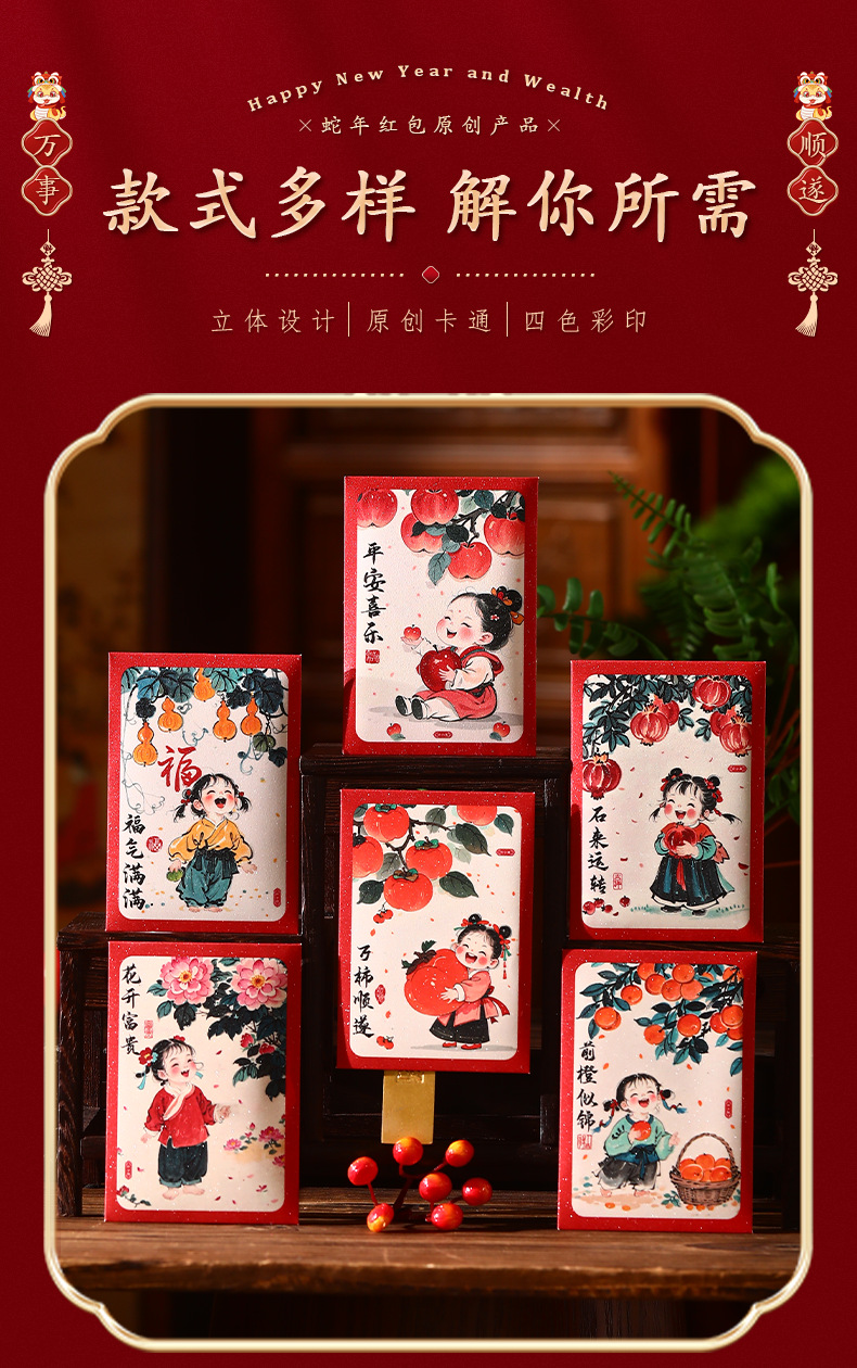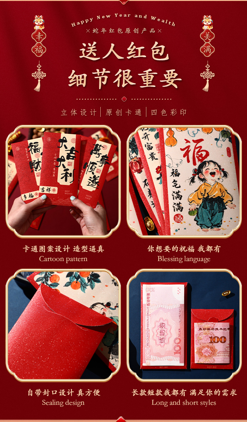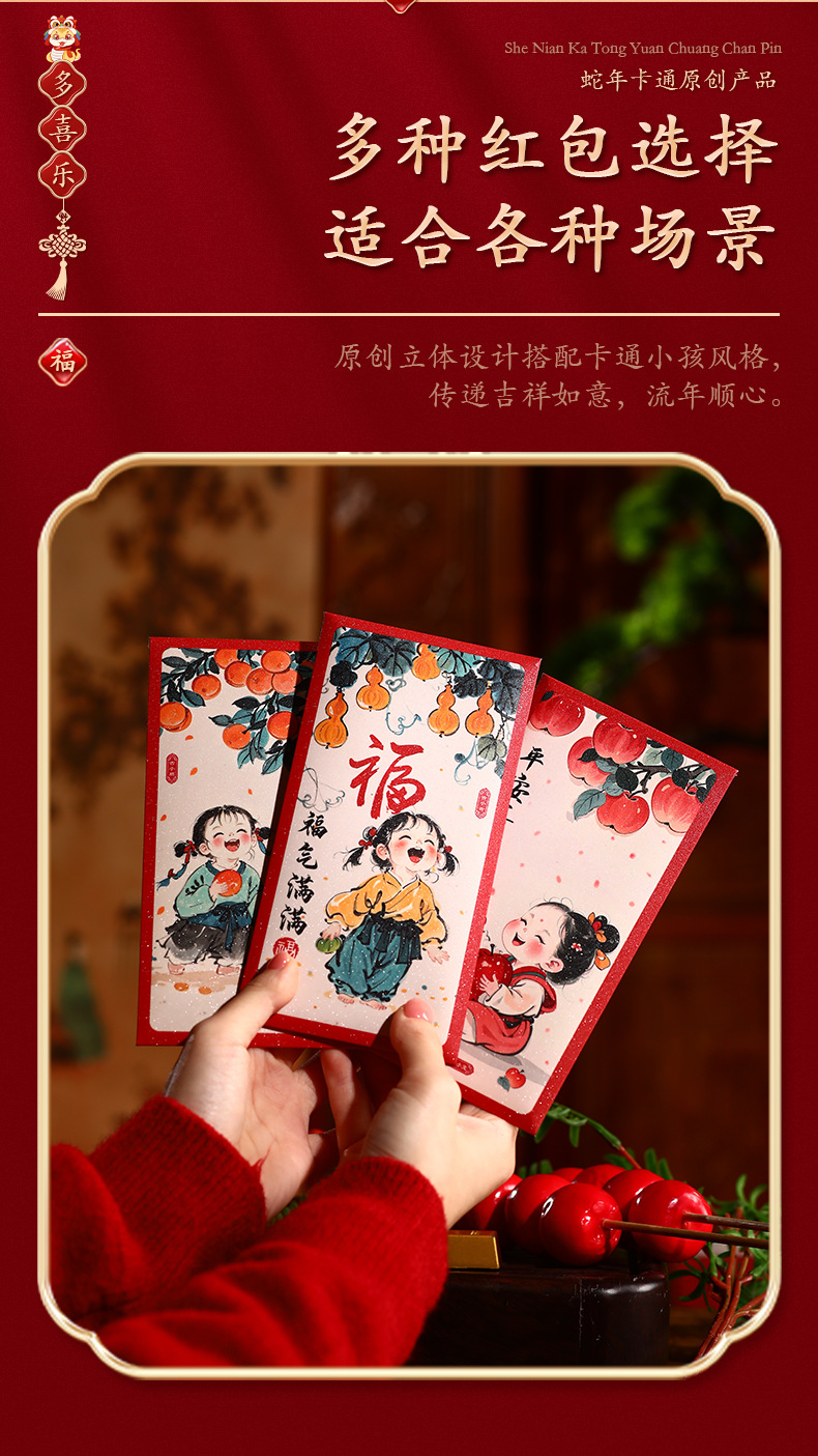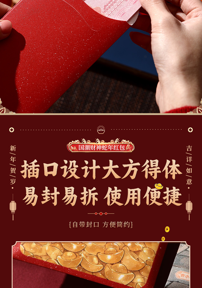 2025新款儿童春节红包新年创意国潮蛇年利是封趣味过年压岁钱大号