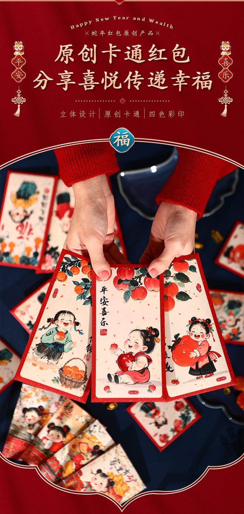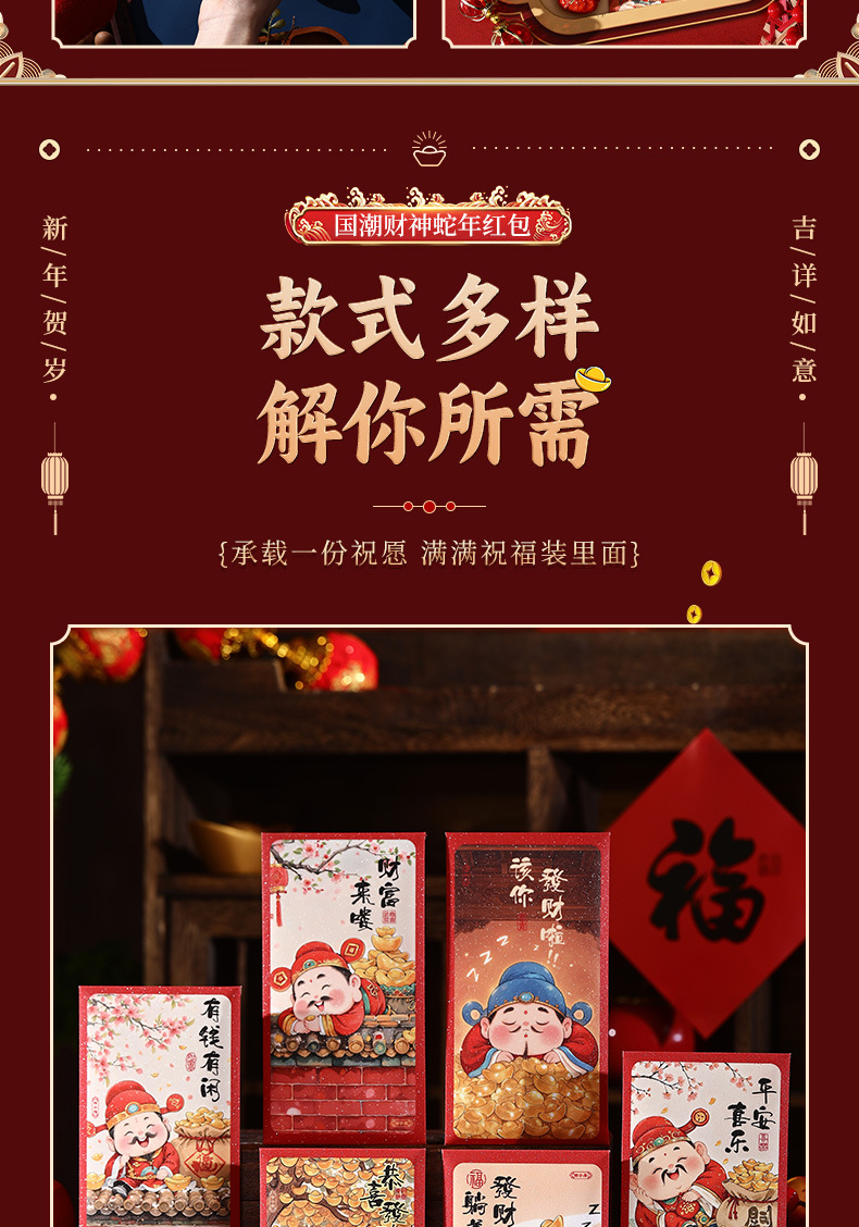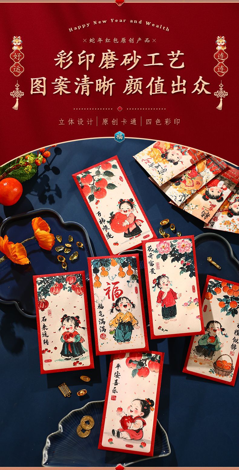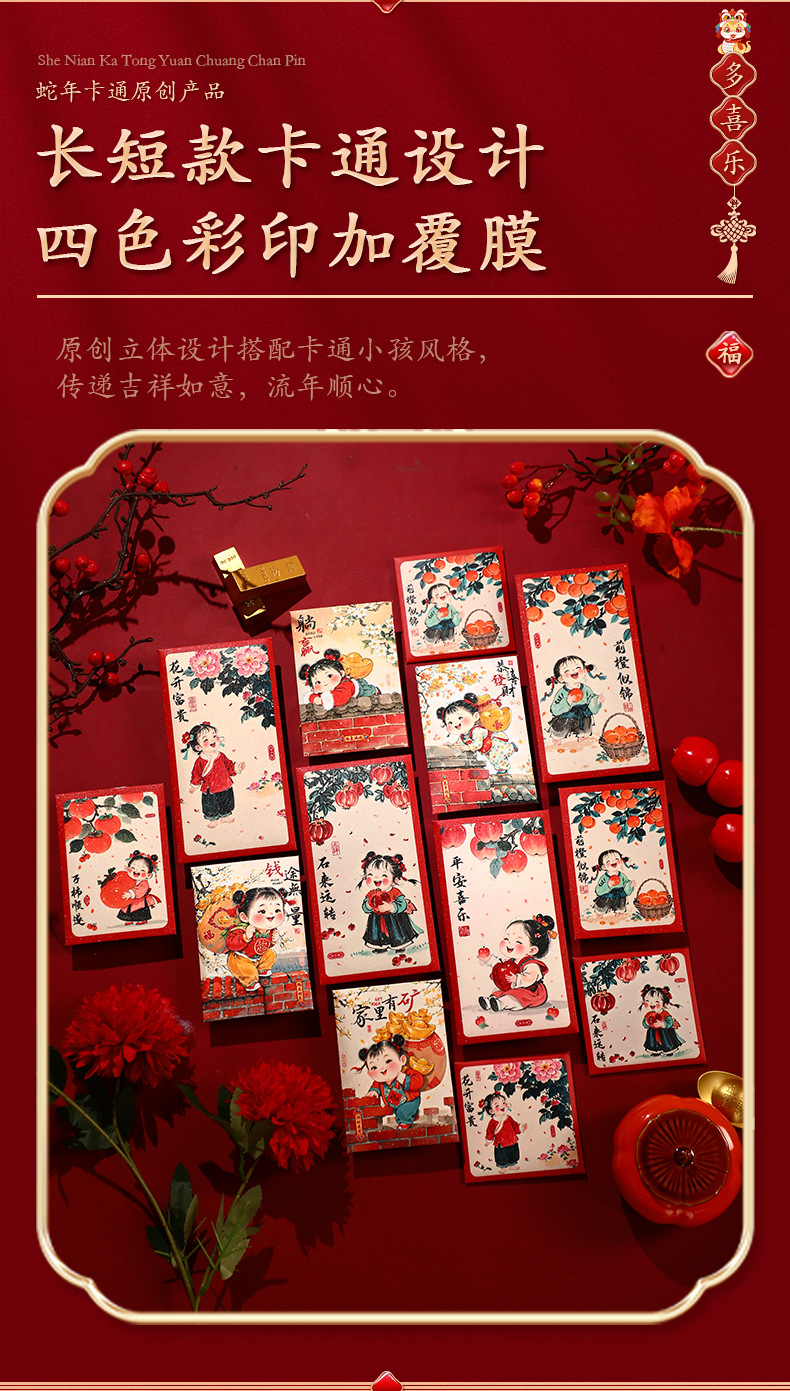 2025新款儿童春节红包新年创意国潮蛇年利是封趣味过年压岁钱大号