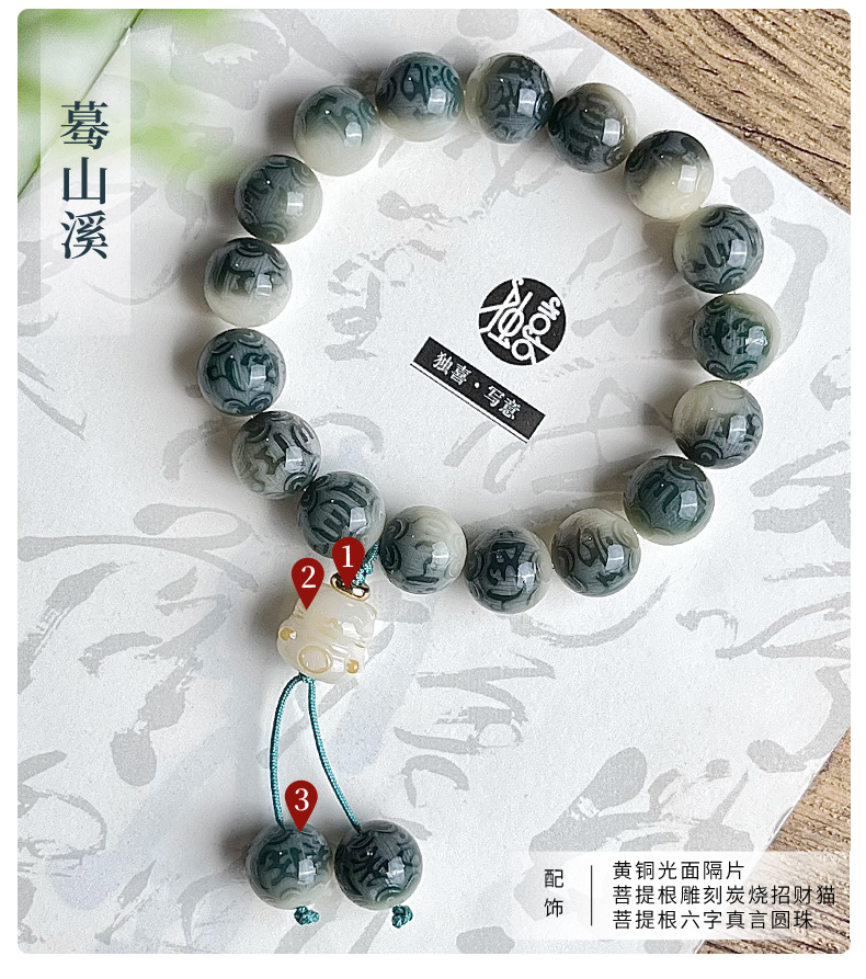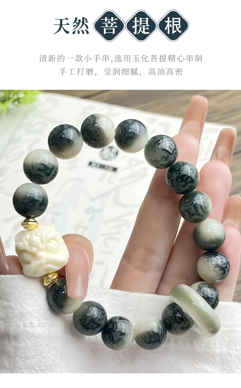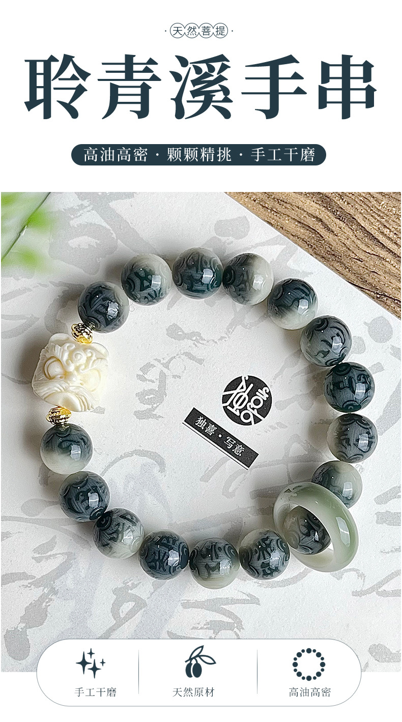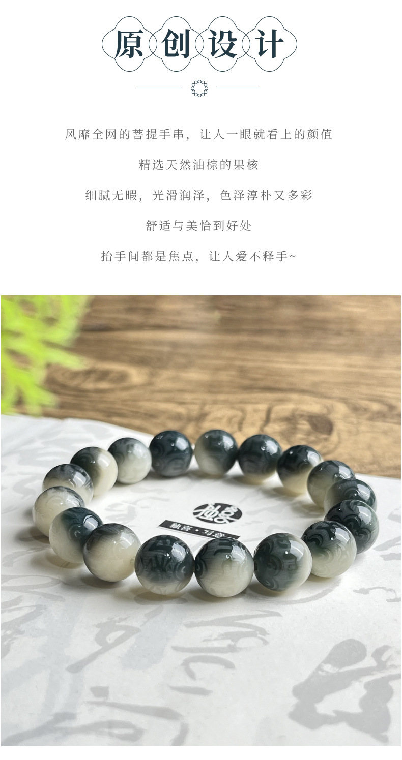 水墨画菩提手串手链男雕刻六字箴言学生古风系菩提子佛珠文玩批发