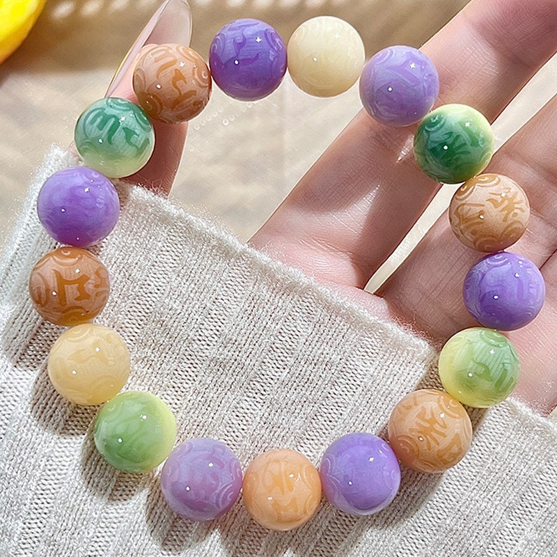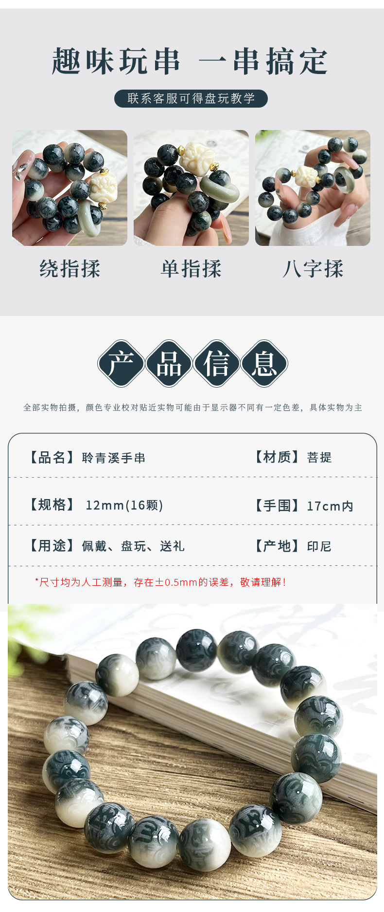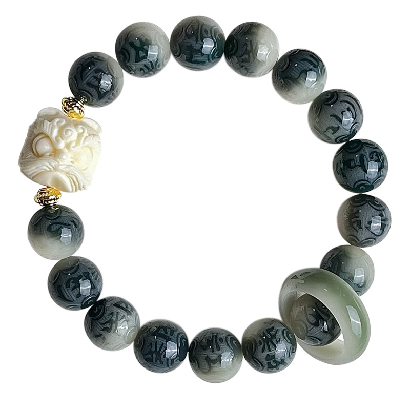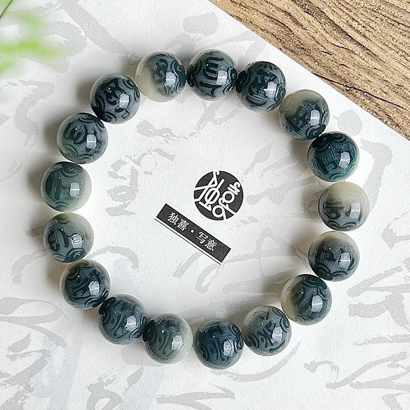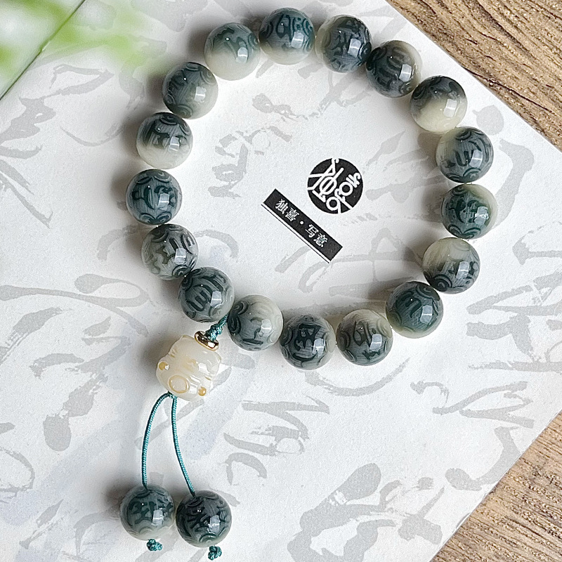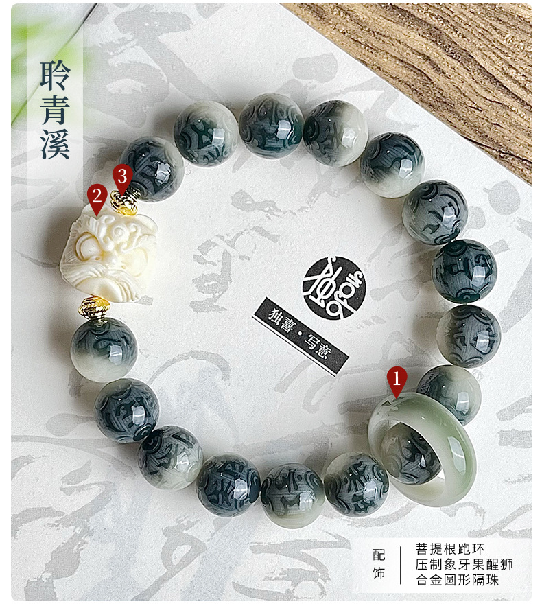 水墨画菩提手串手链男雕刻六字箴言学生古风系菩提子佛珠文玩批发
